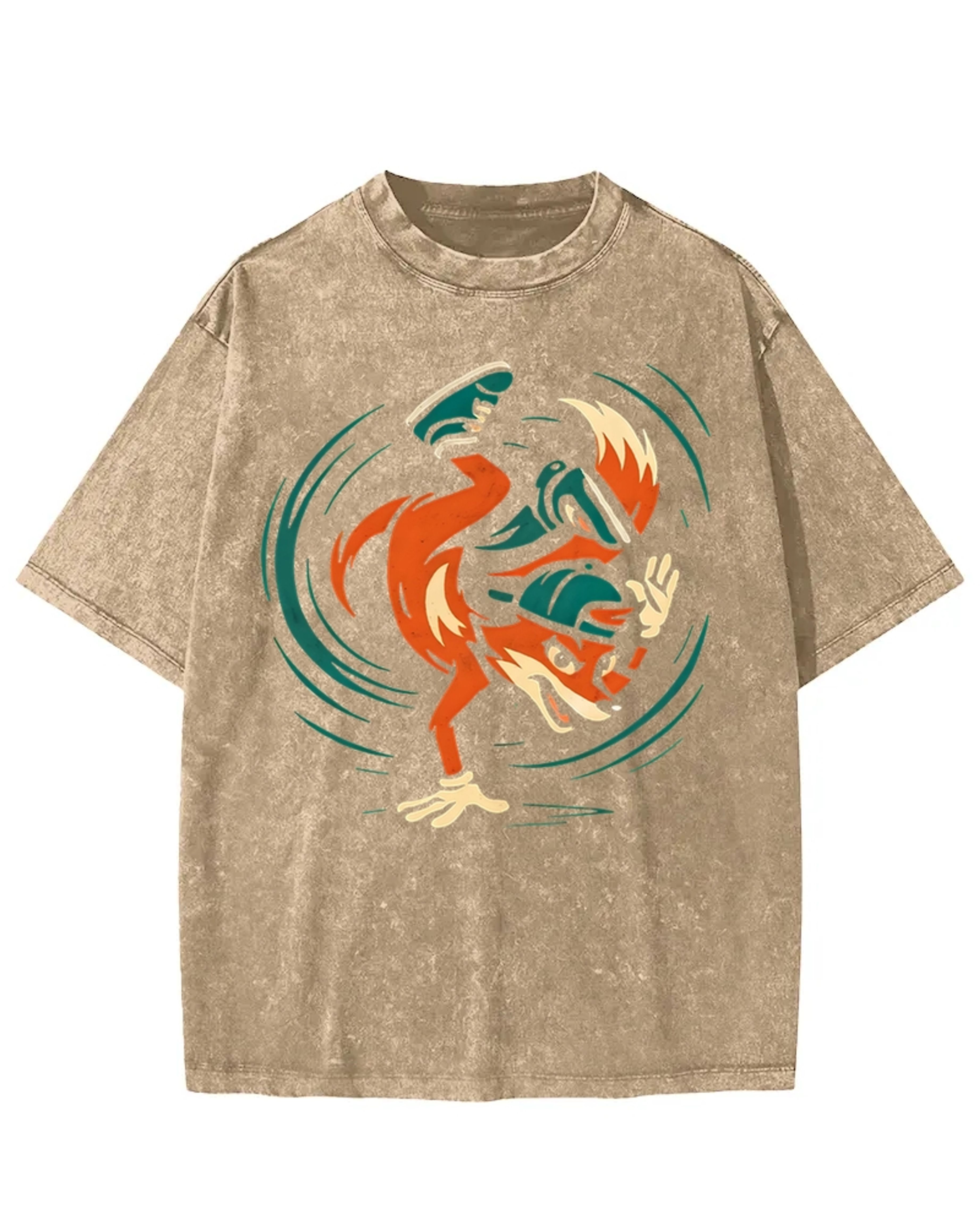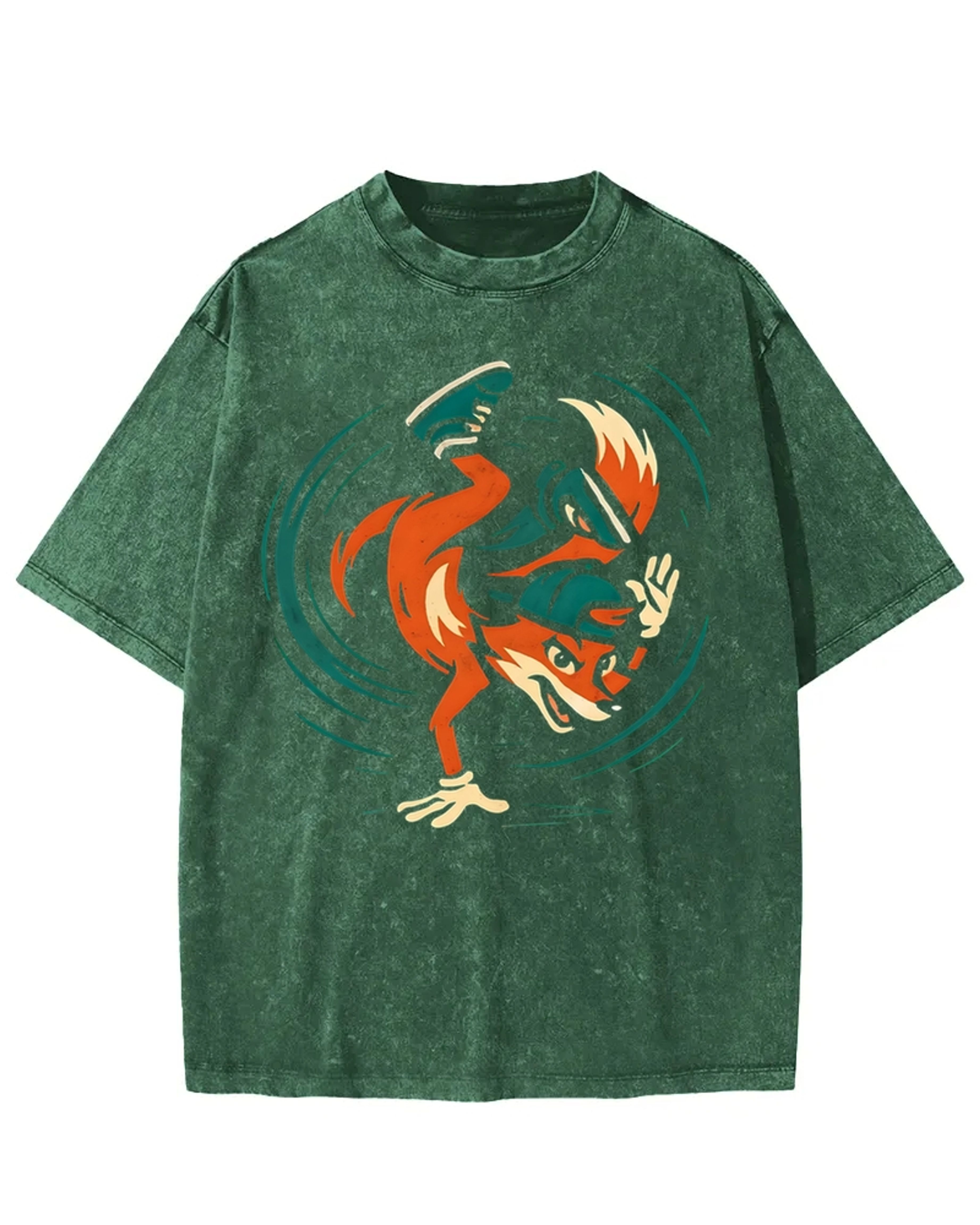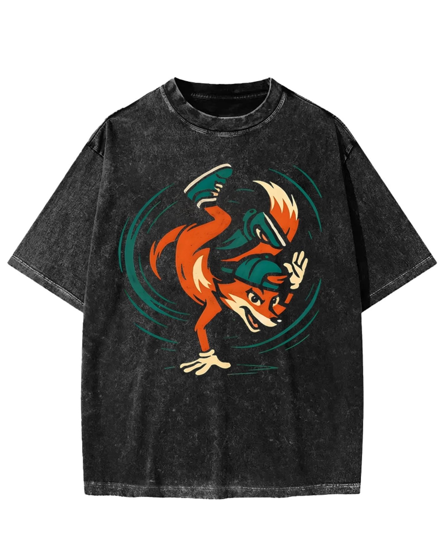 Breakdancing Fox Retro Graphic Washed T-Shirt