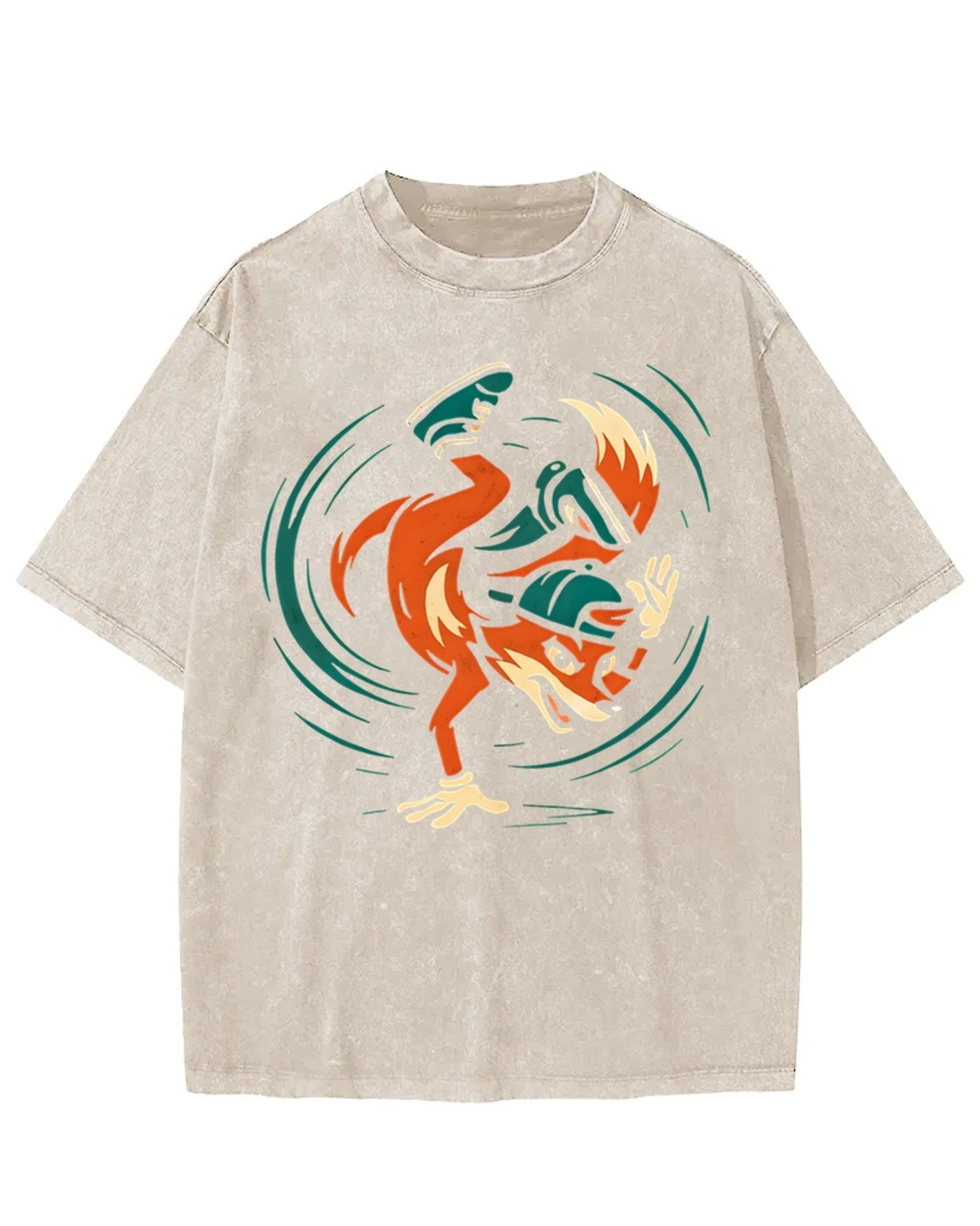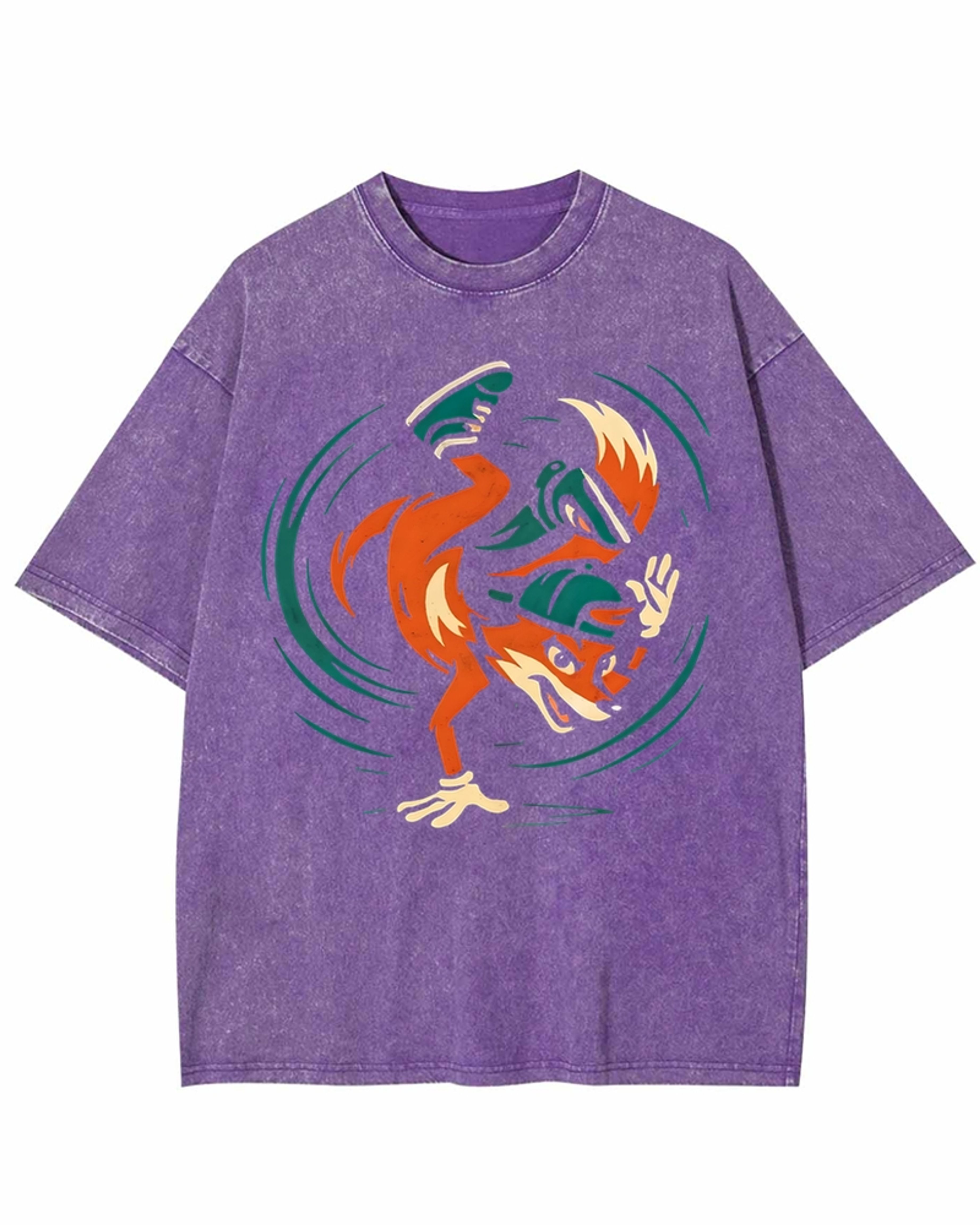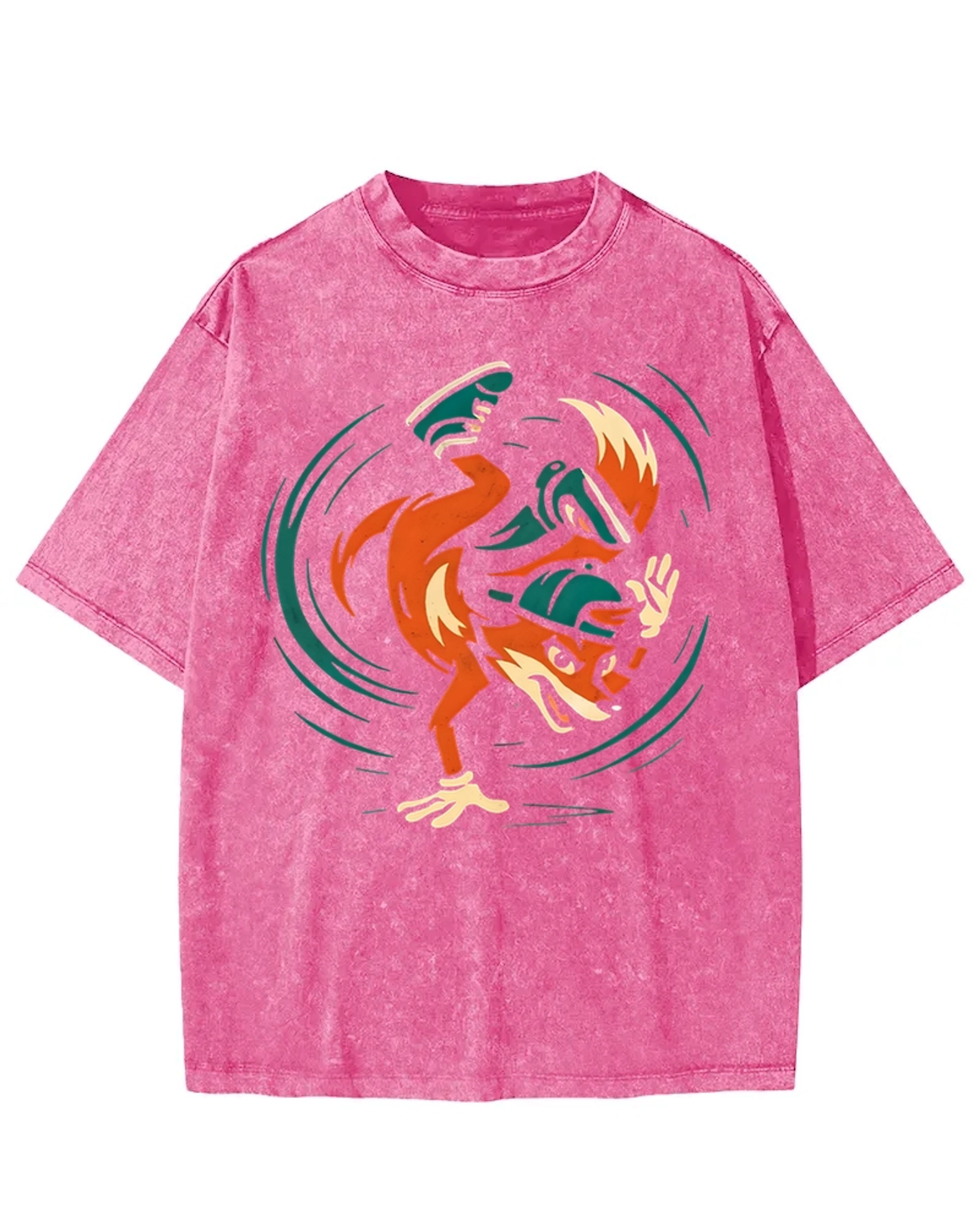 Breakdancing Fox Retro Graphic Washed T-Shirt