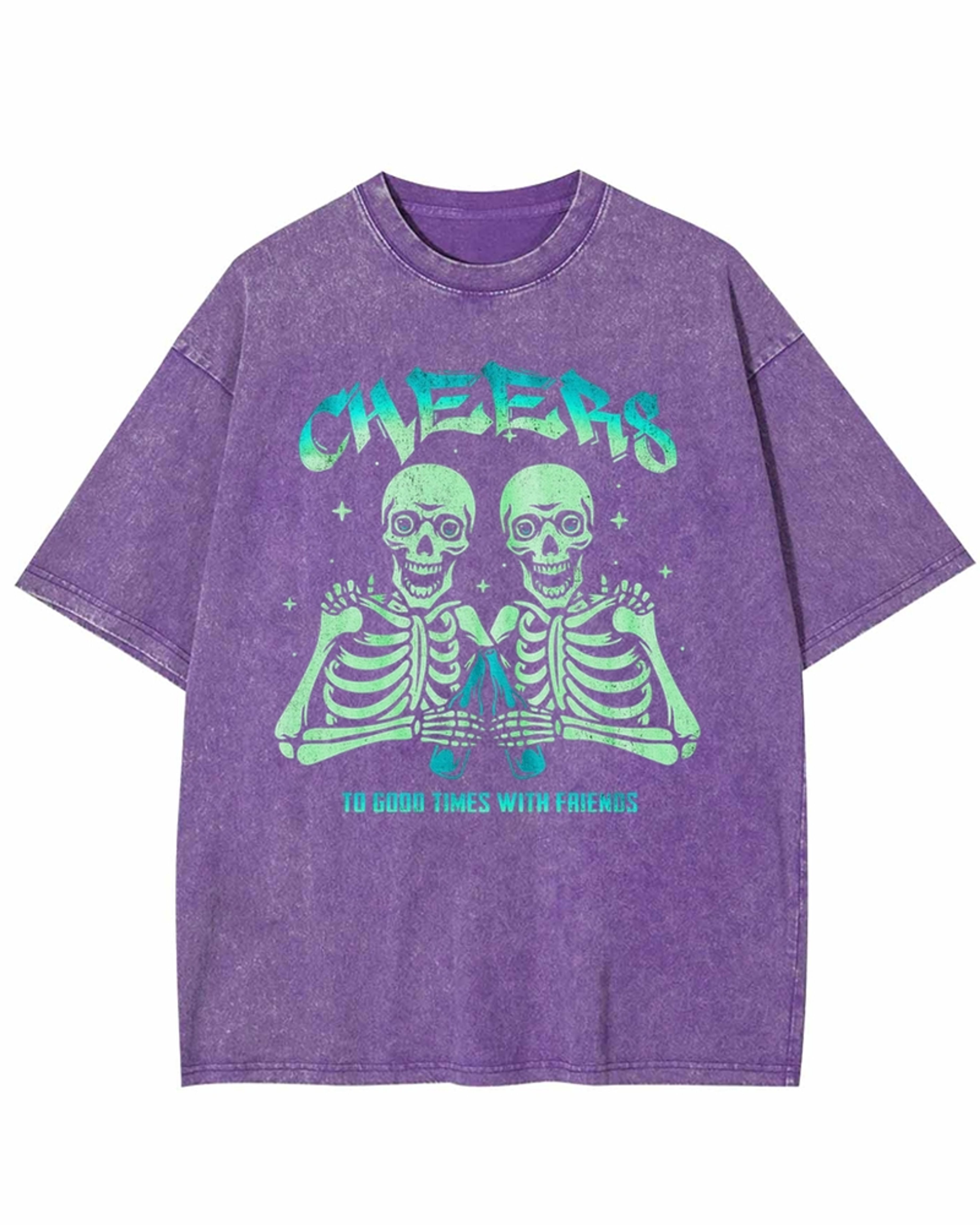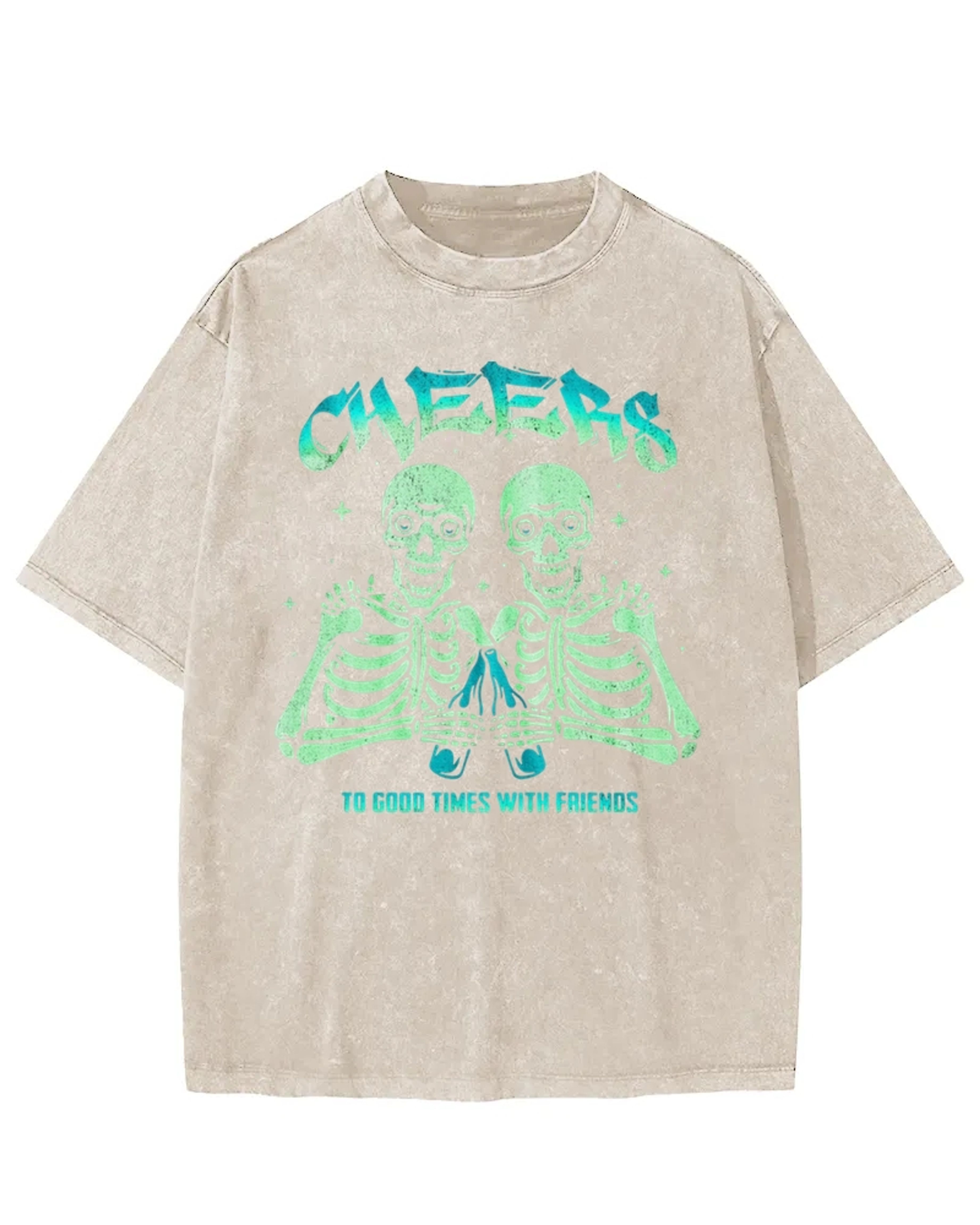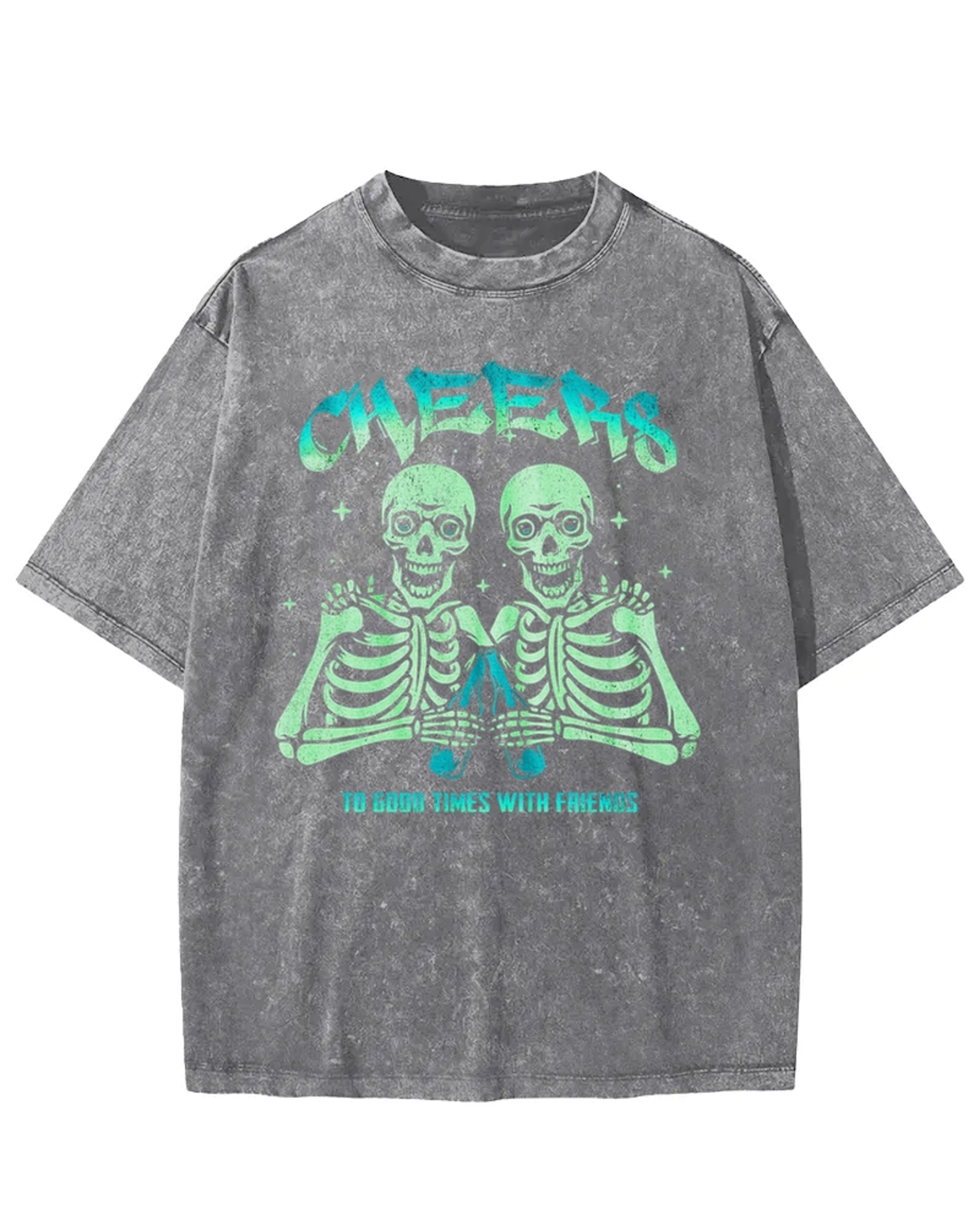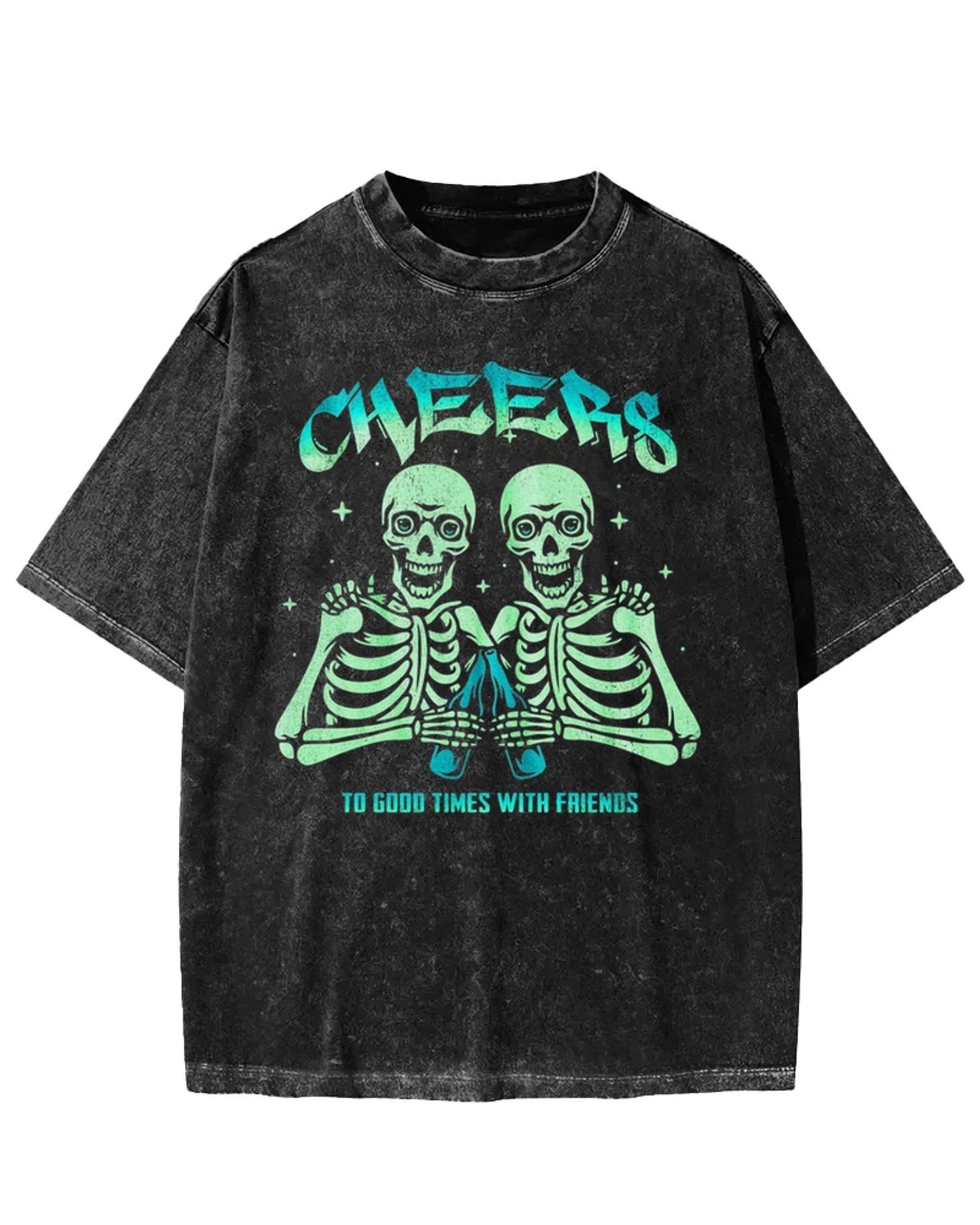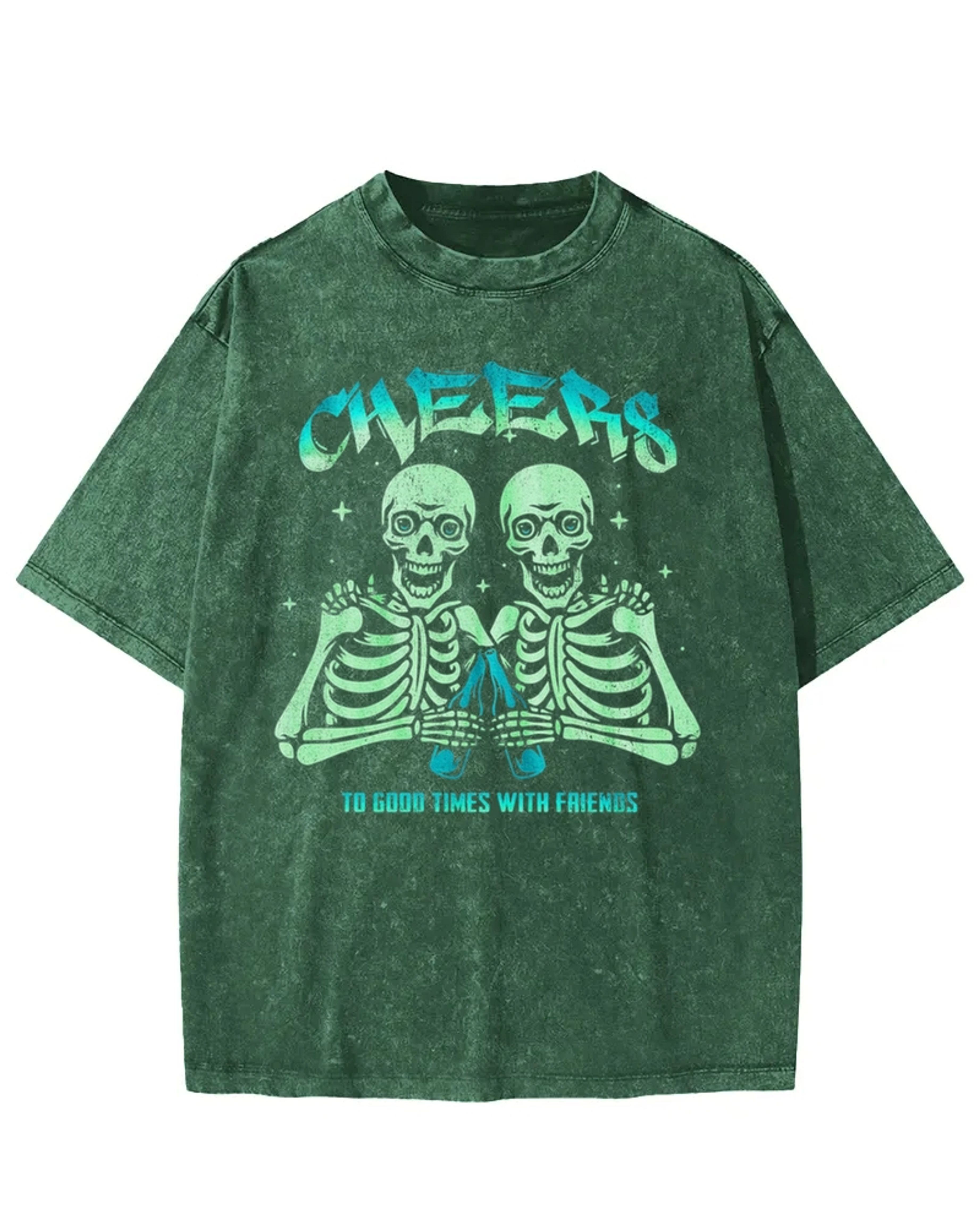 Cheers to Good Times with Friends Double Skull Washed T-Shirt