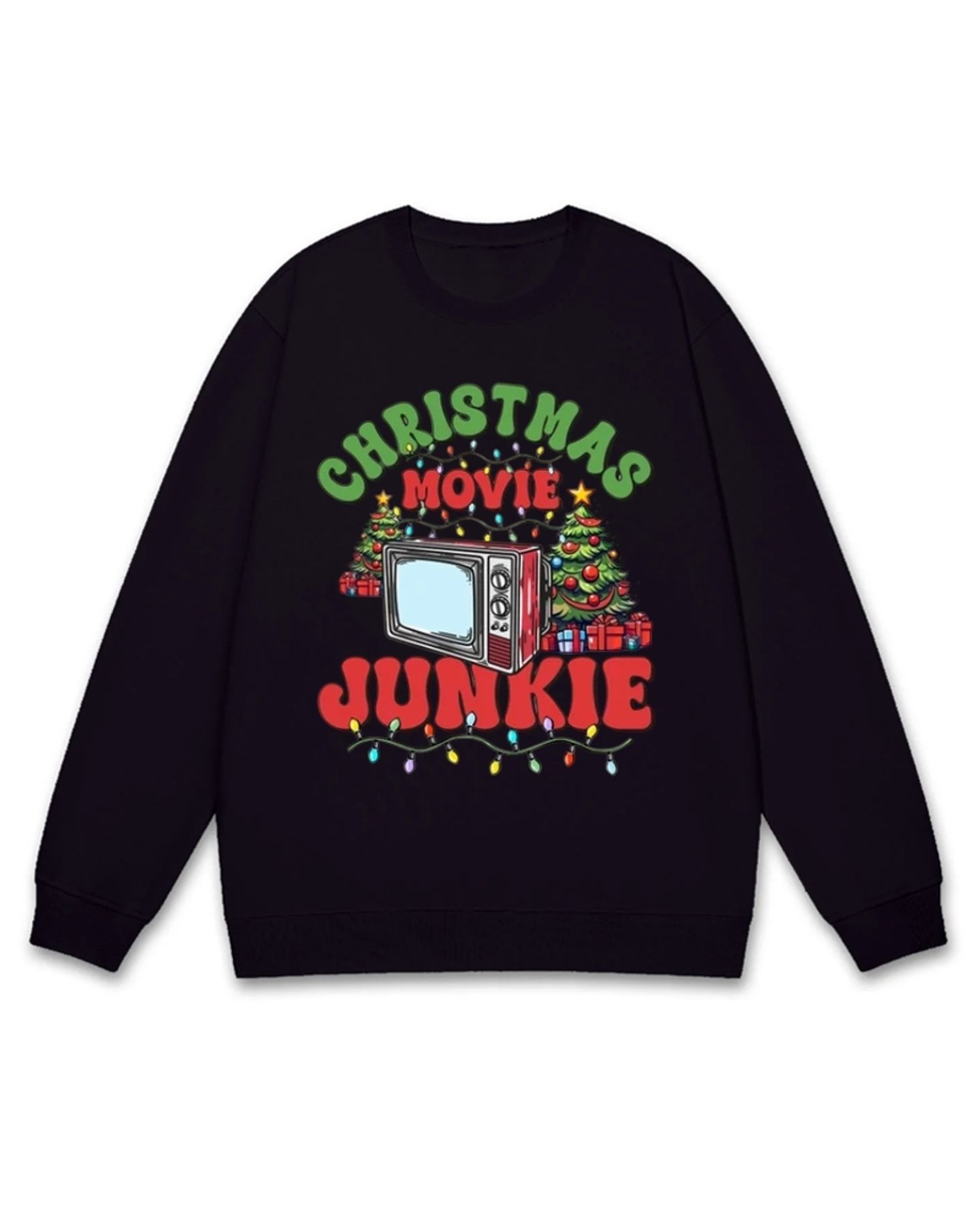 Christmas Movie Junkie Retro TV & Holiday Decor Sweatshirt
