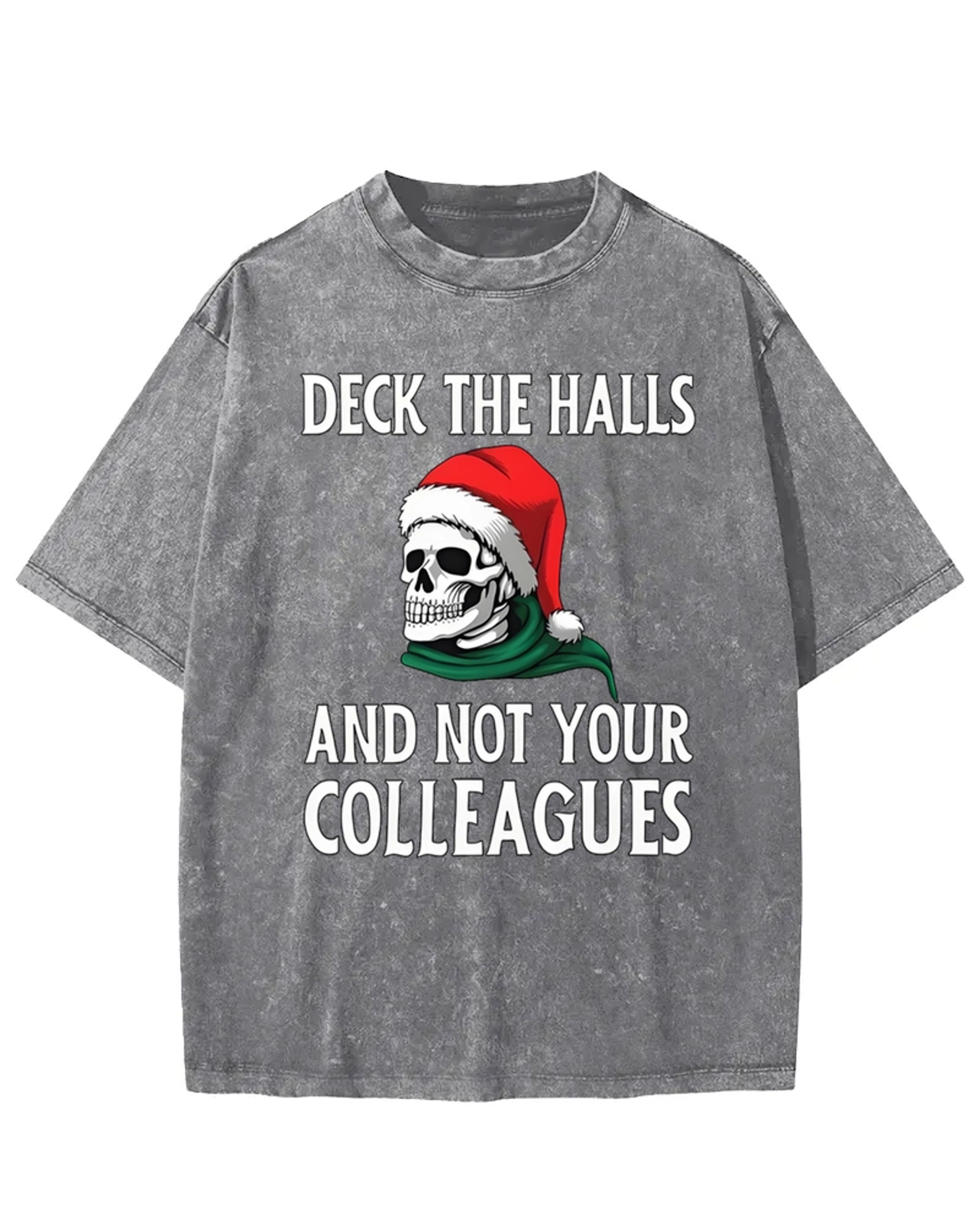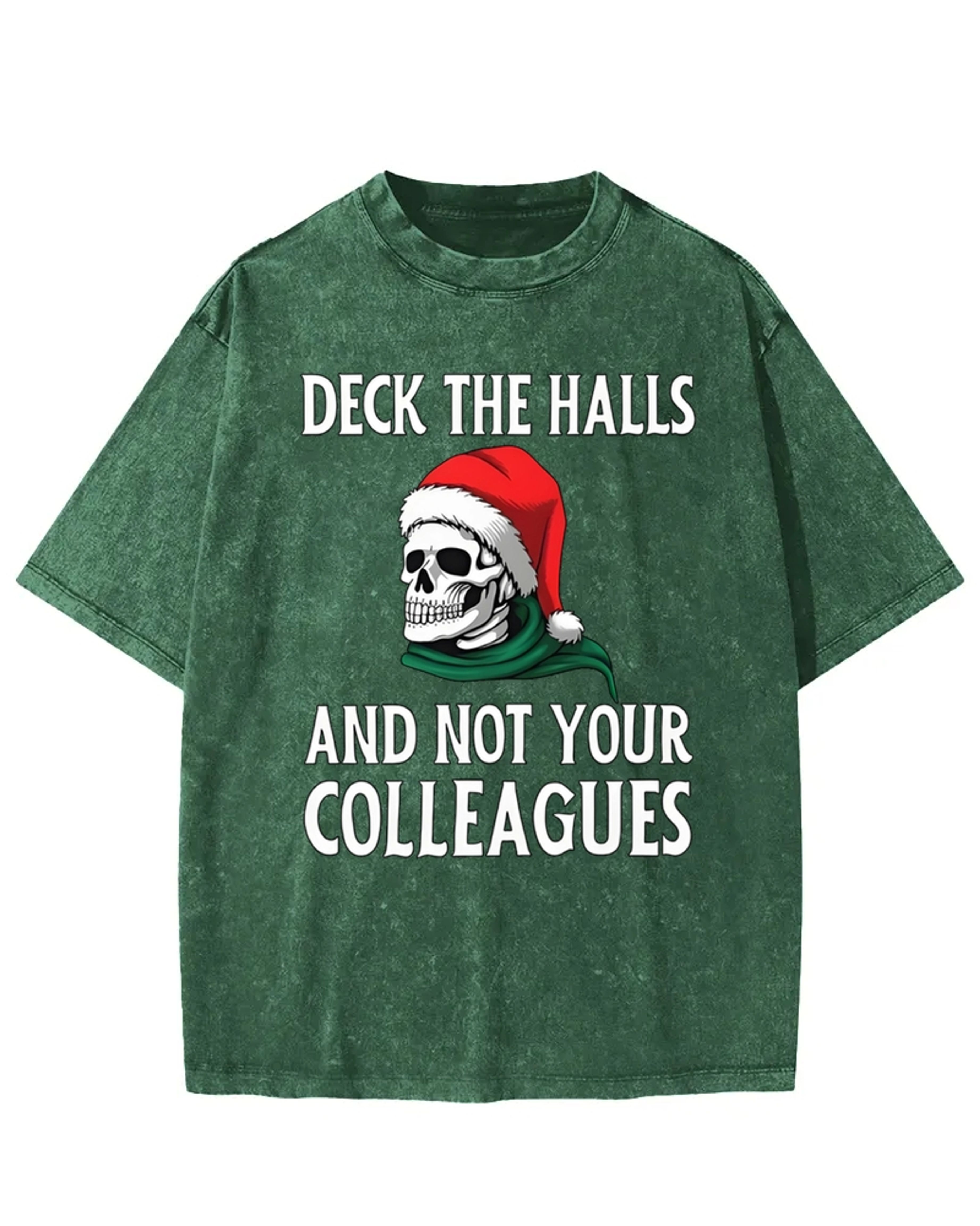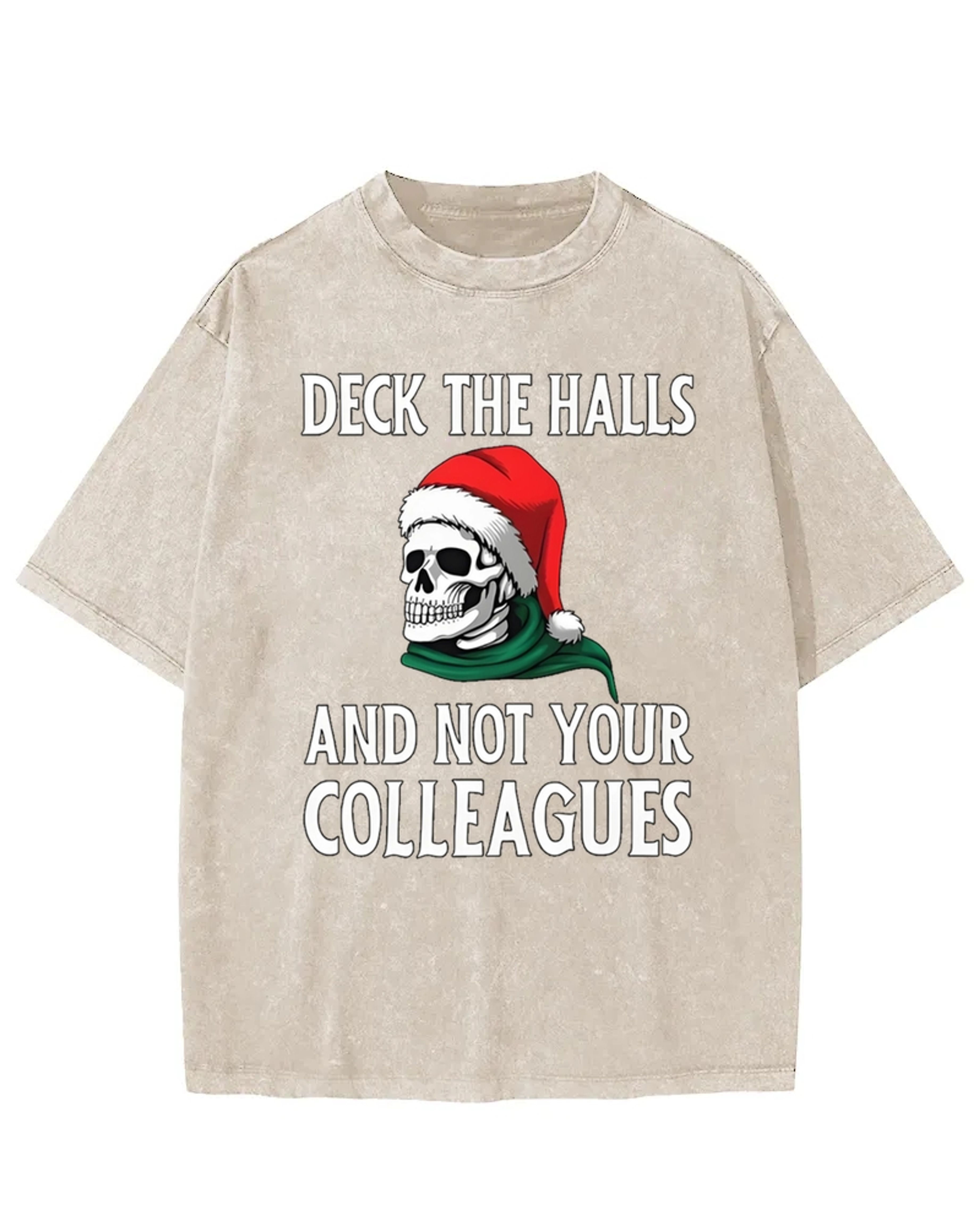 Deck the Halls and Not Your Colleagues Santa Skull Washed T-Shirt