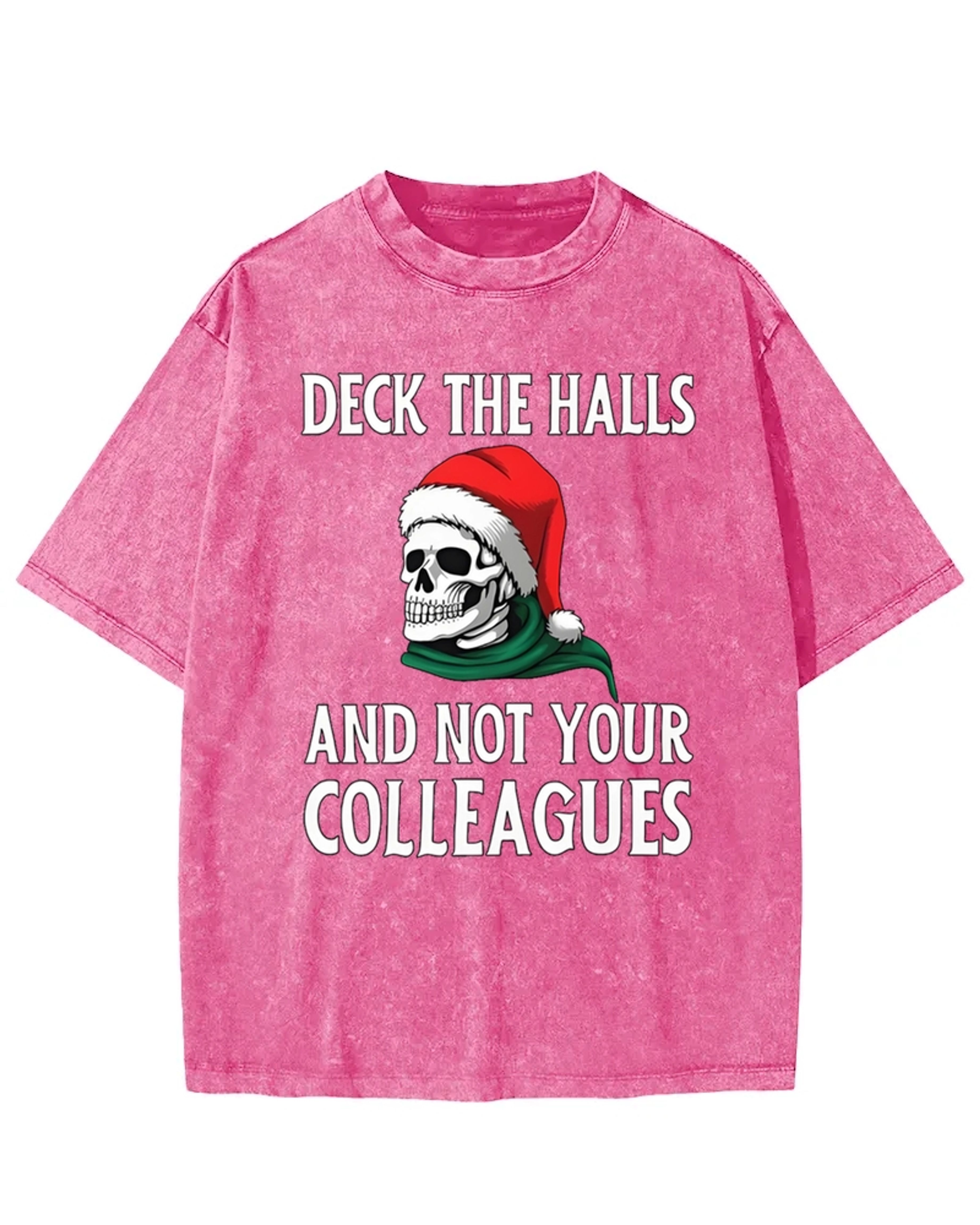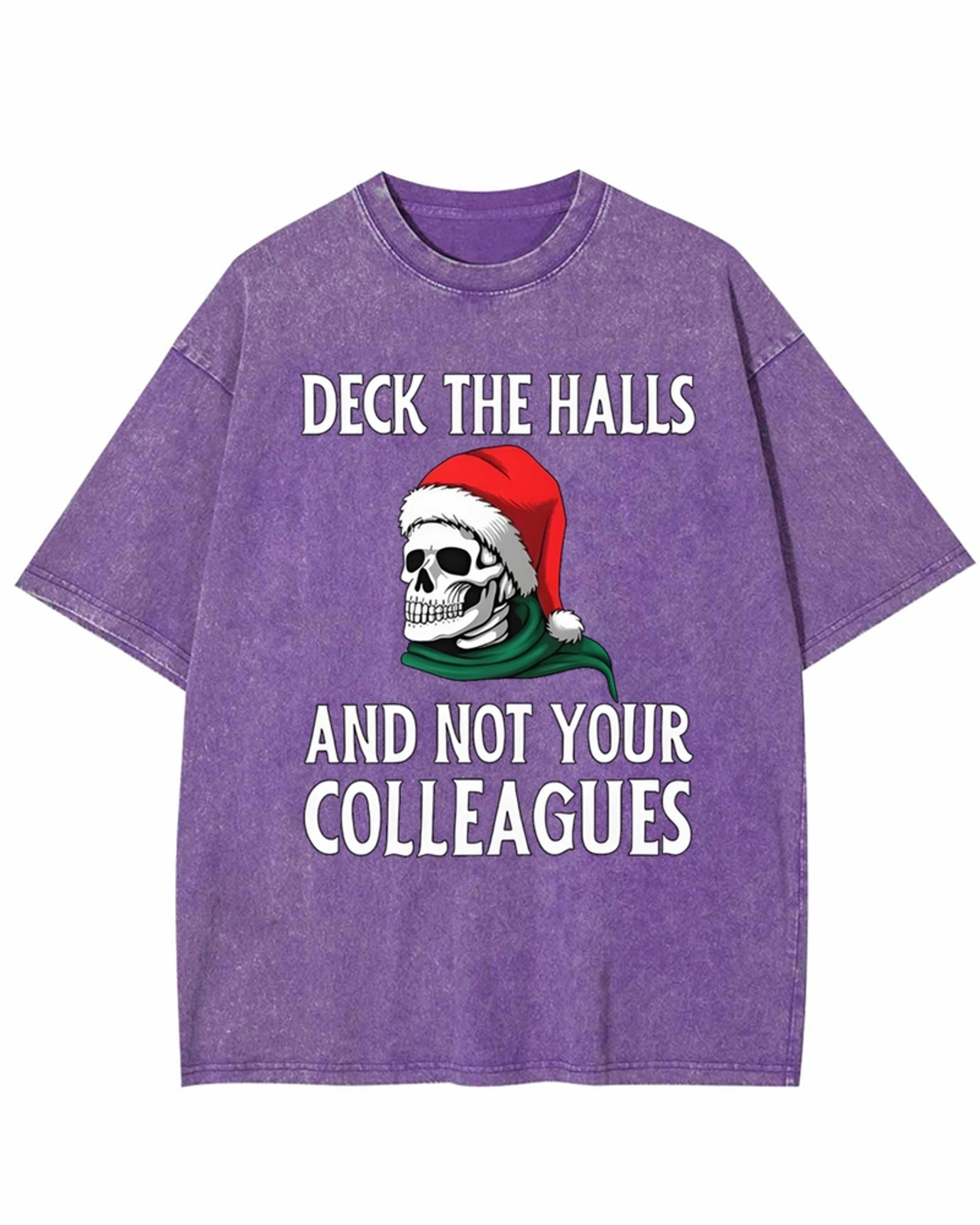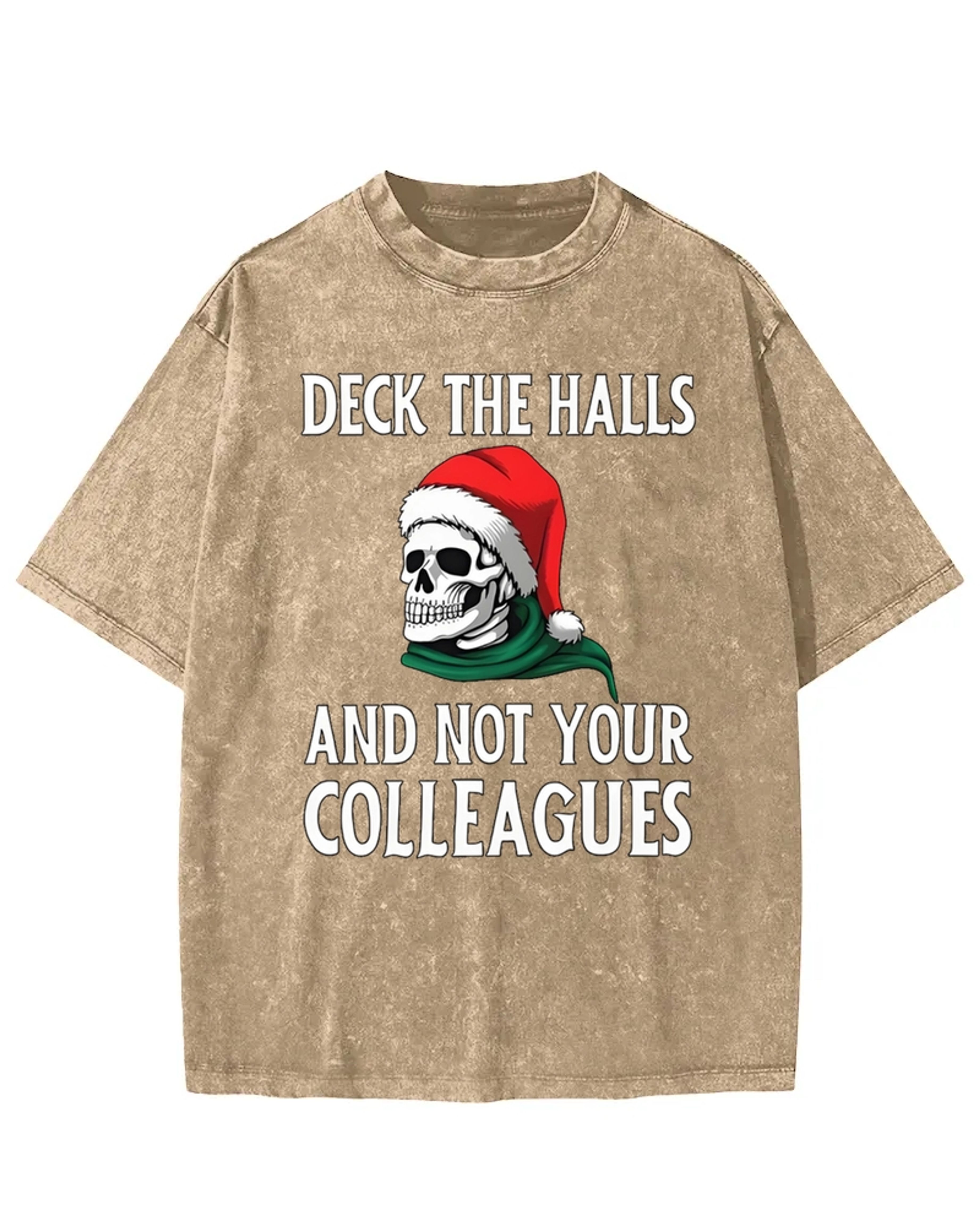 Deck the Halls and Not Your Colleagues Santa Skull Washed T-Shirt
