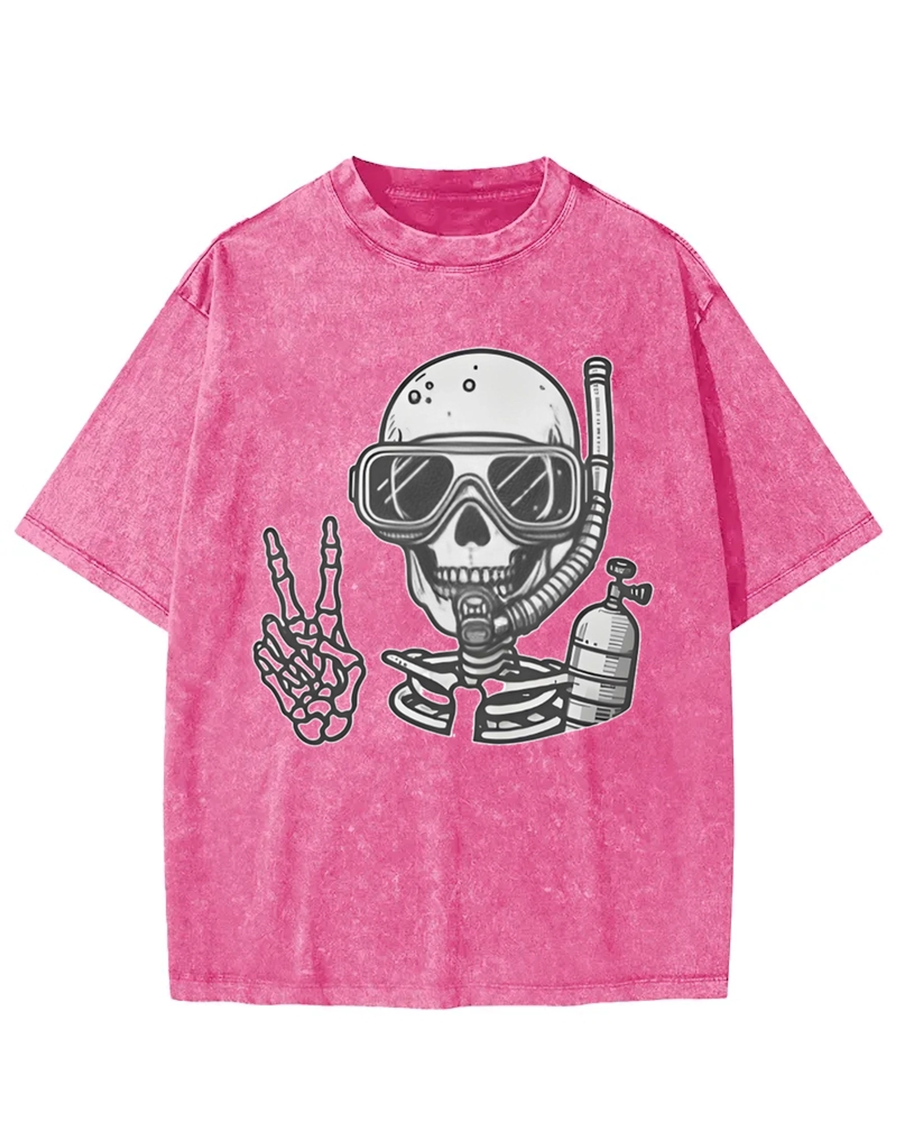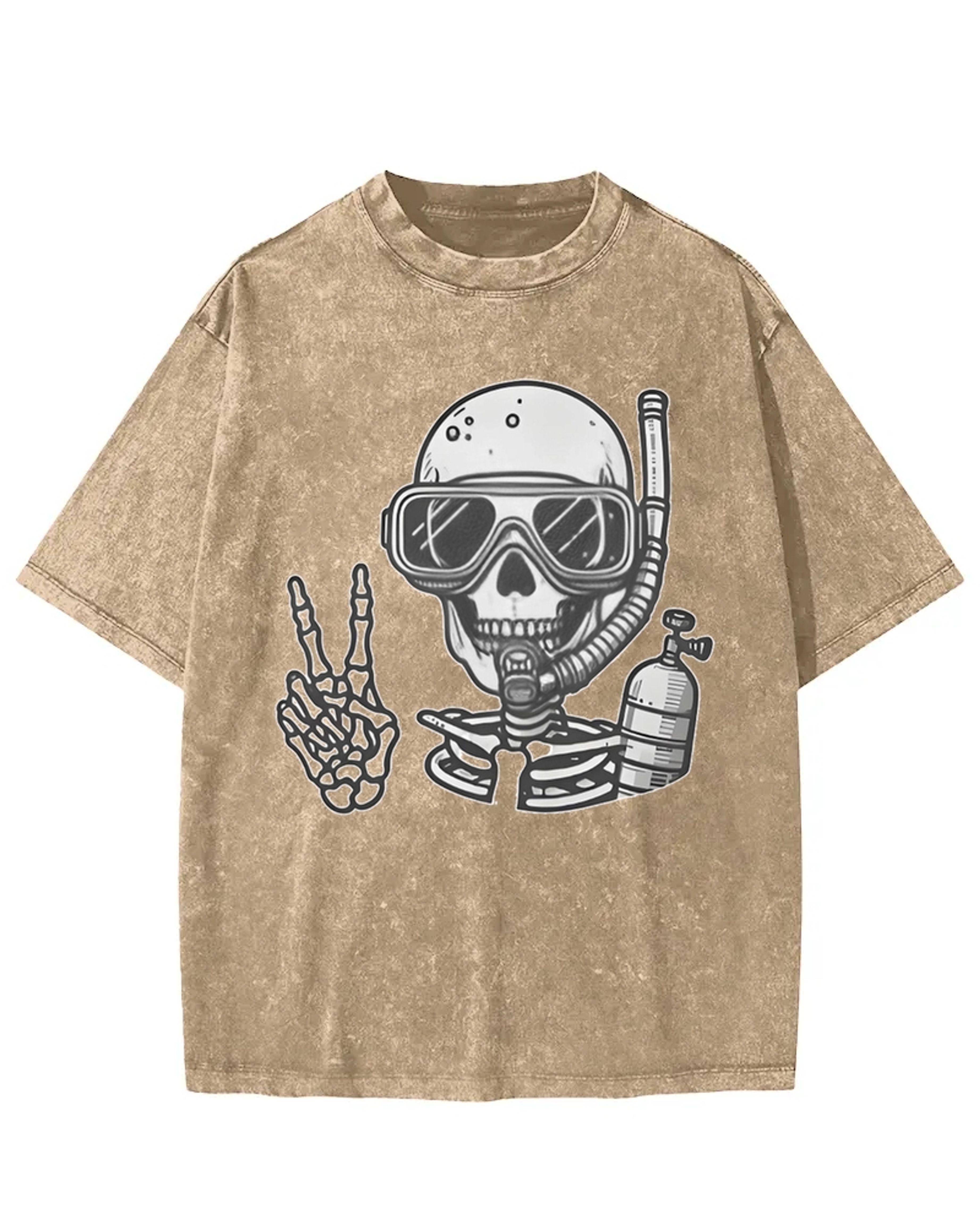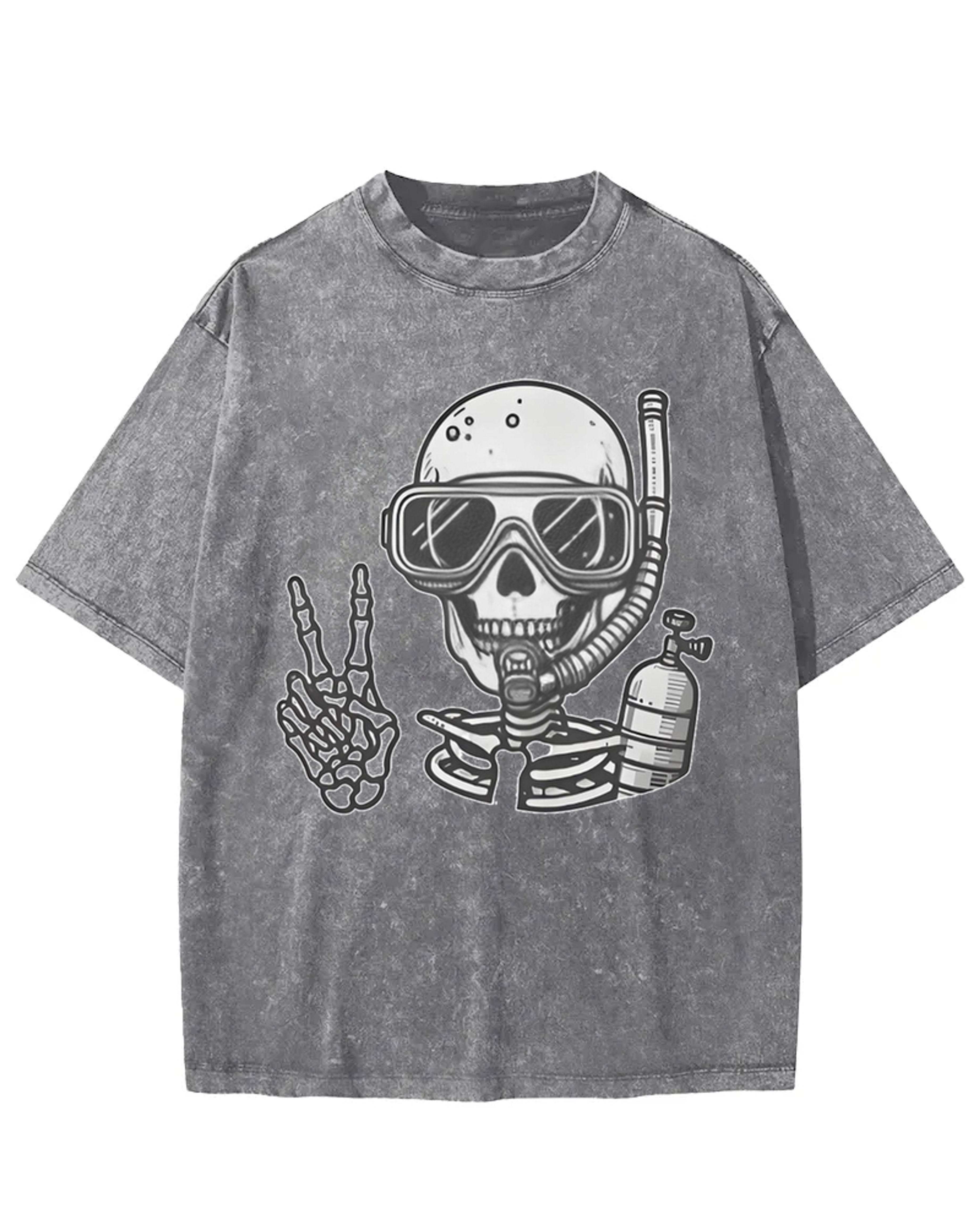Diving Skeleton Peace Sign Washed T-Shirt