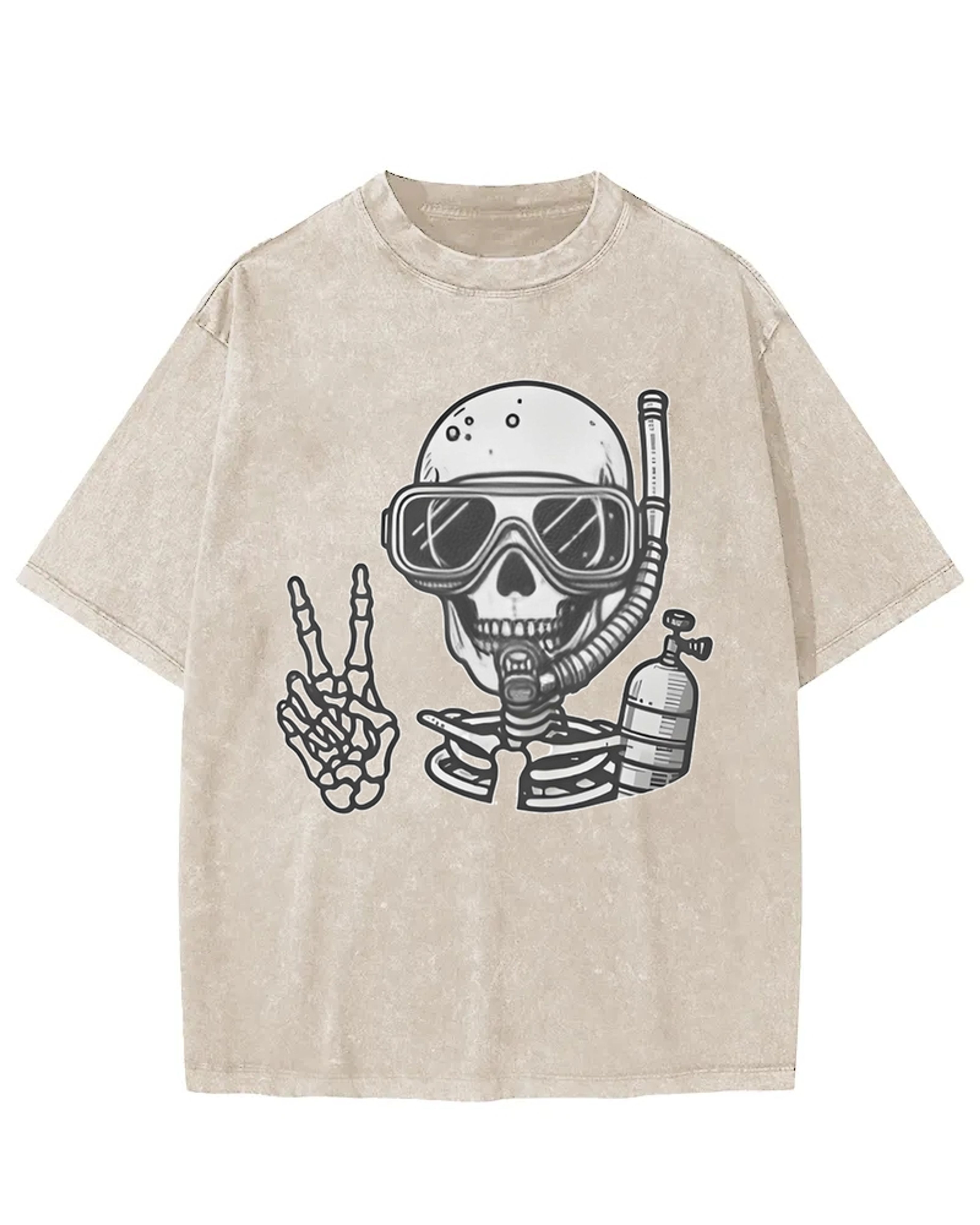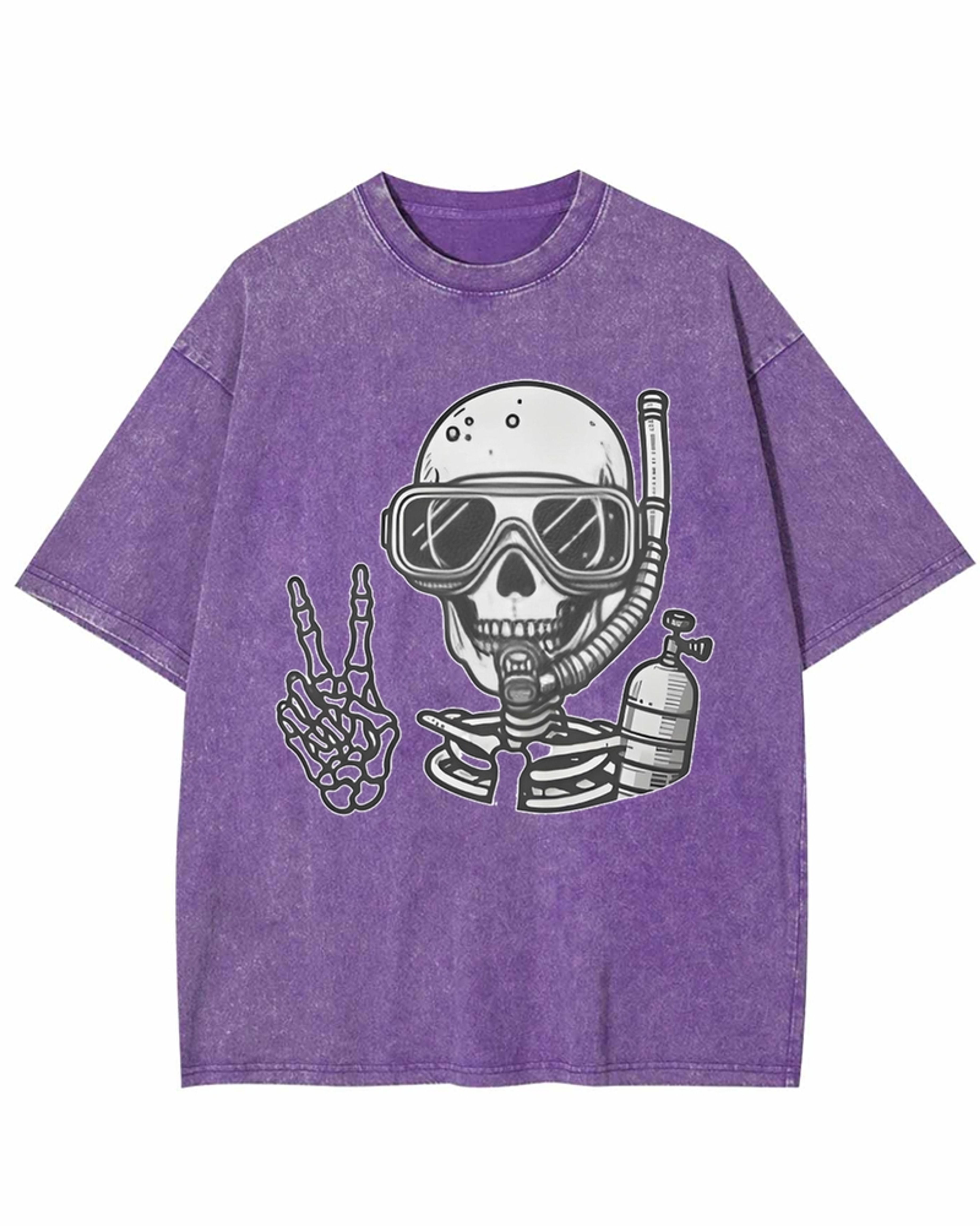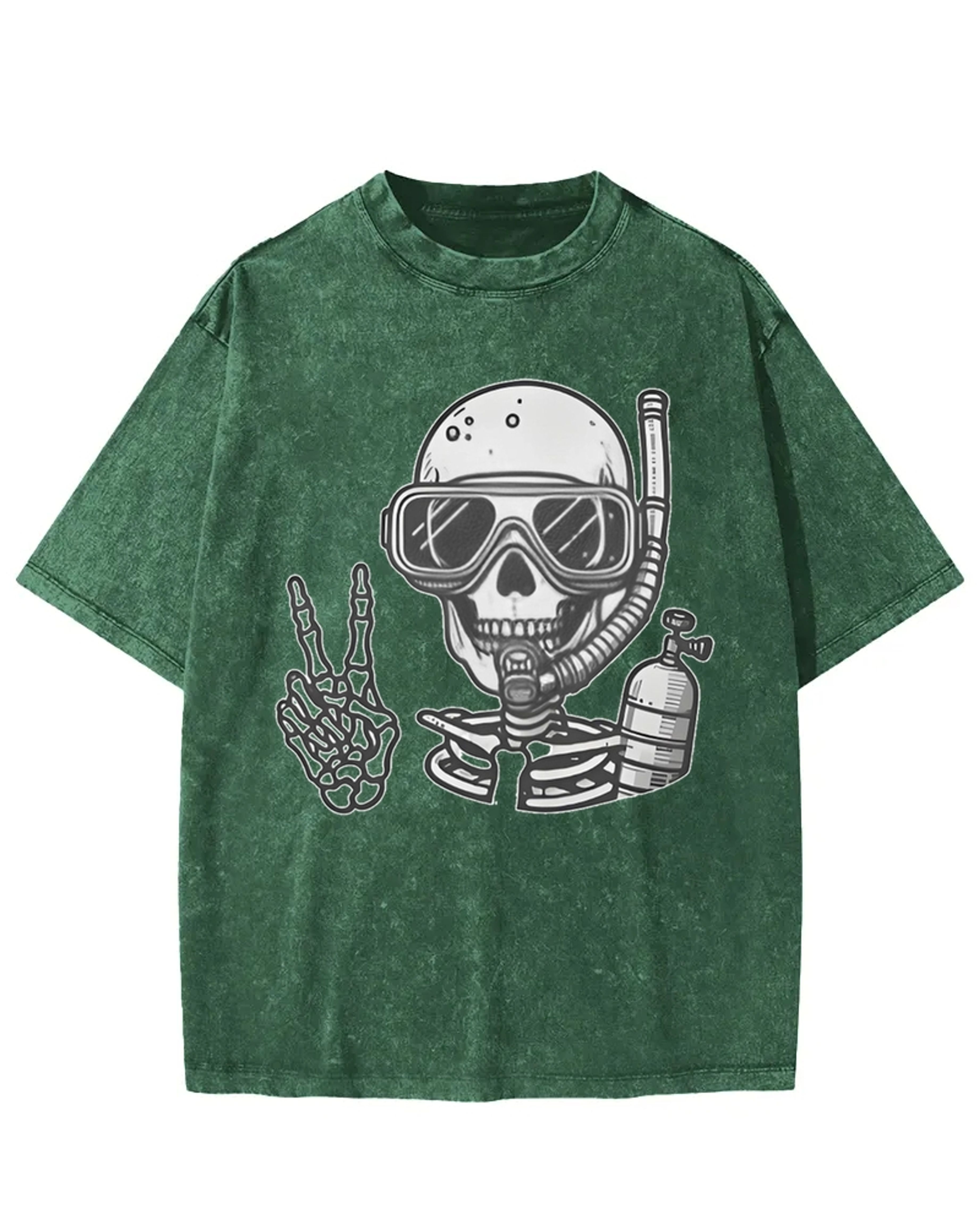 Diving Skeleton Peace Sign Washed T-Shirt