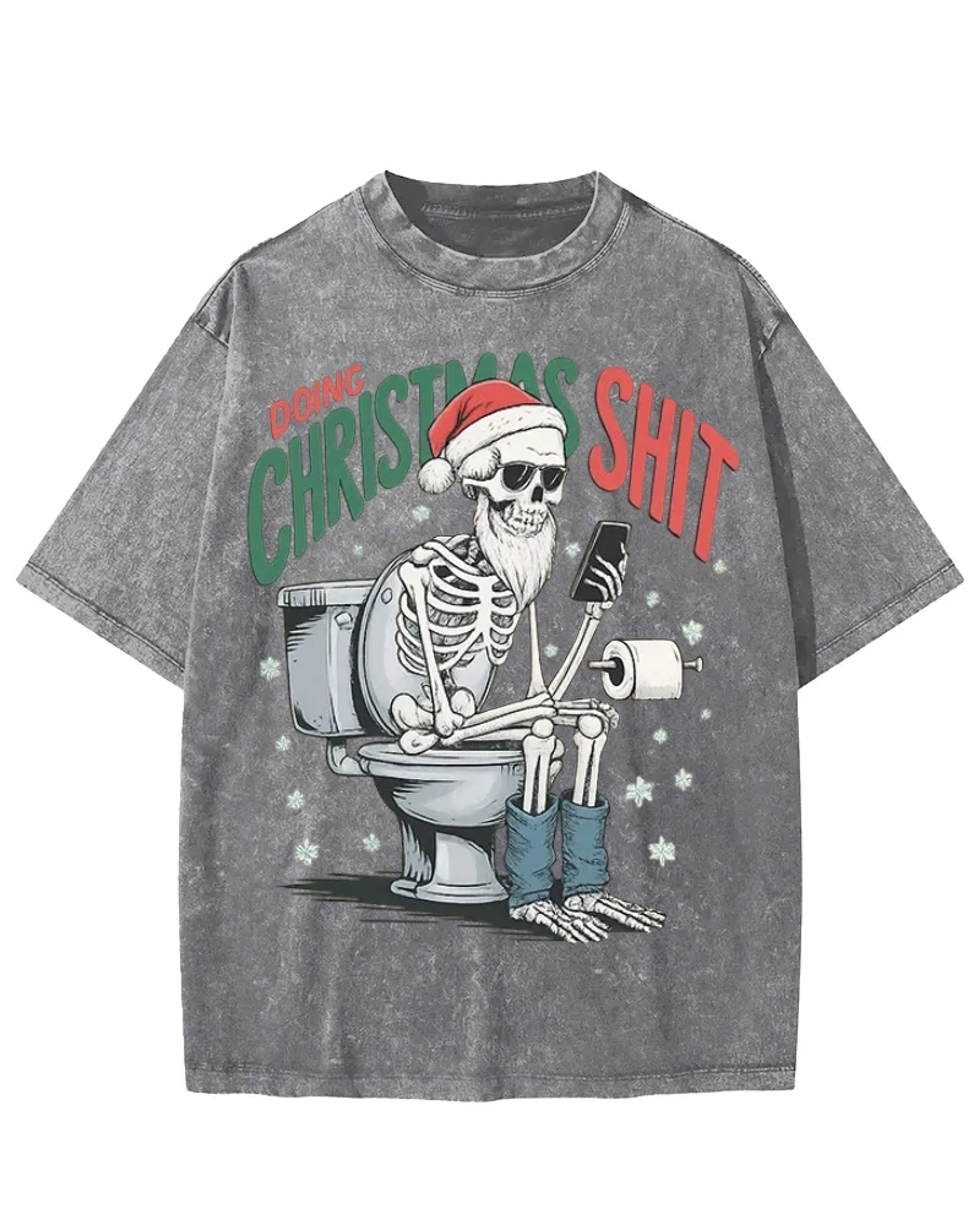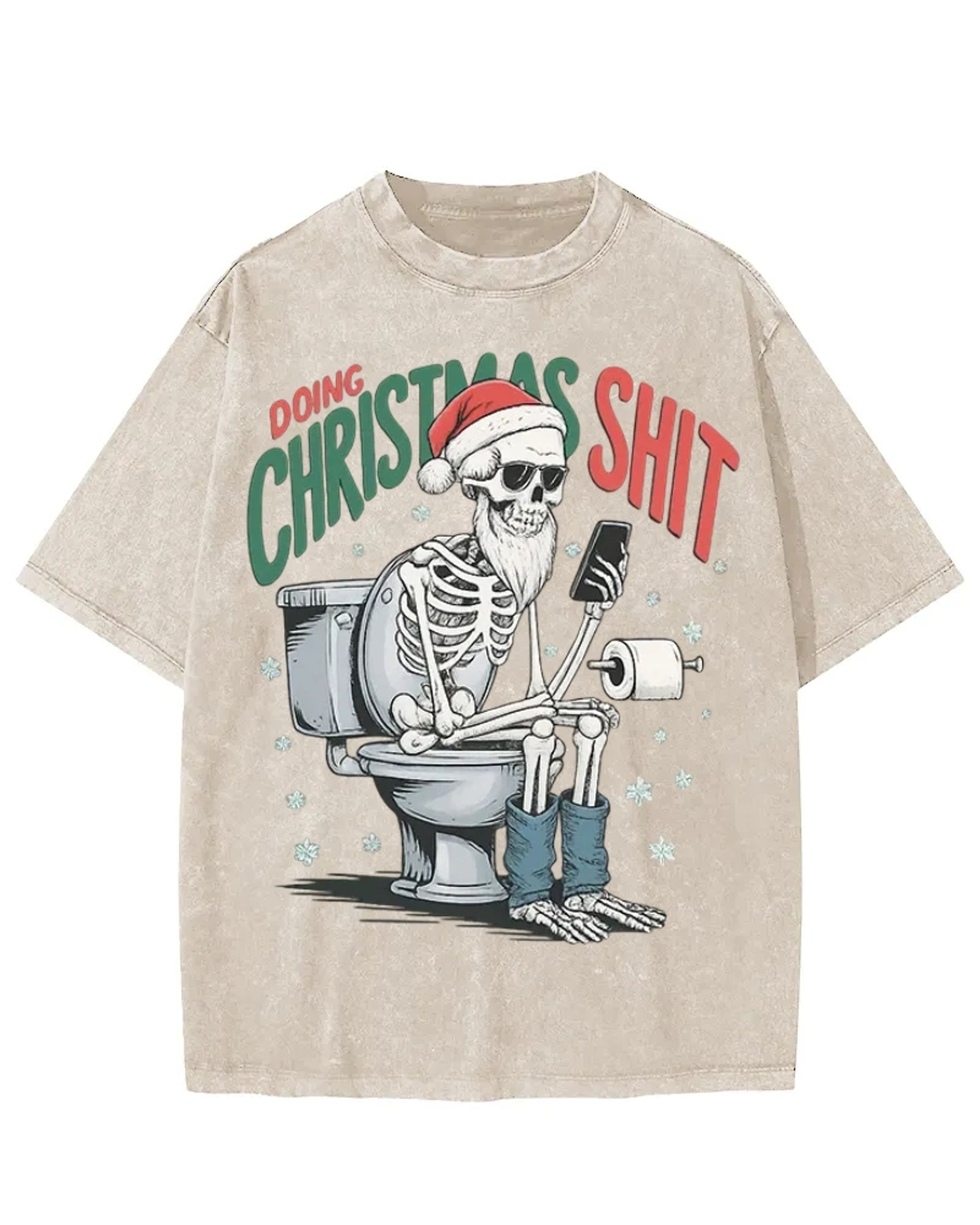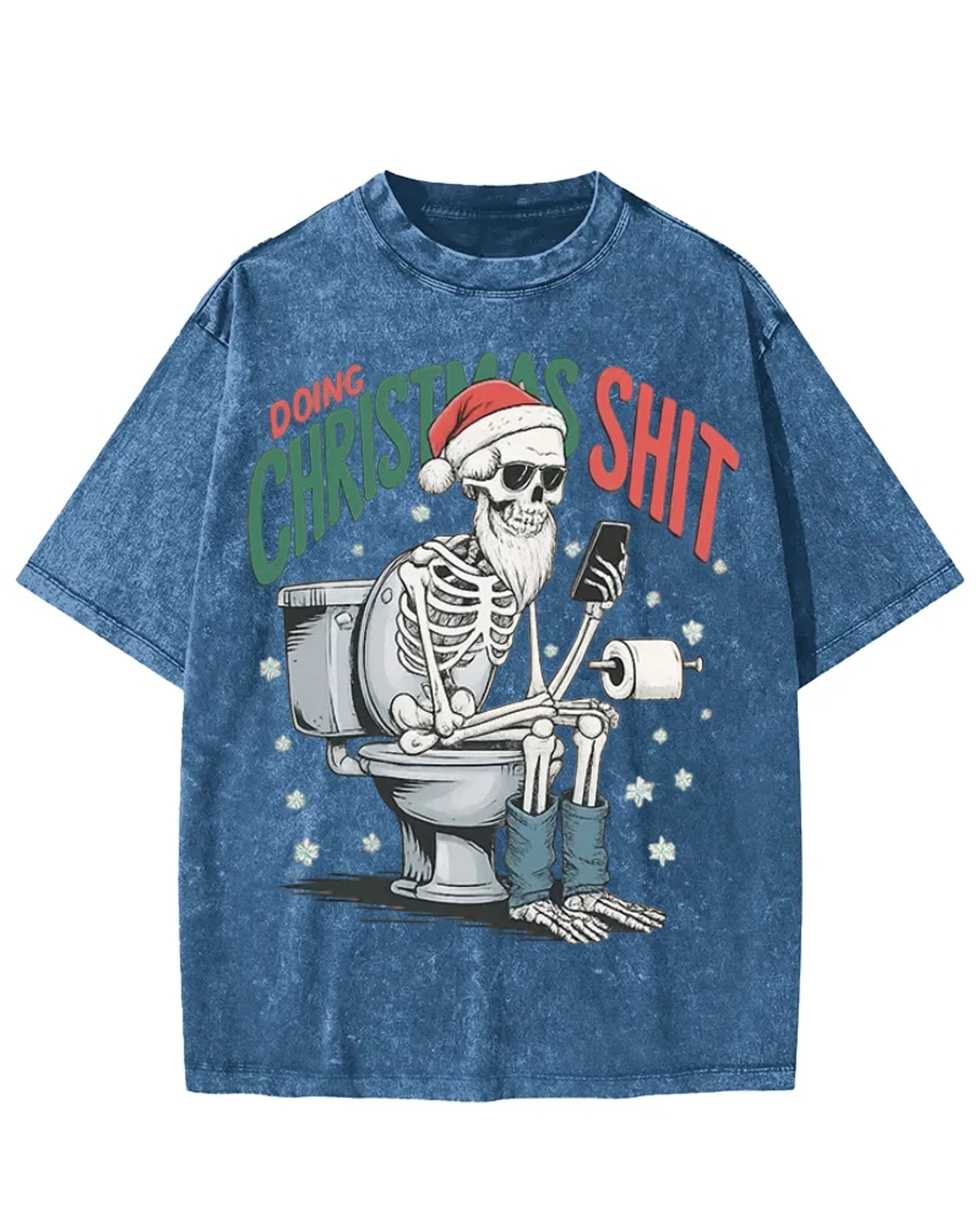 Doing Christmas Shit Skeleton Humor Washed T-shirt