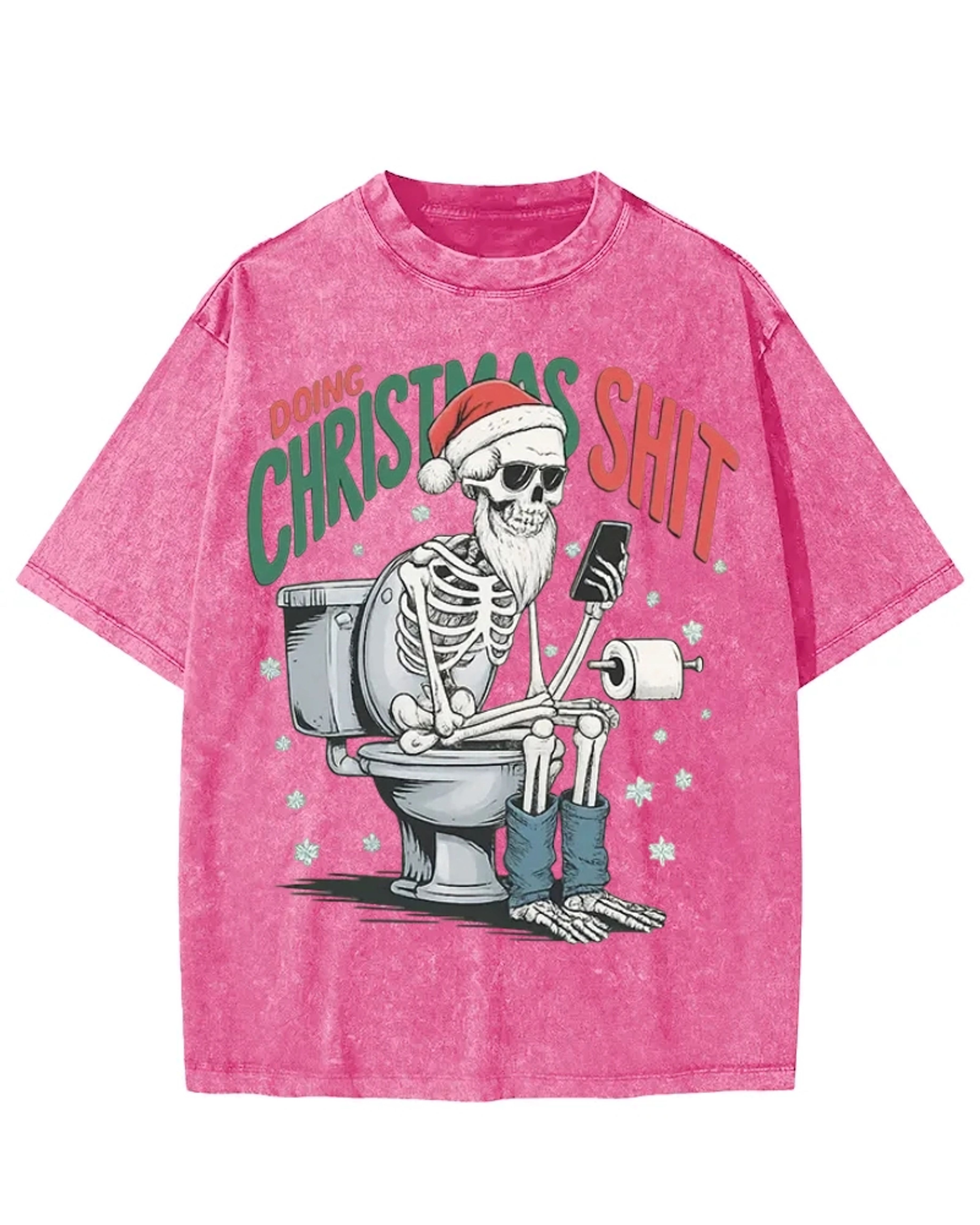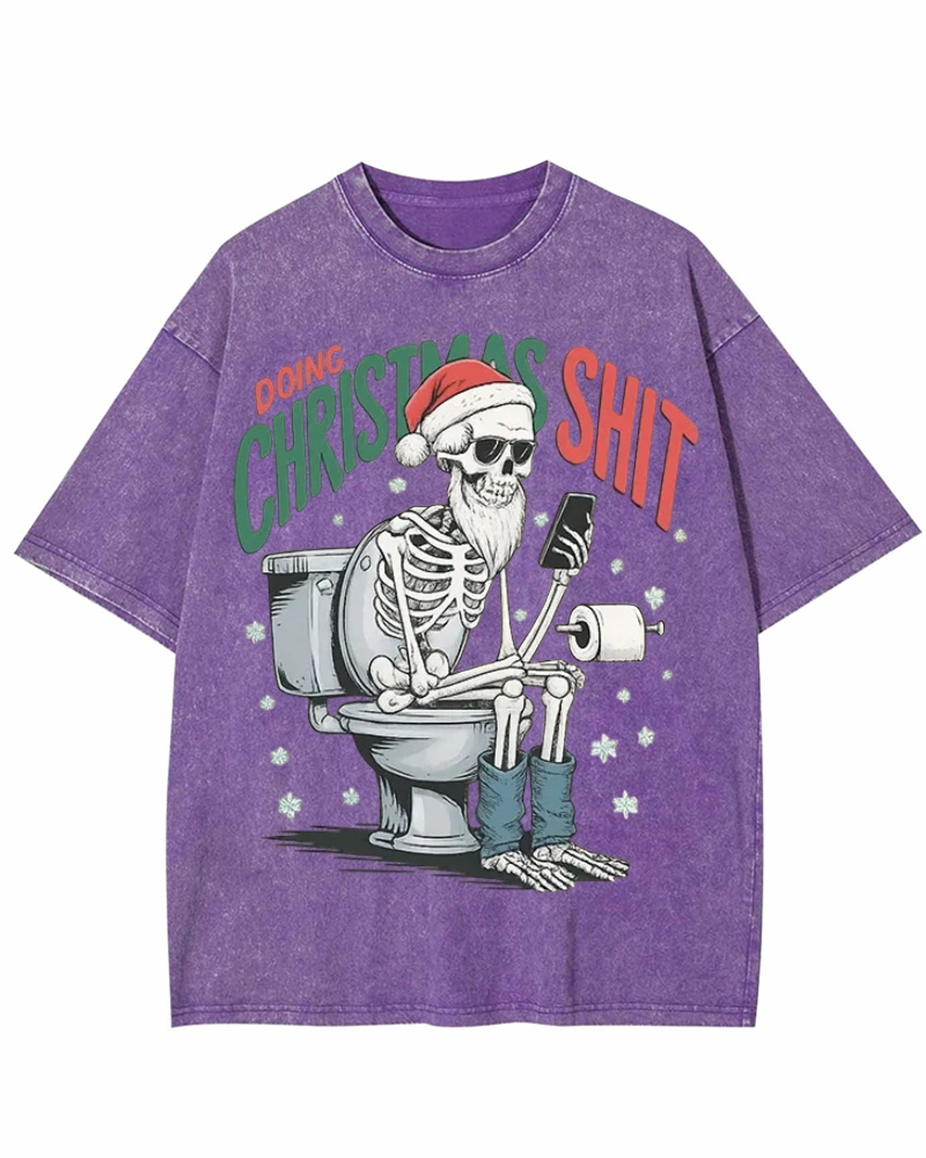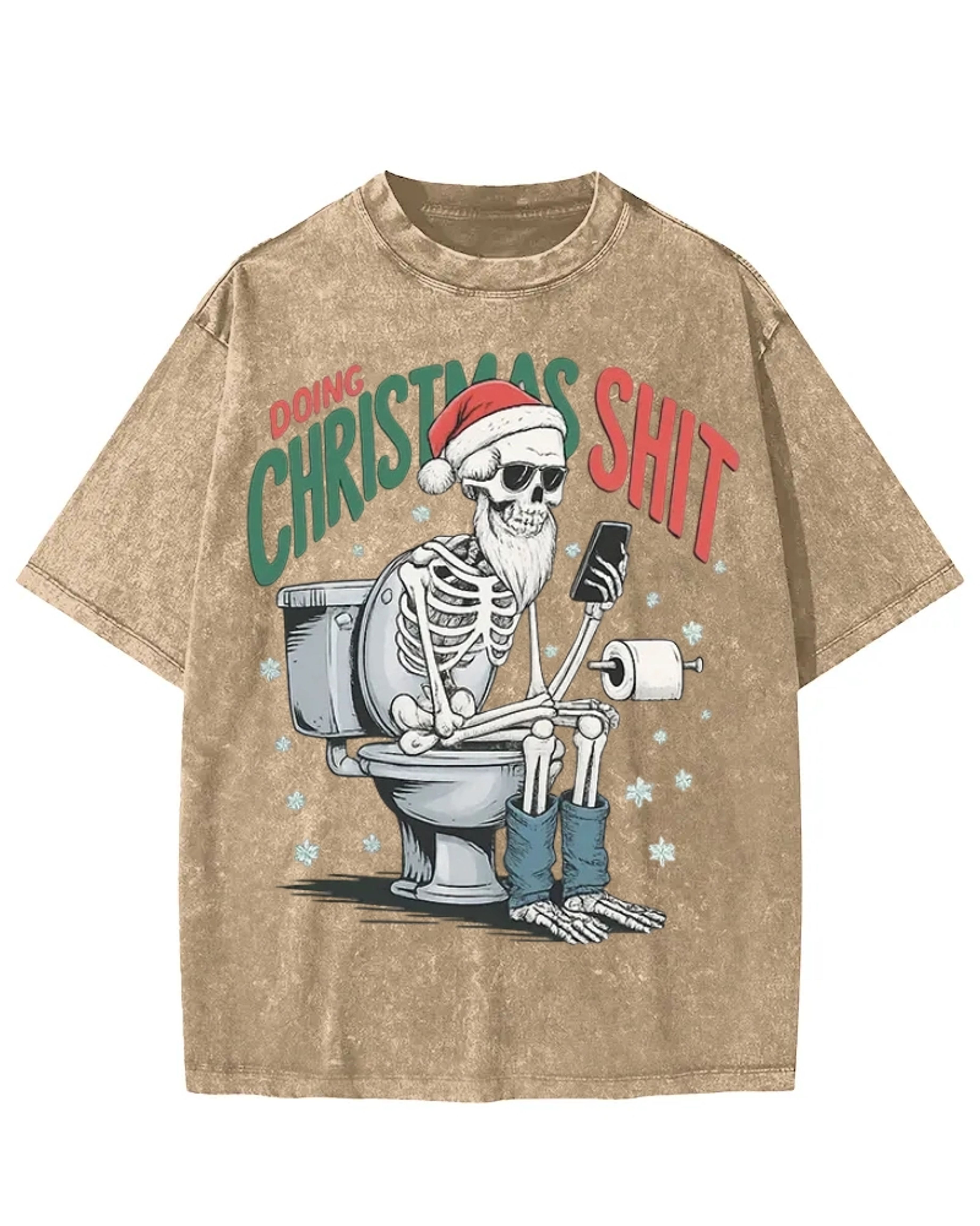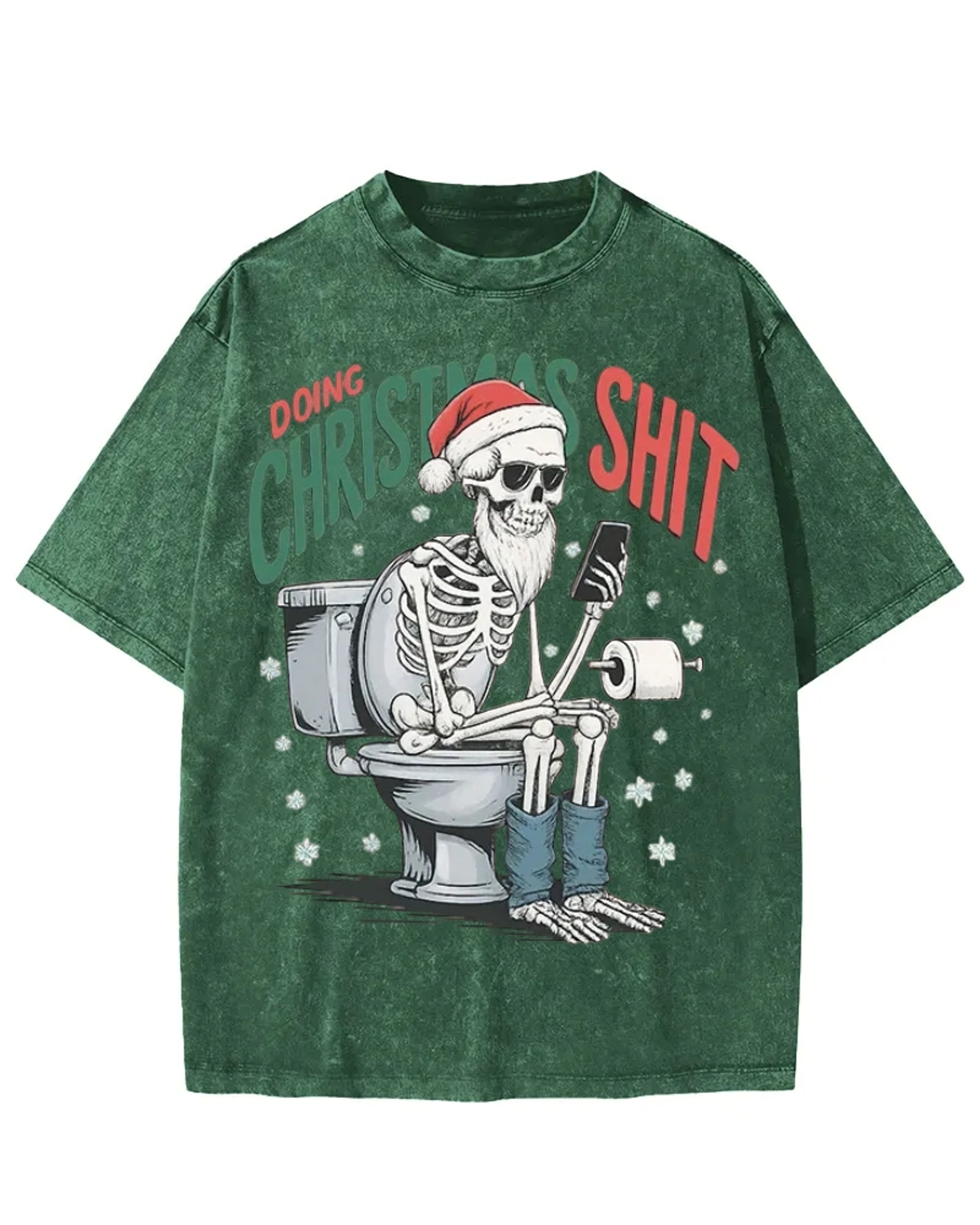 Doing Christmas Shit Skeleton Humor Washed T-shirt