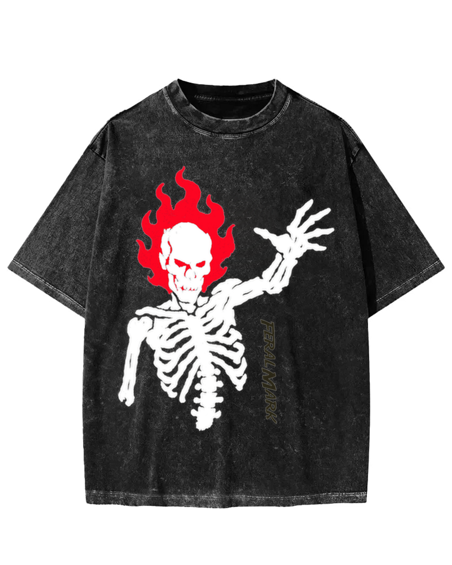 FeralMark Purple Flaming Skeleton Graphic Washed T-shirt