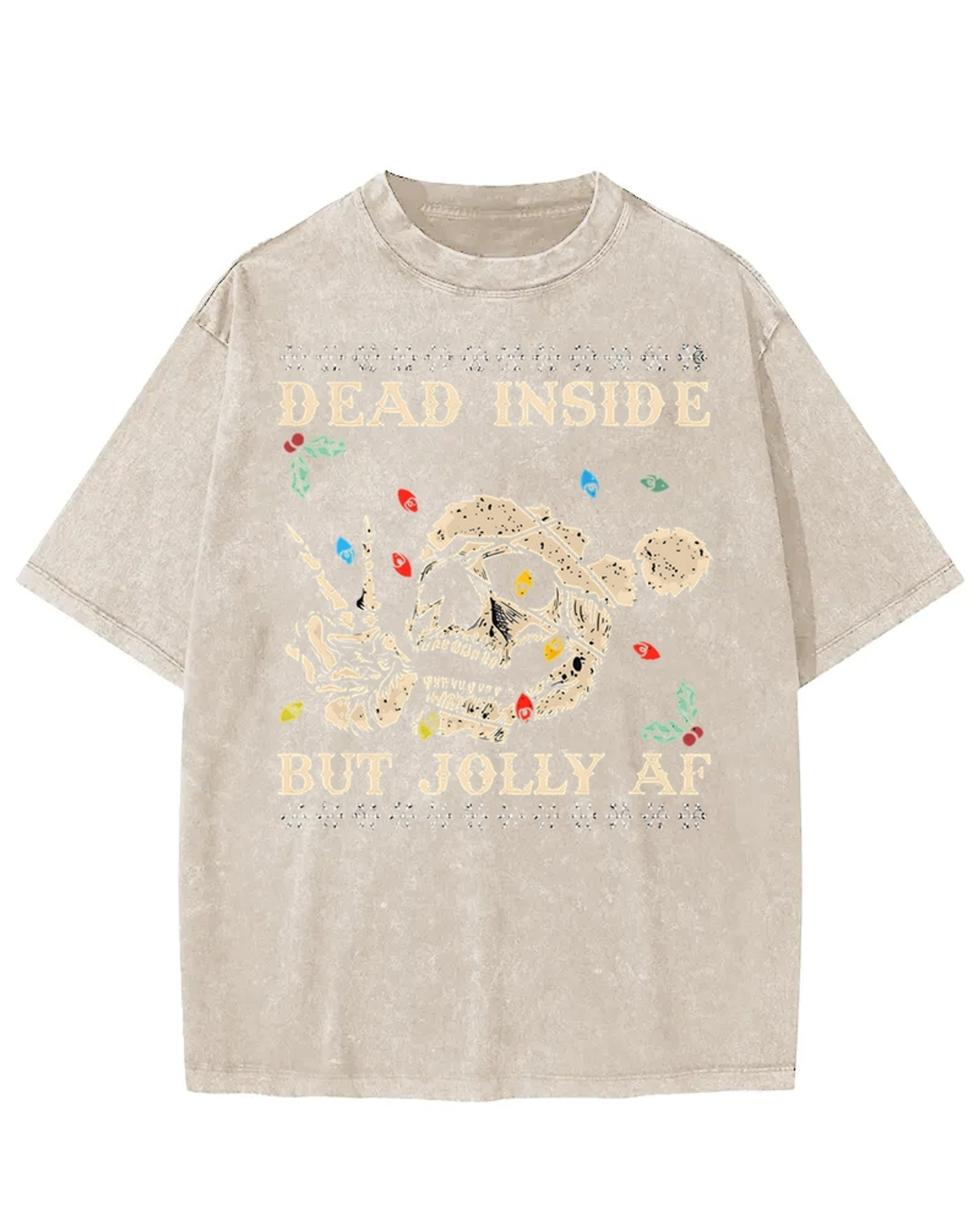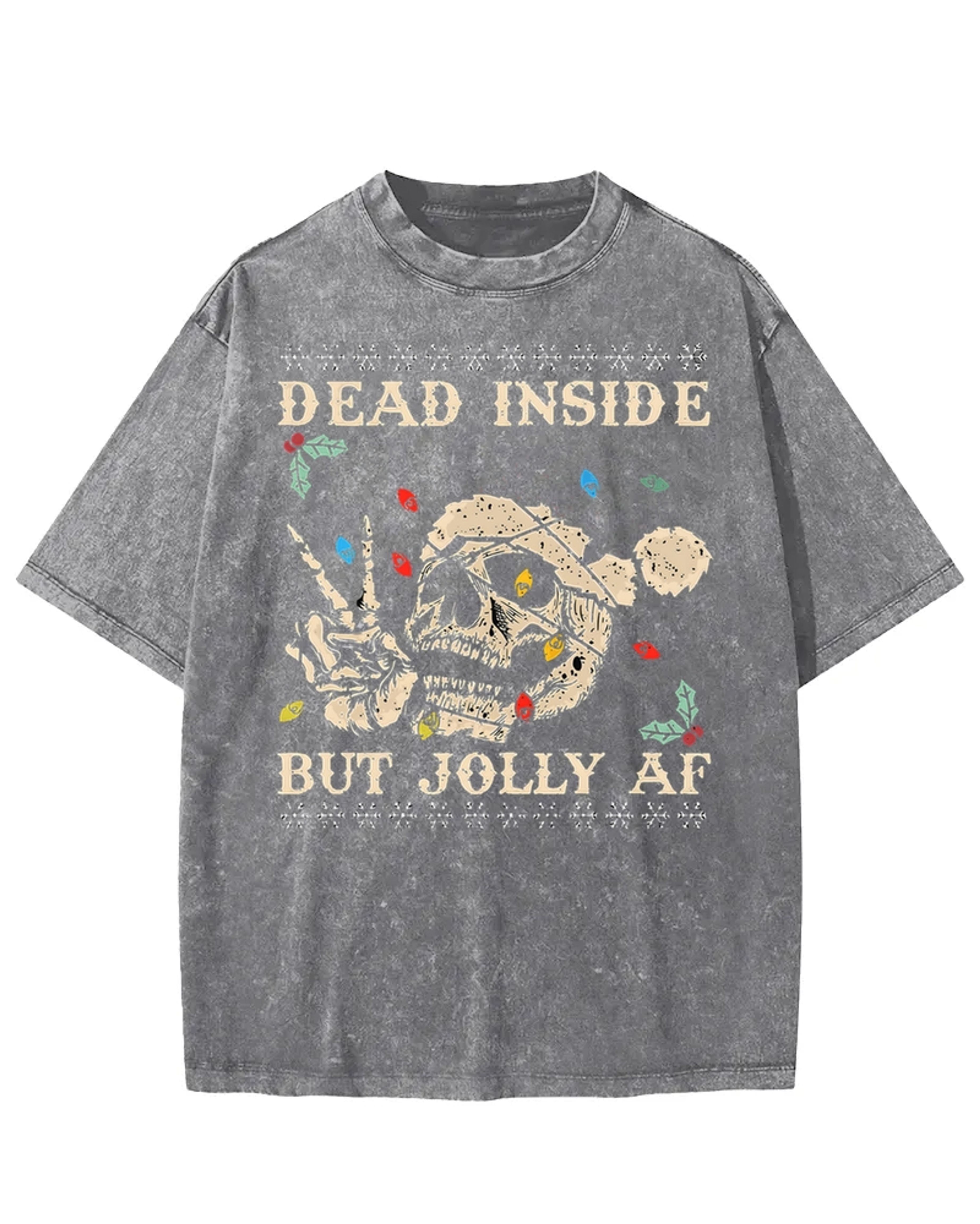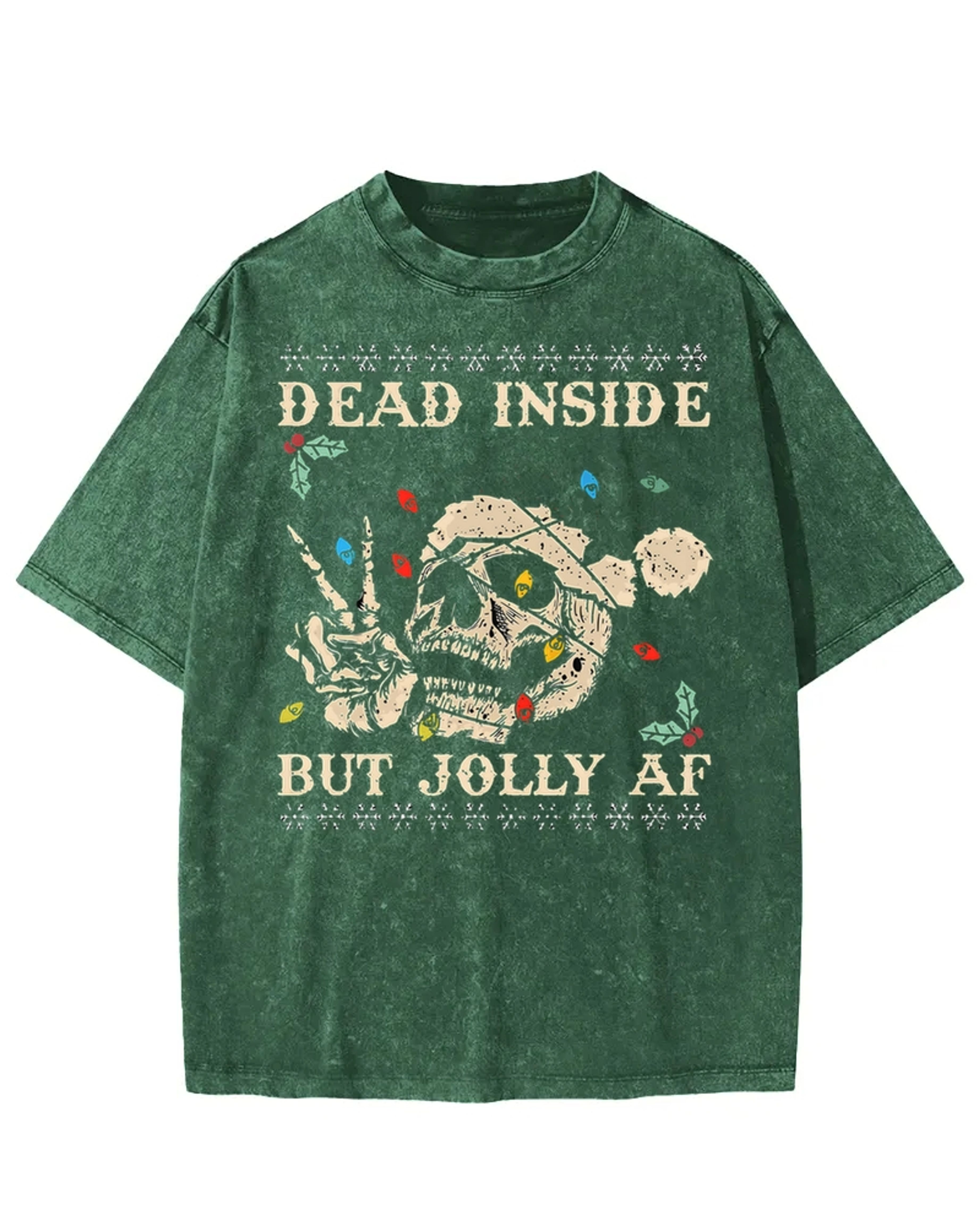 Festive Skull Dead inside but Jolly af Washed T-Shirt