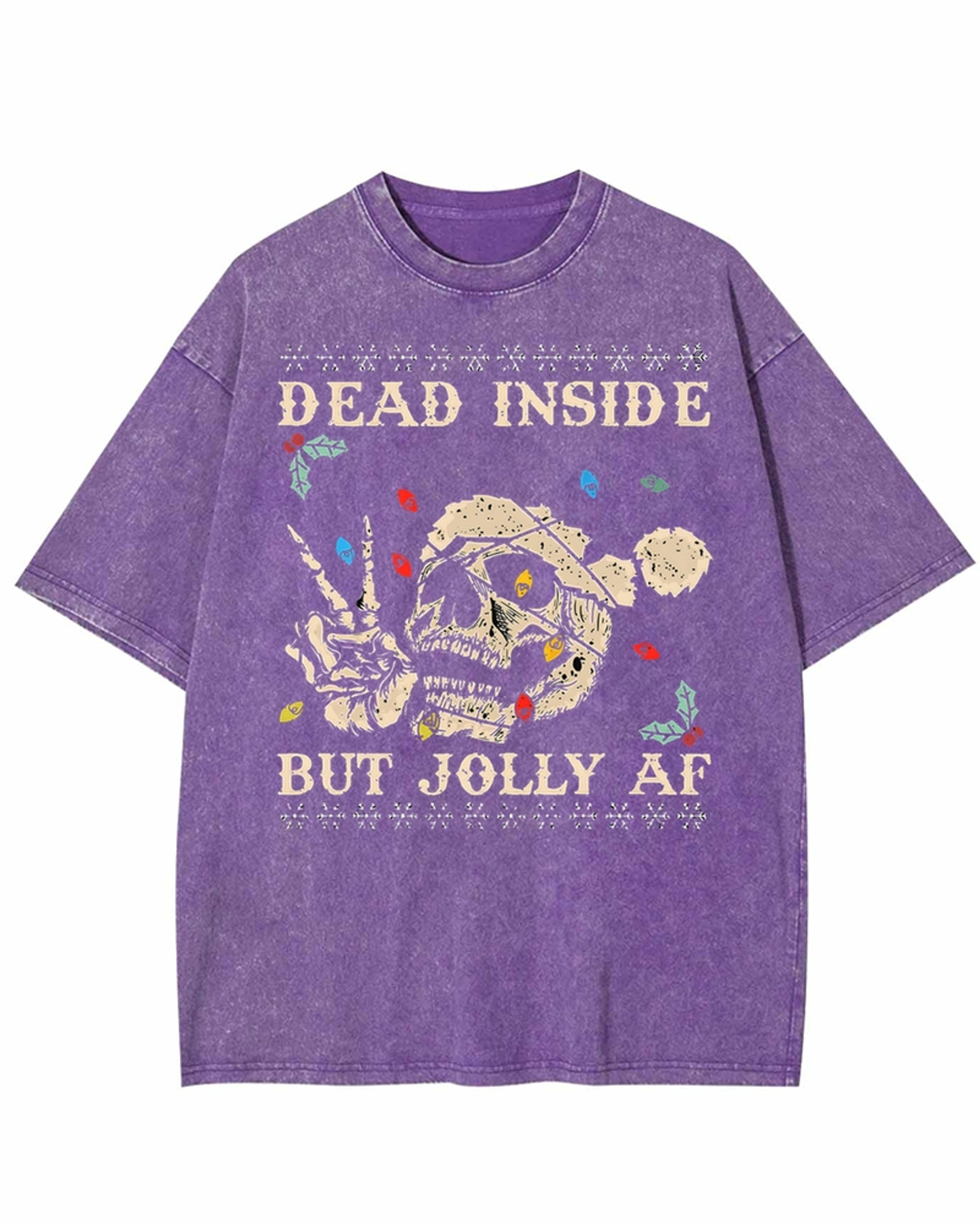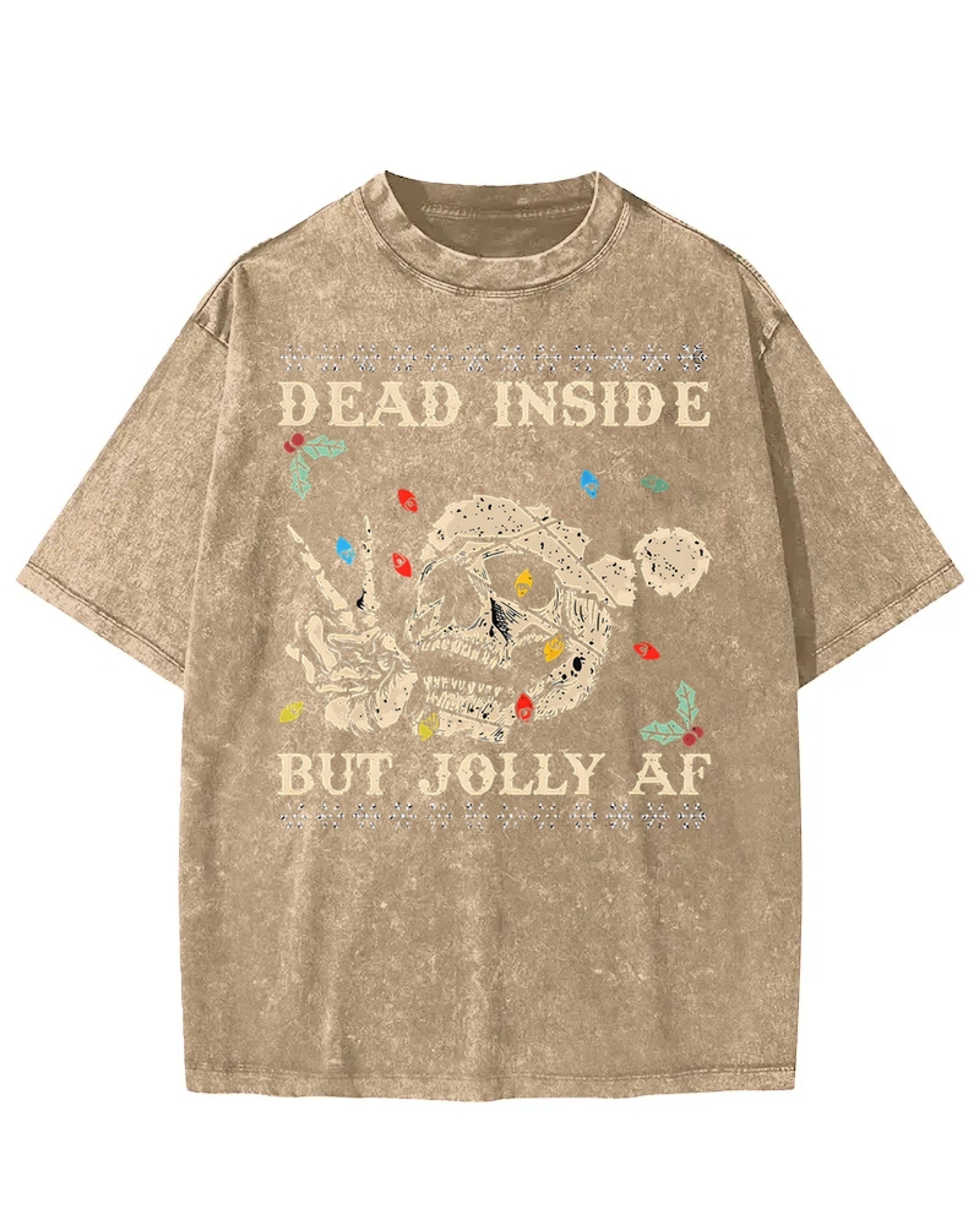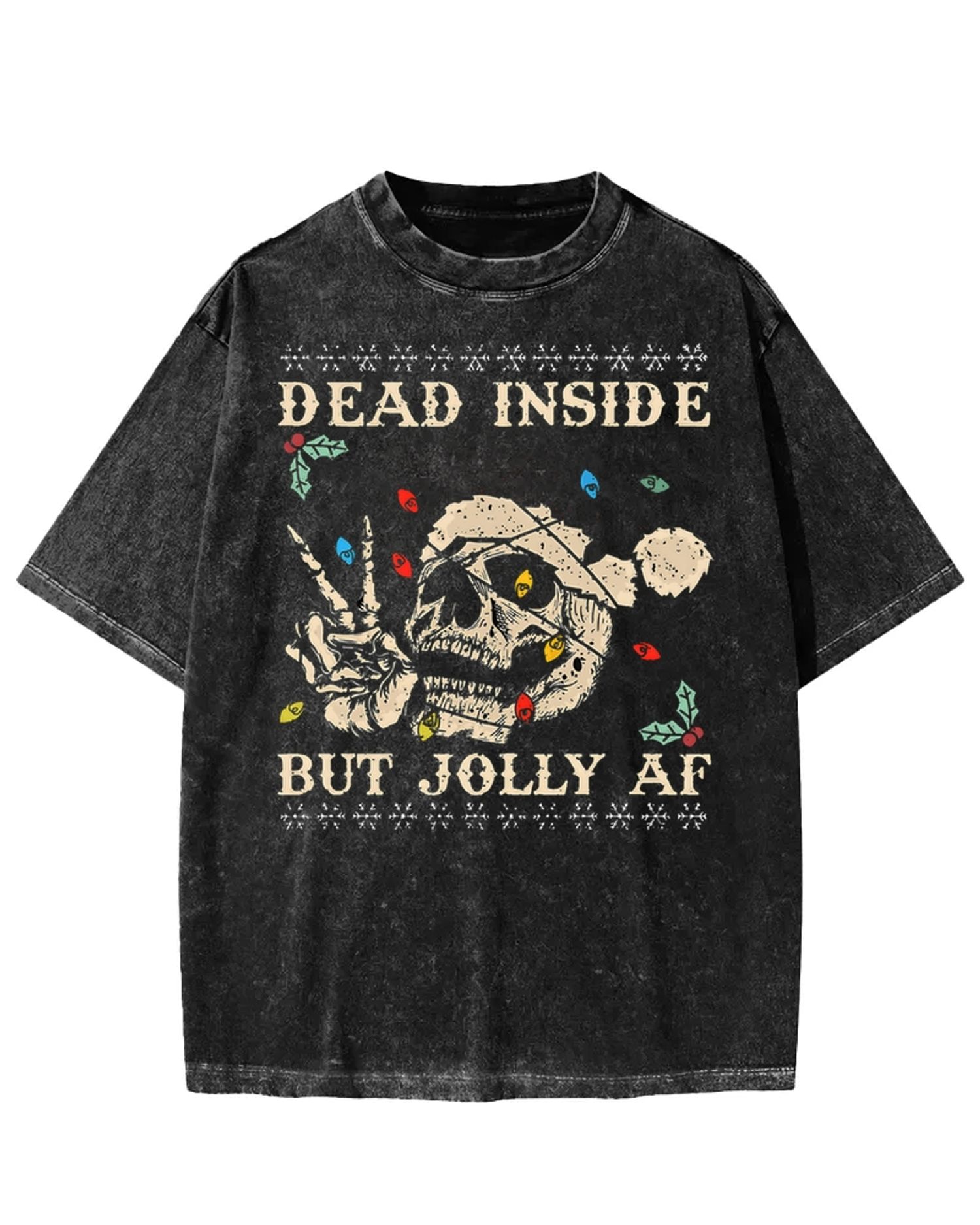 Festive Skull Dead inside but Jolly af Washed T-Shirt