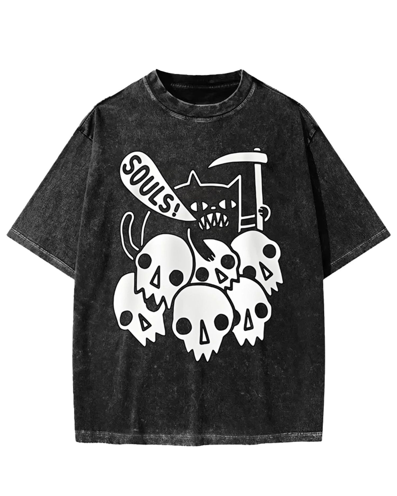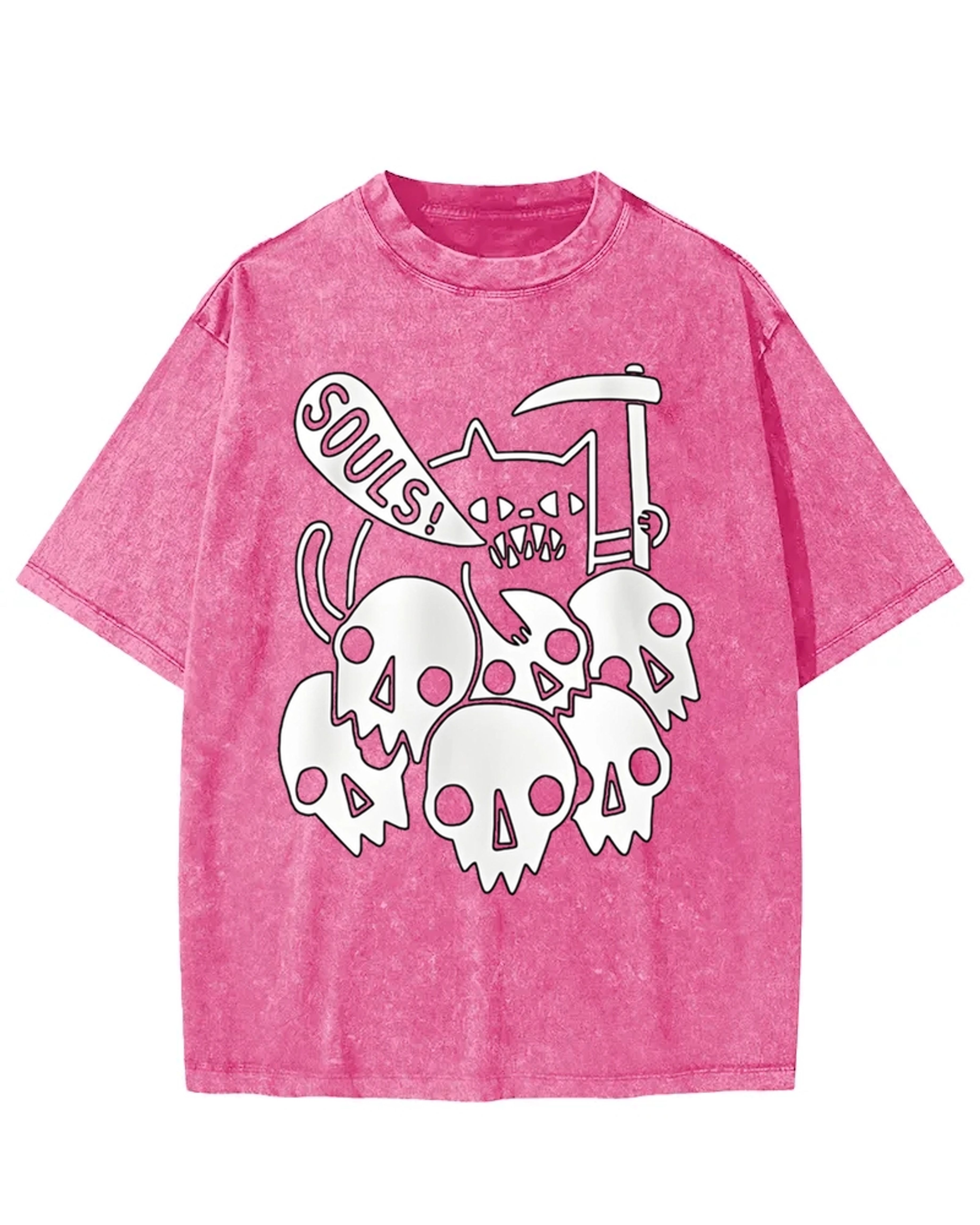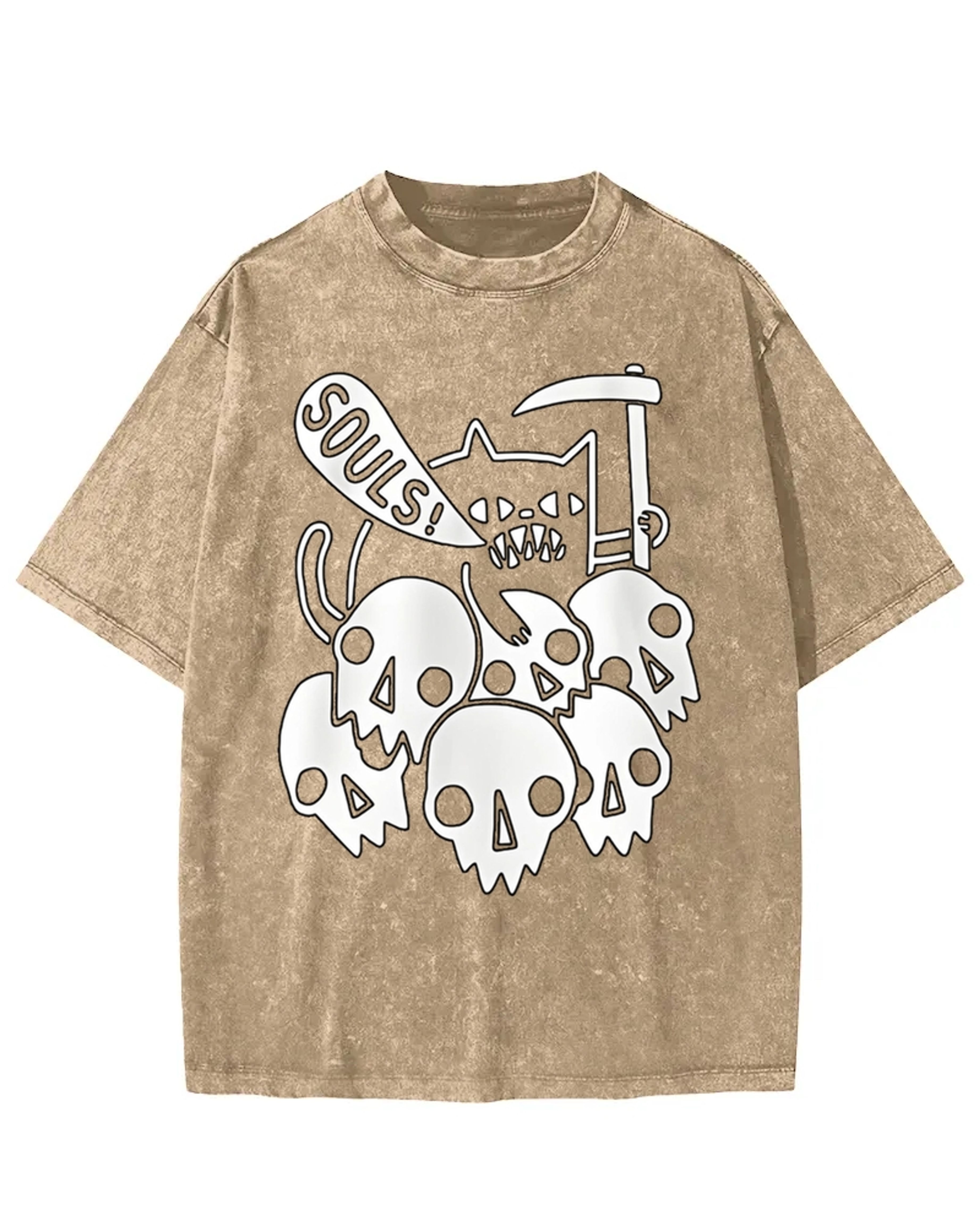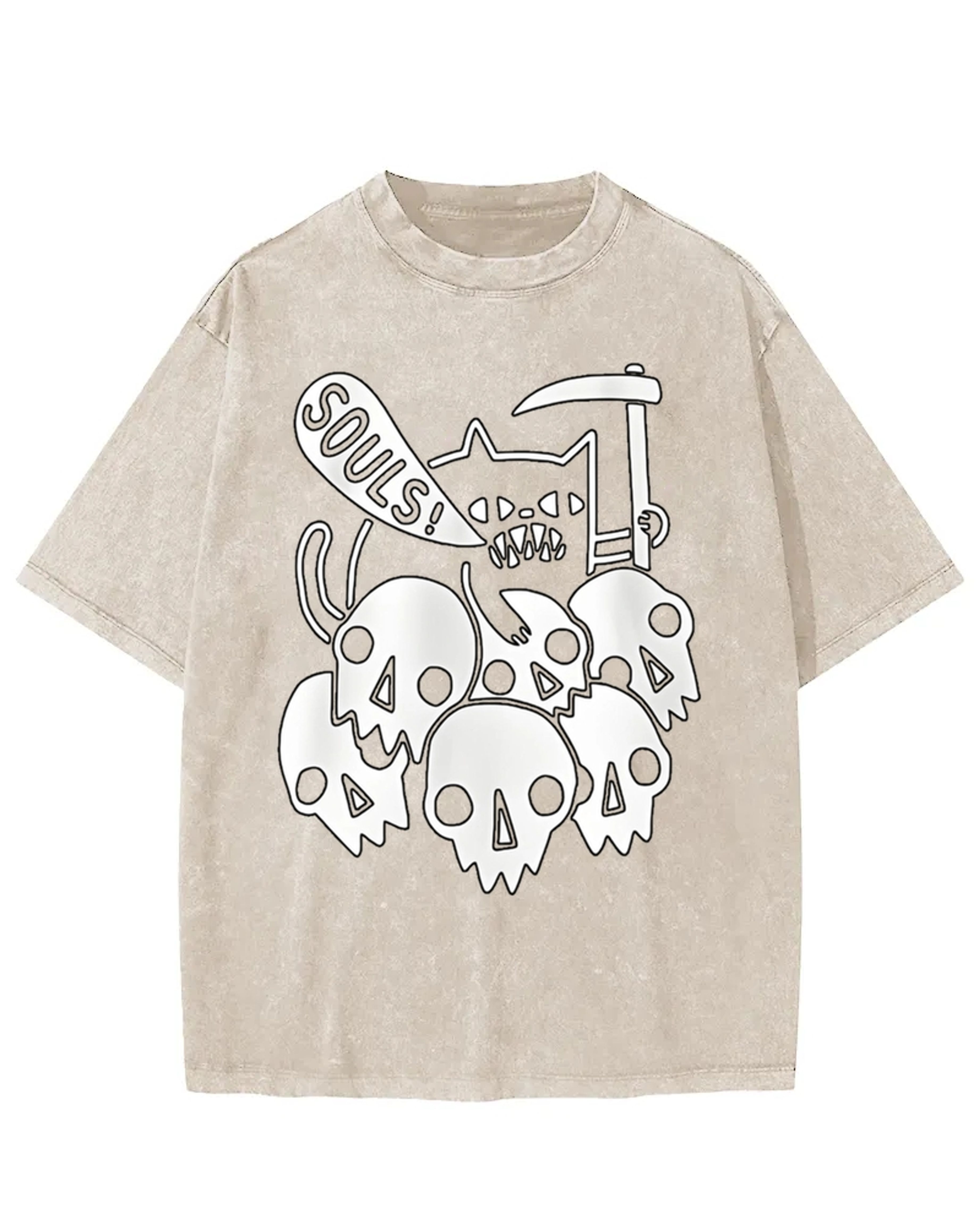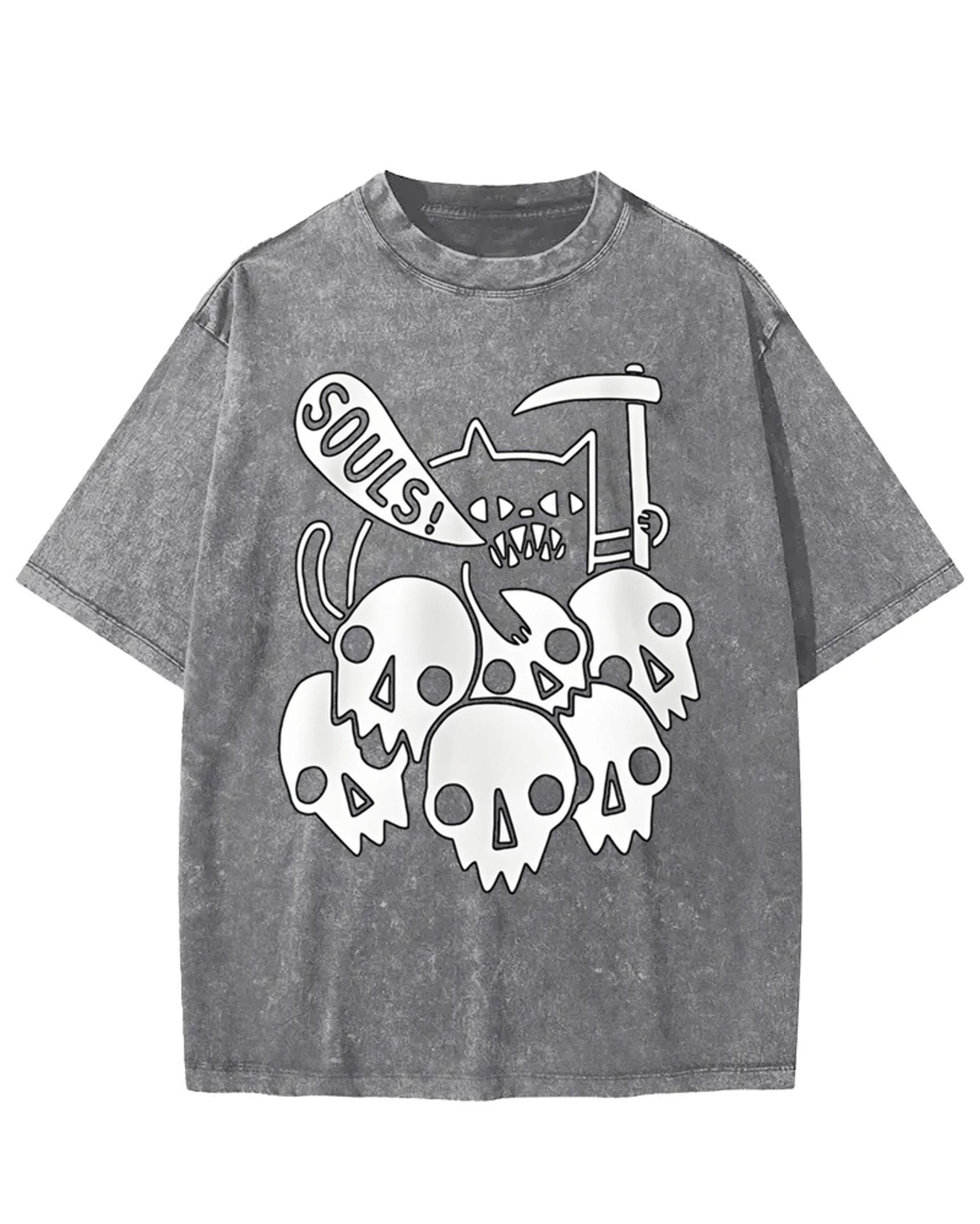 Fiendish Cat SOULS Skull Pile Washed T-Shirt