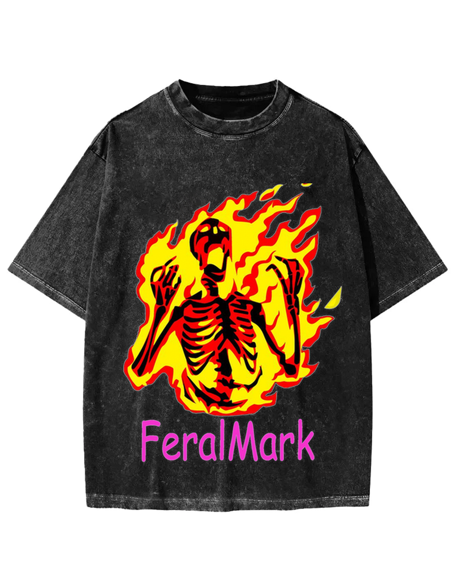 Flaming Skeleton Graphic FeralMark Washed T-shirt