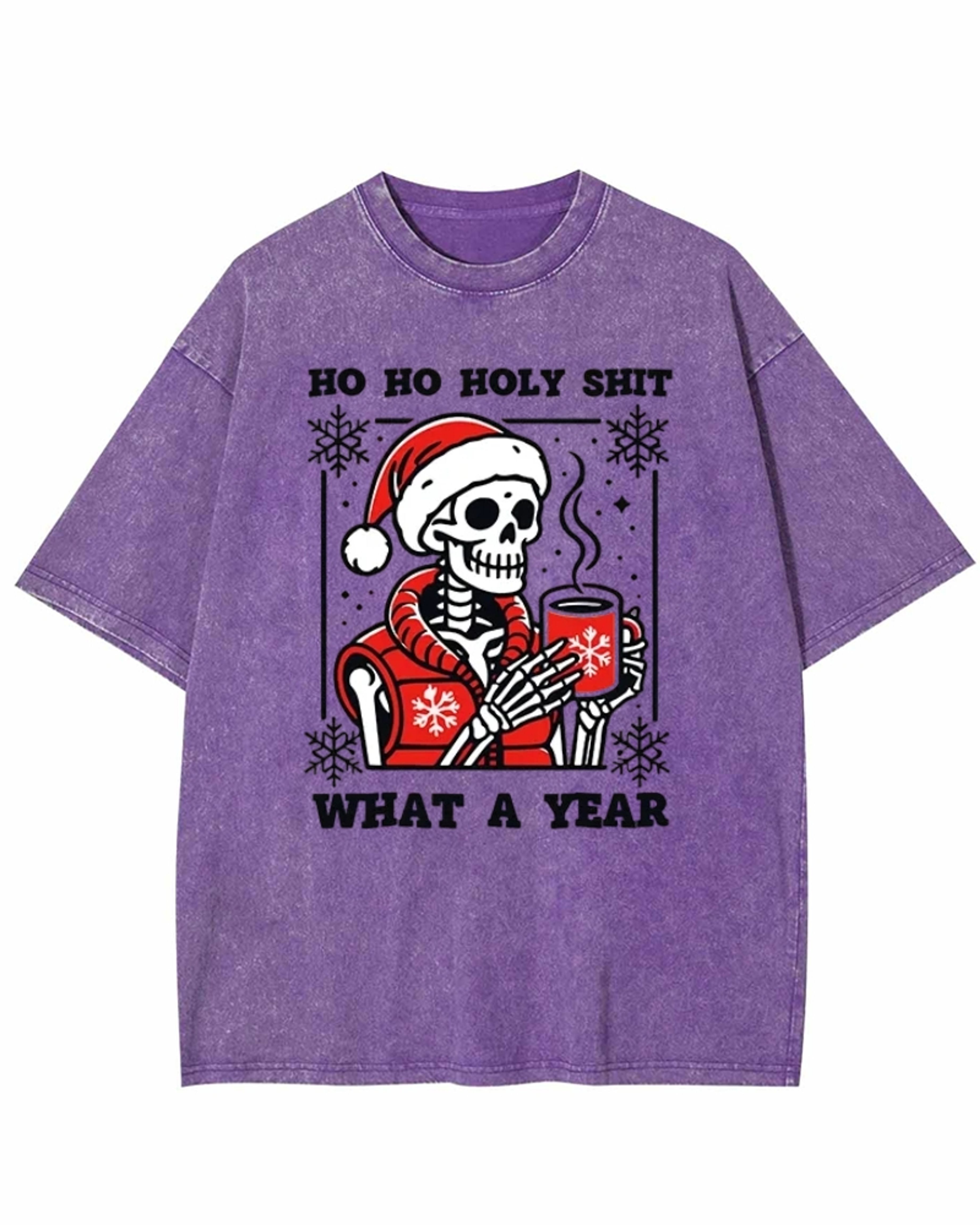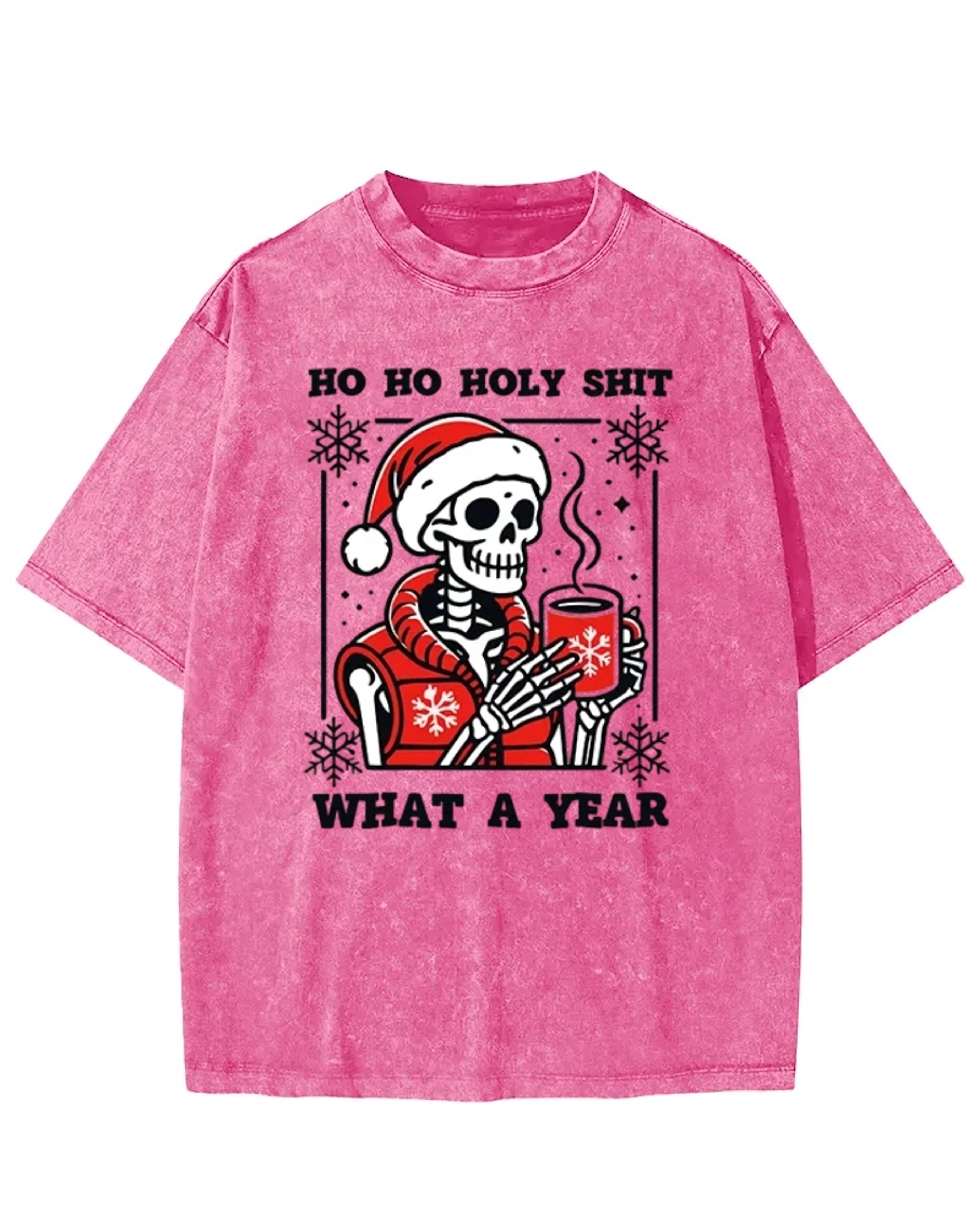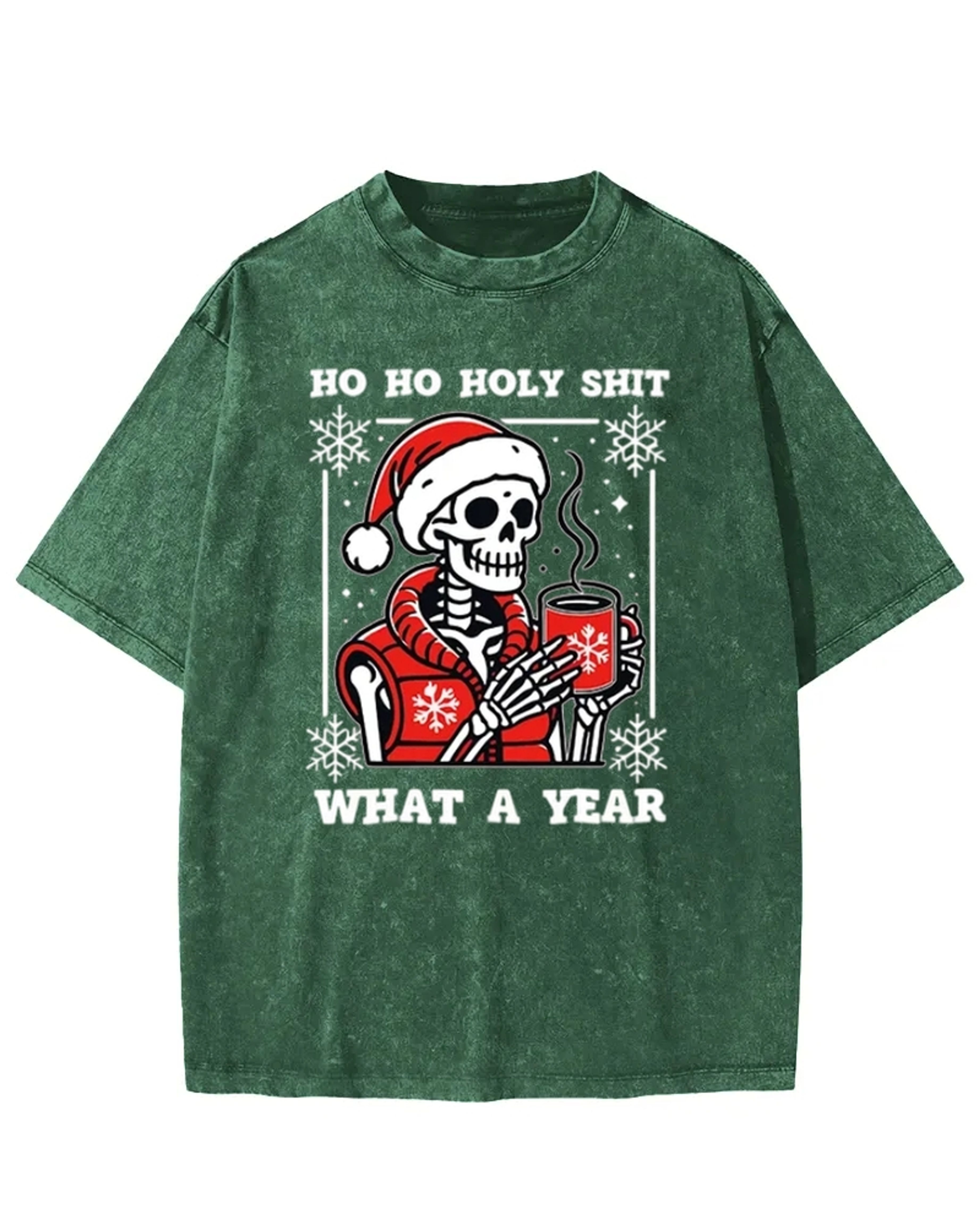 Ho Ho Holy Shit Santa Skull Washed T-Shirt