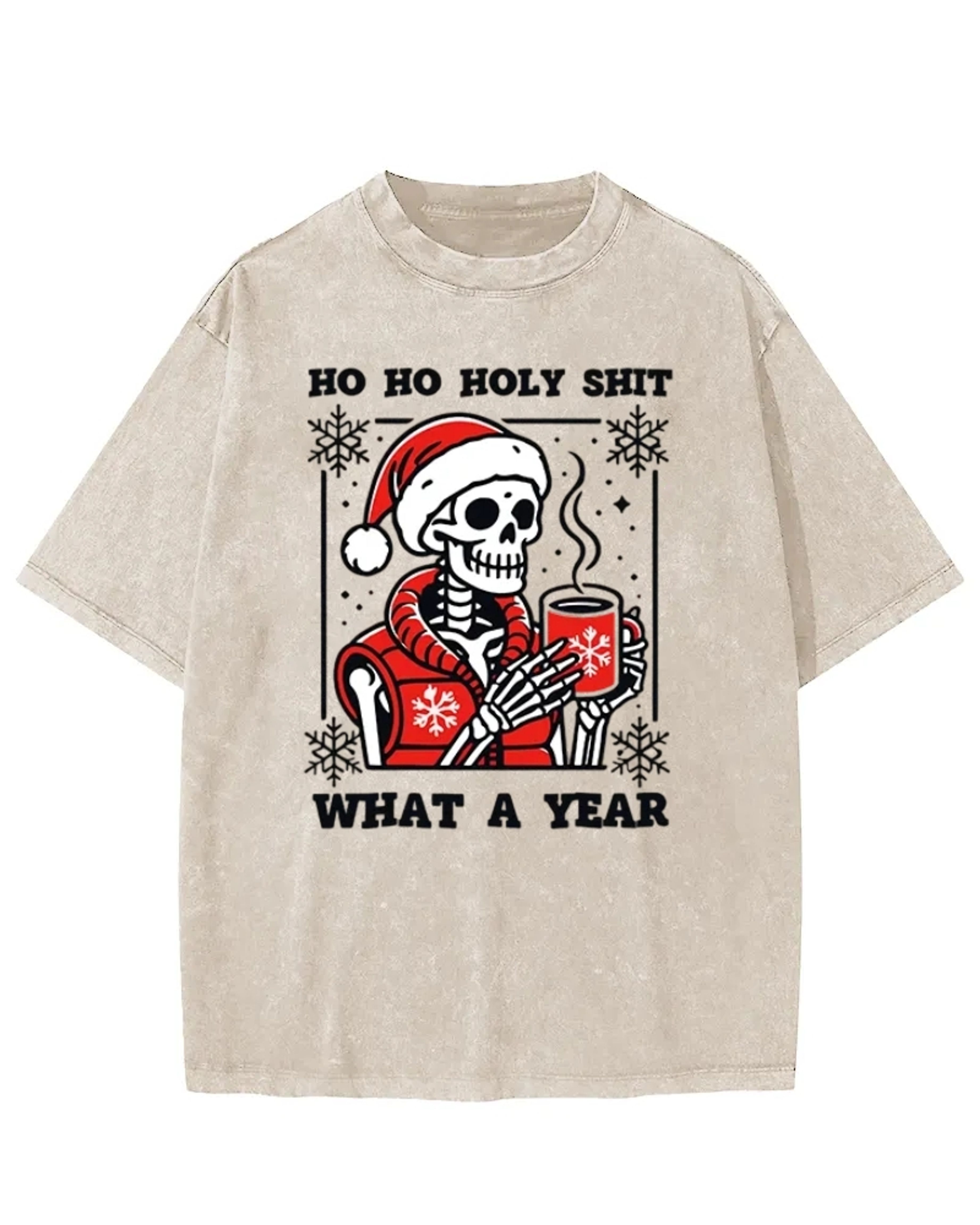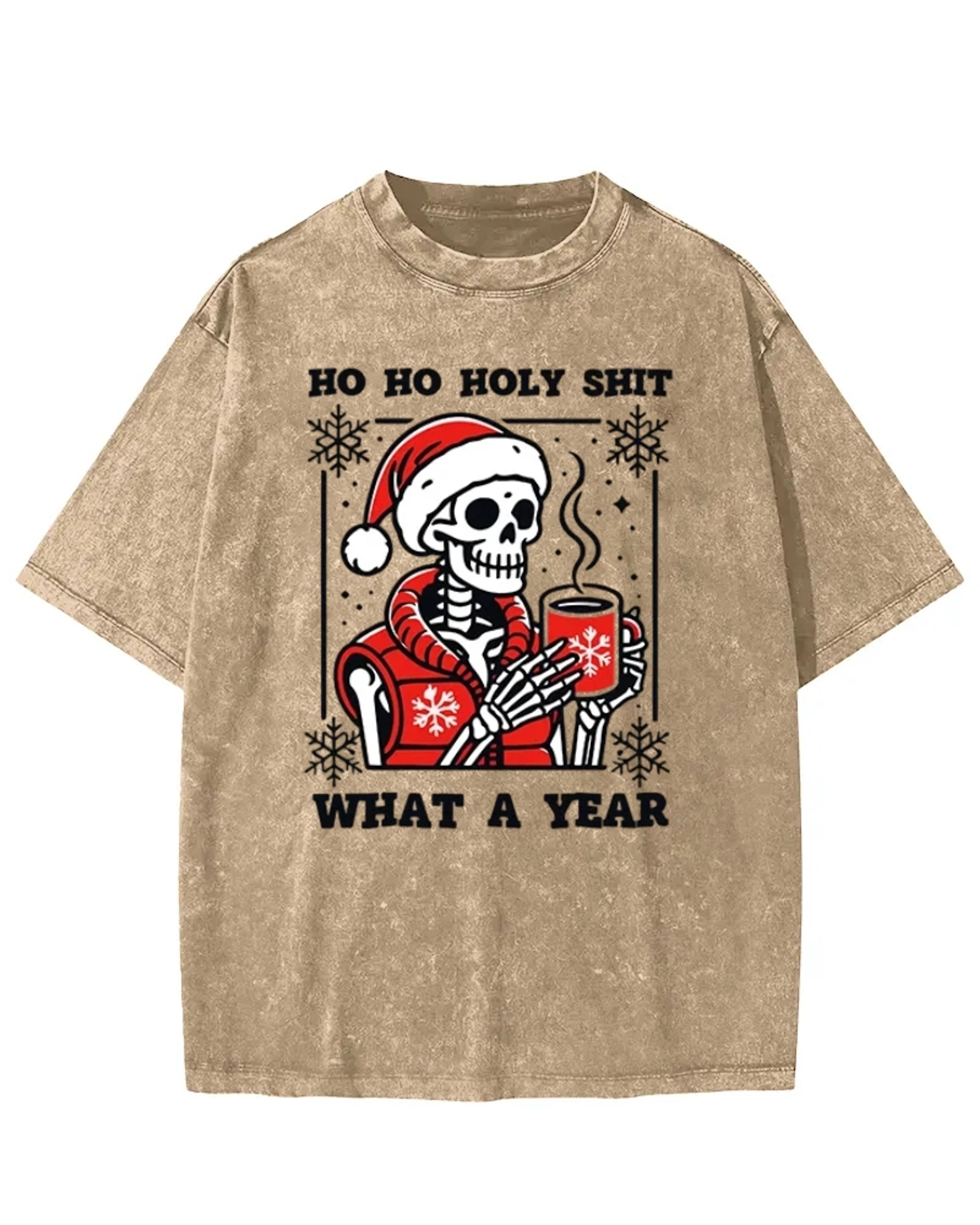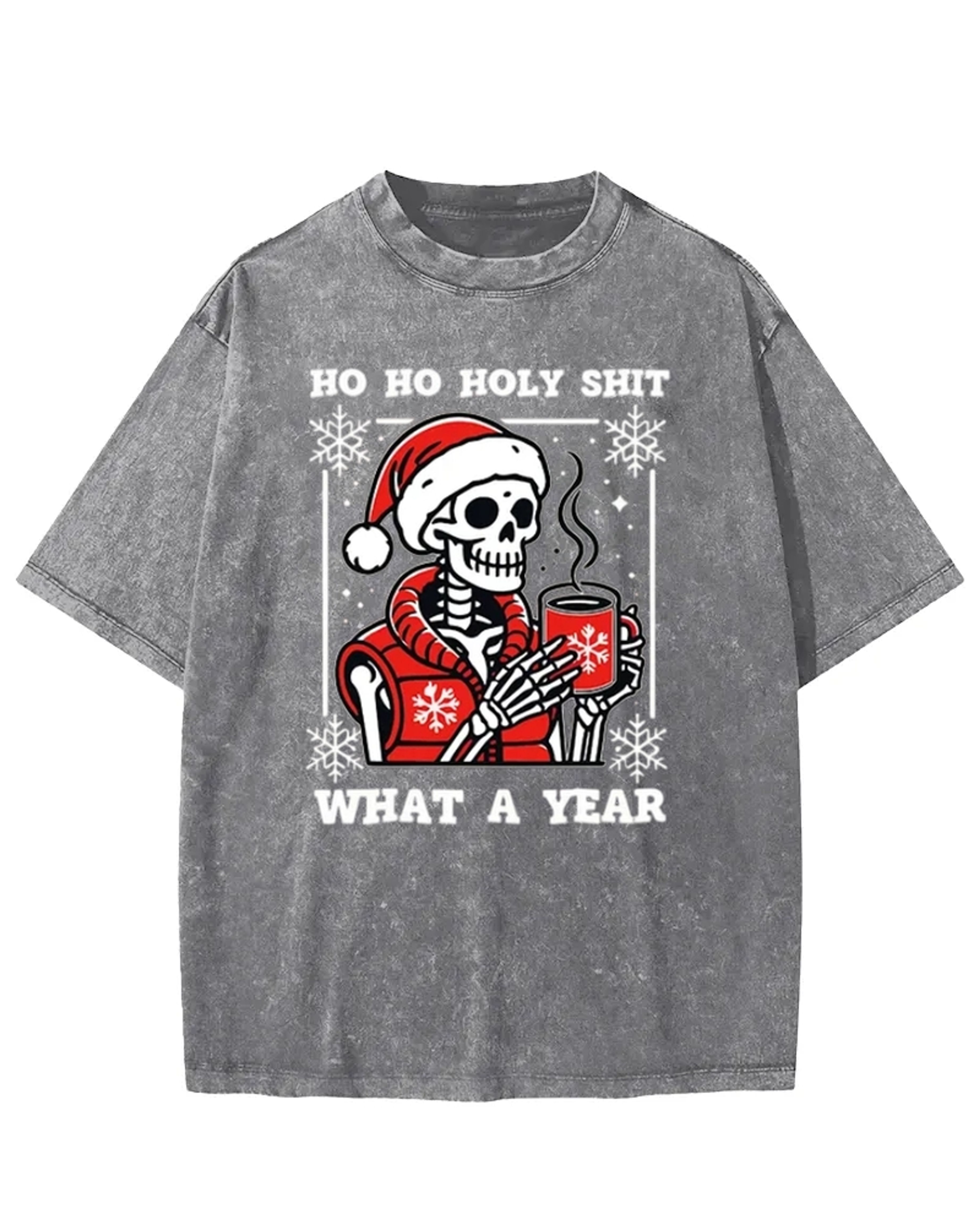 Ho Ho Holy Shit Santa Skull Washed T-Shirt
