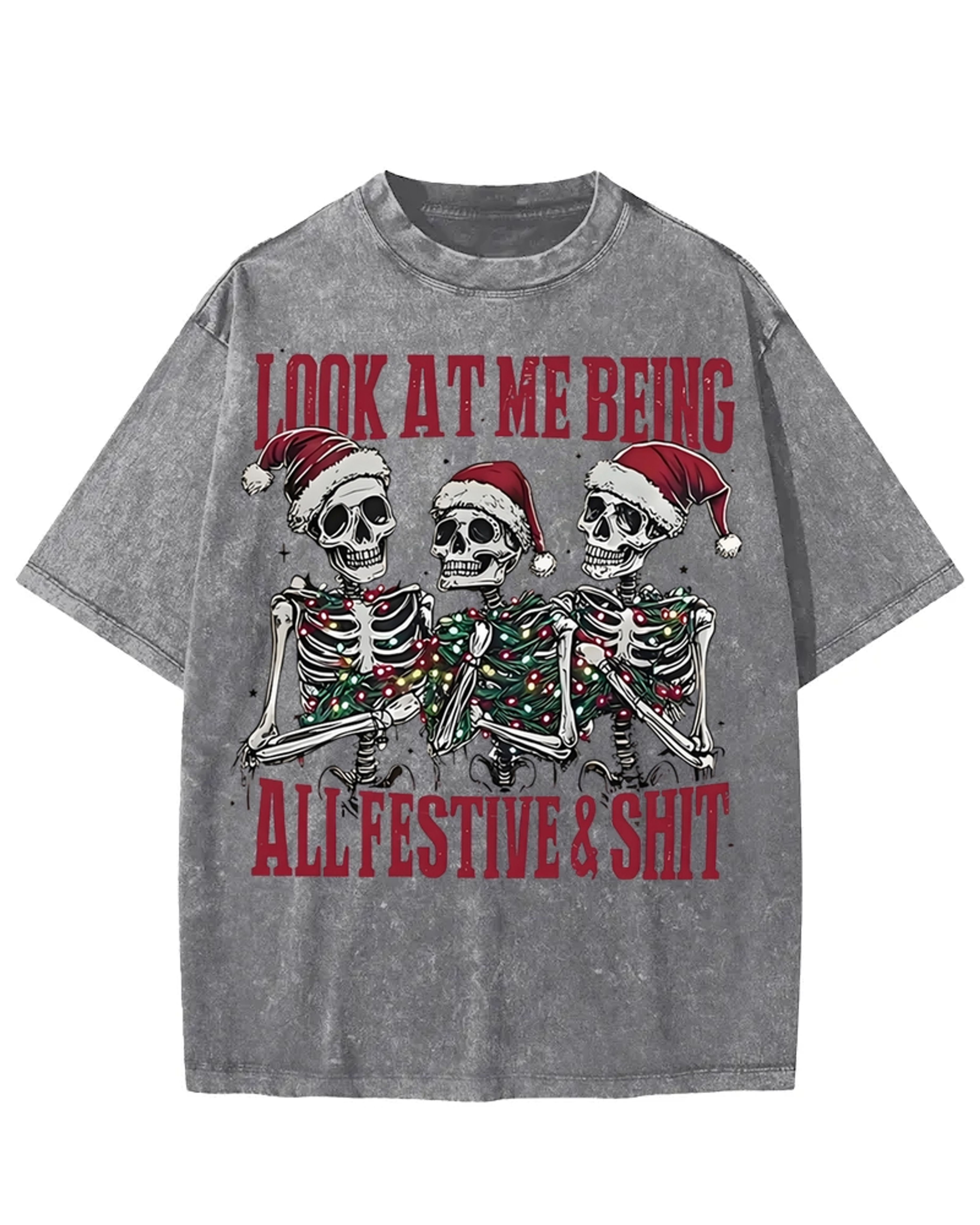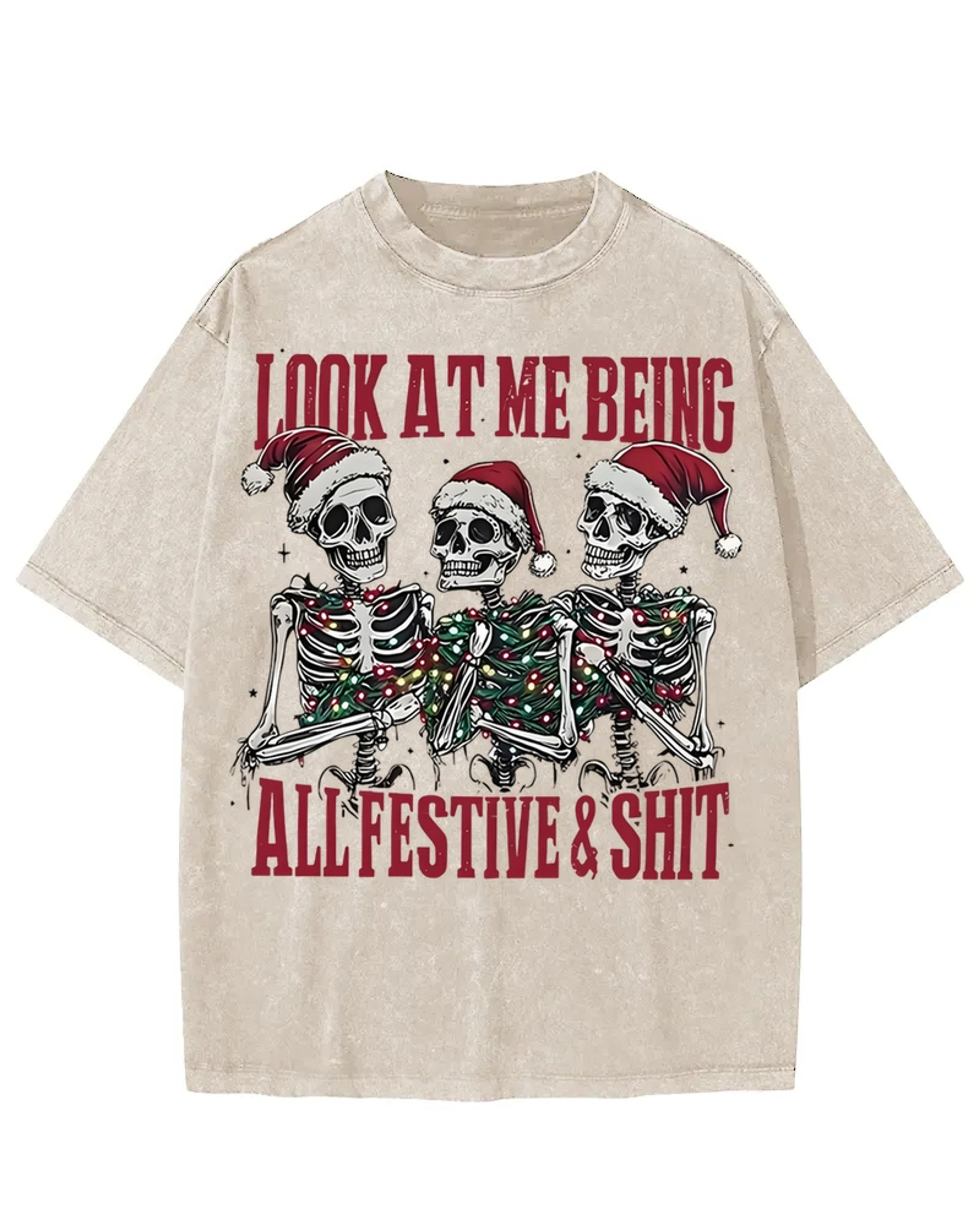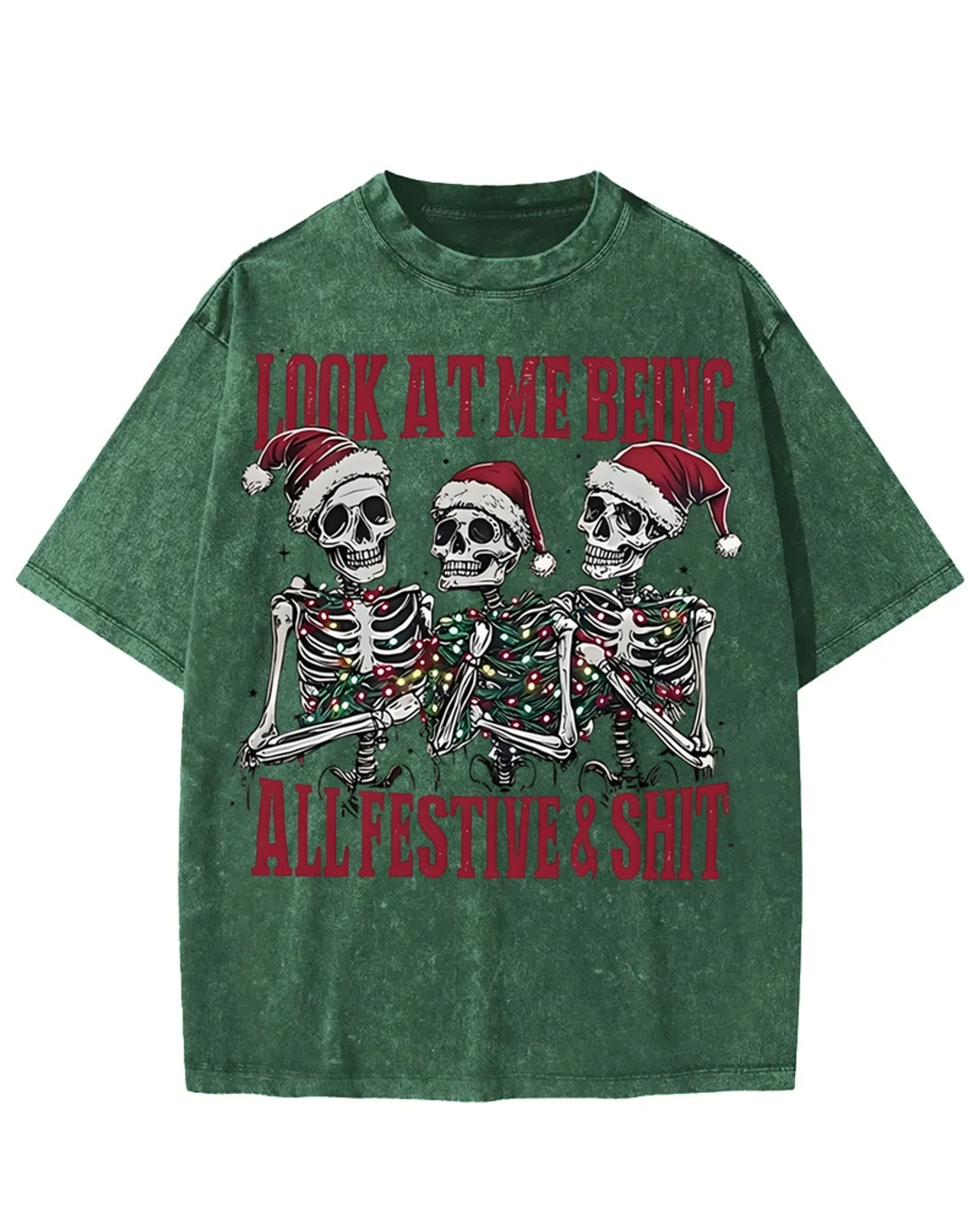 Look At Me Being All Festive Skull Christmas Washed T-shirt
