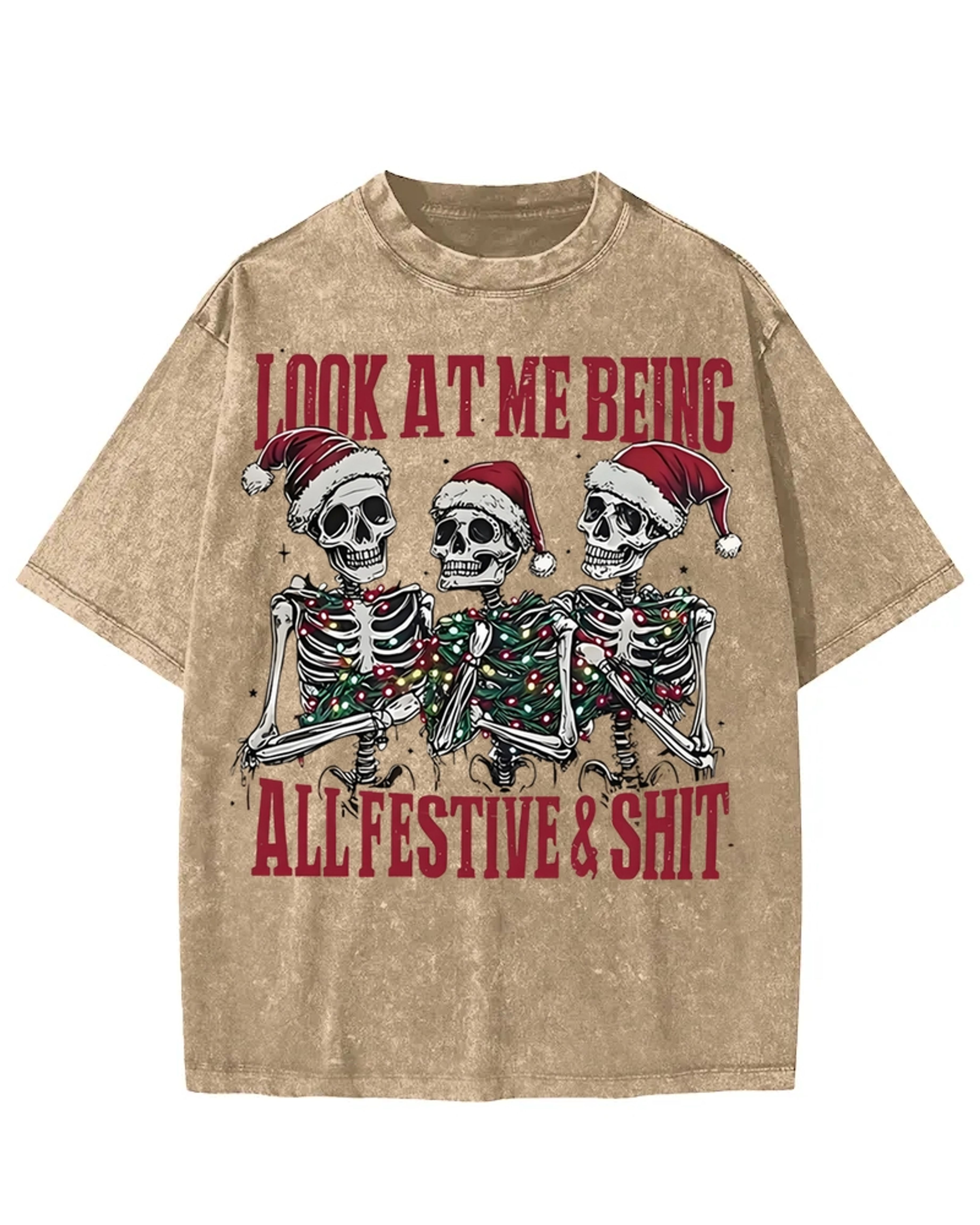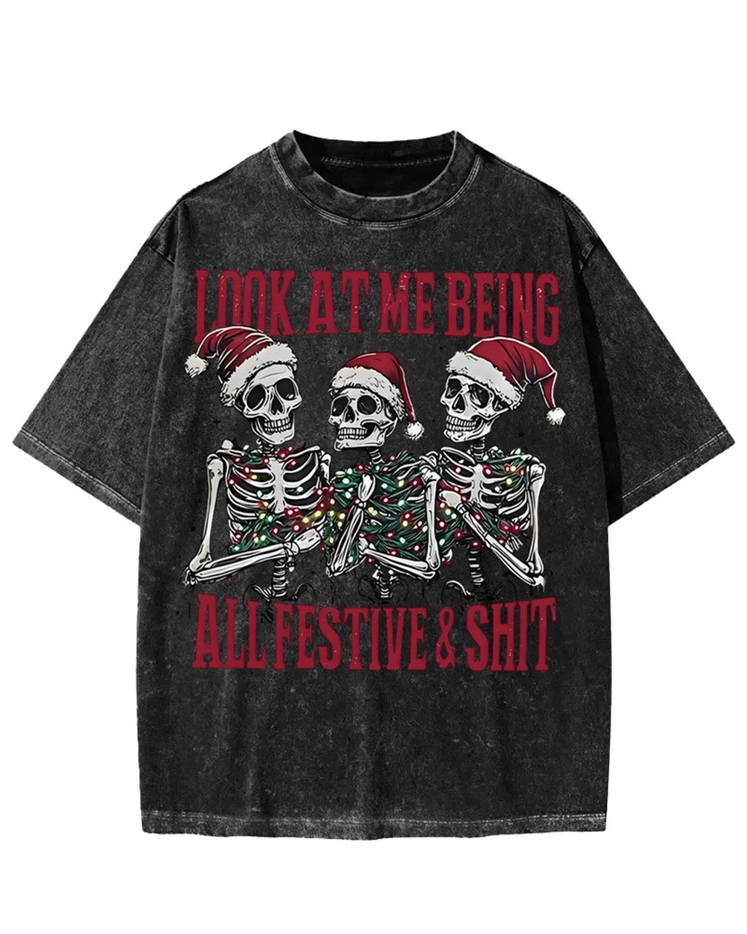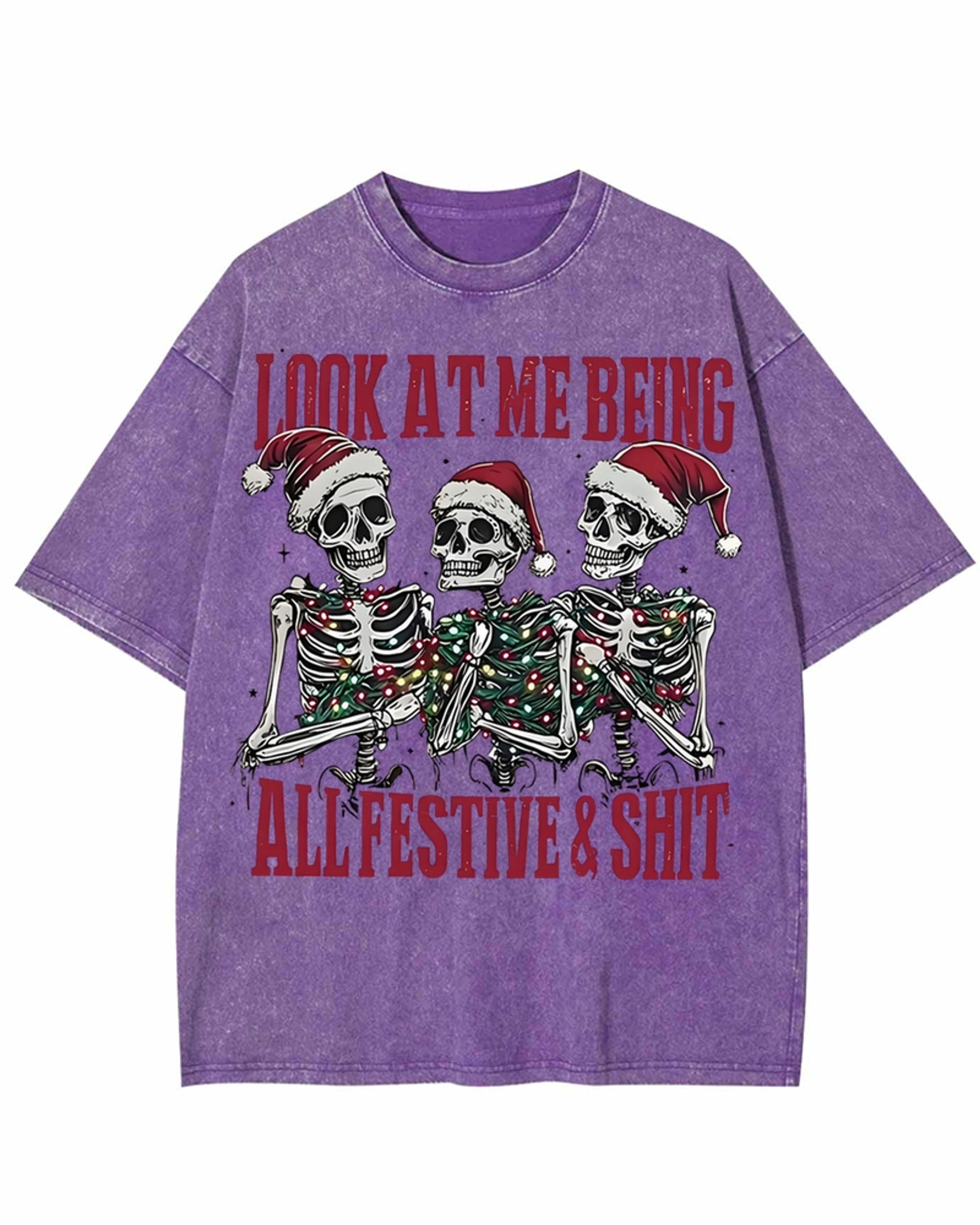 Look At Me Being All Festive Skull Christmas Washed T-shirt
