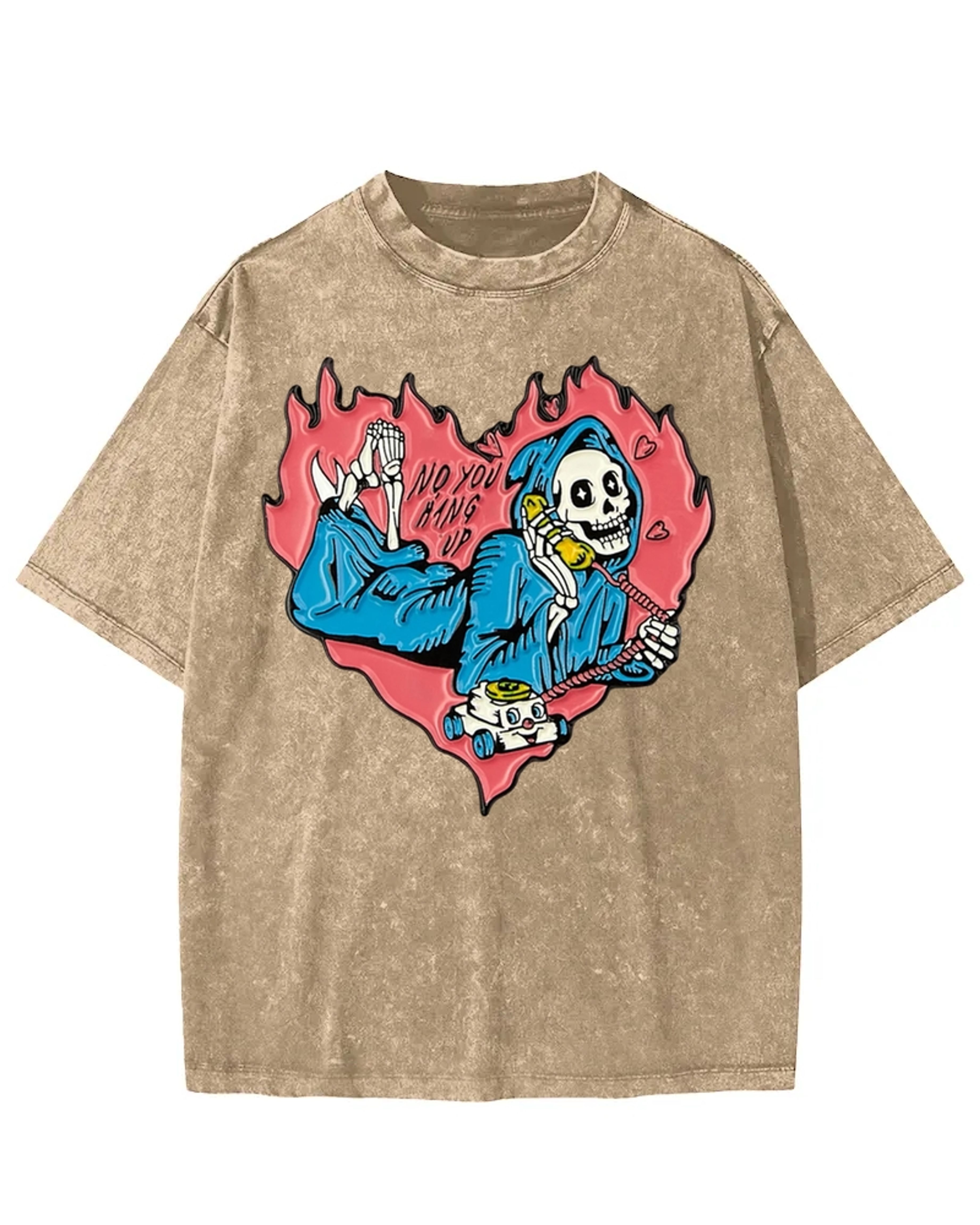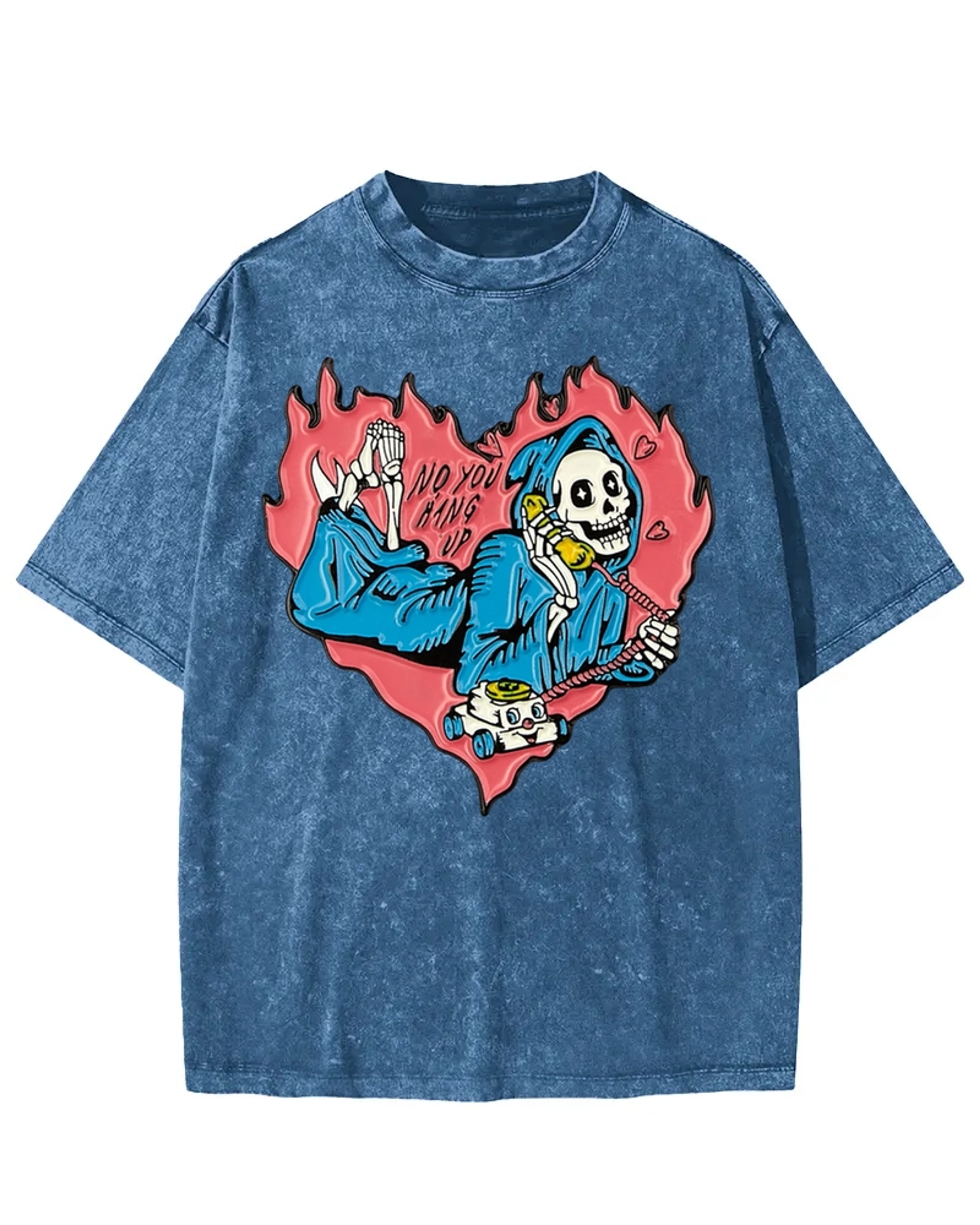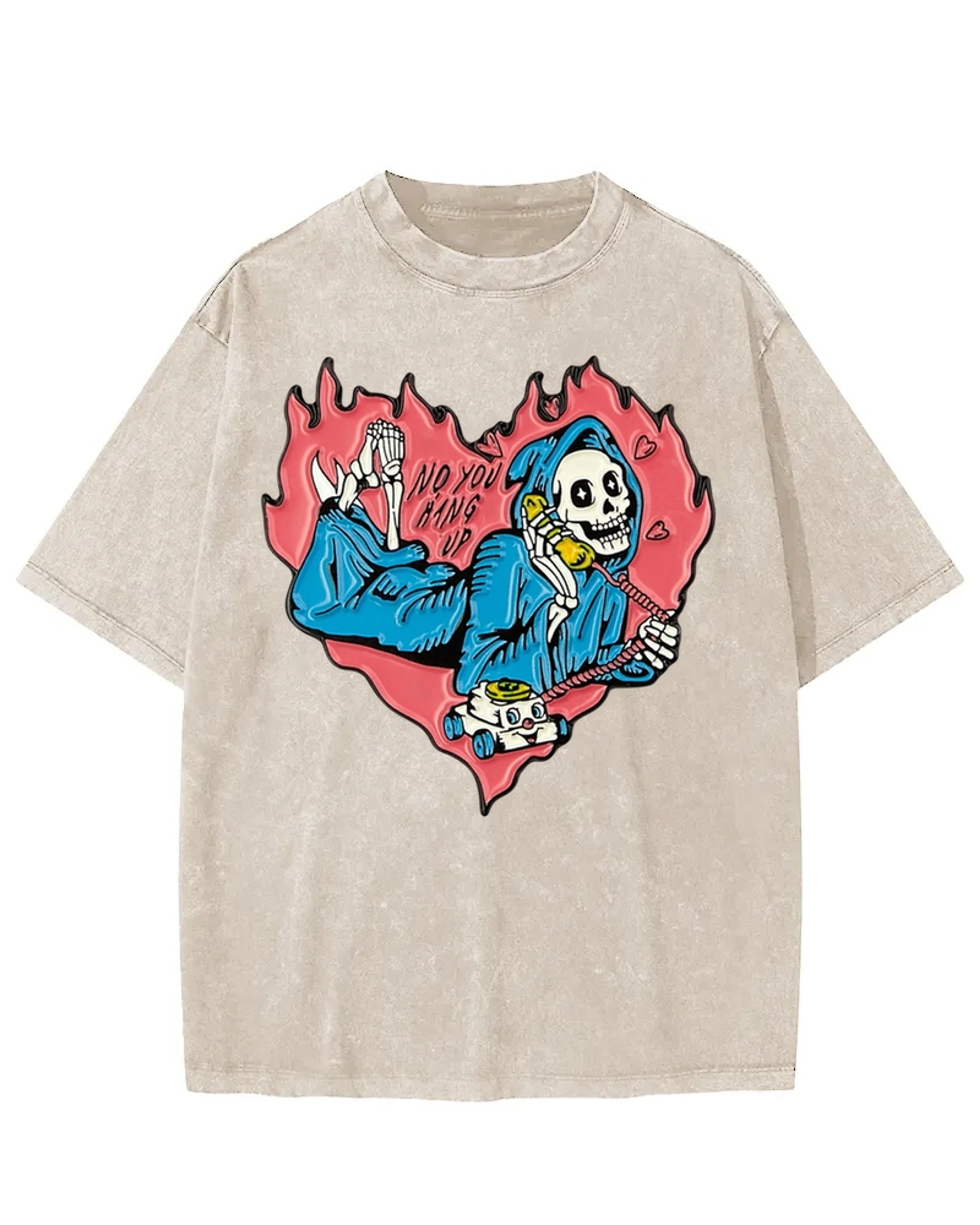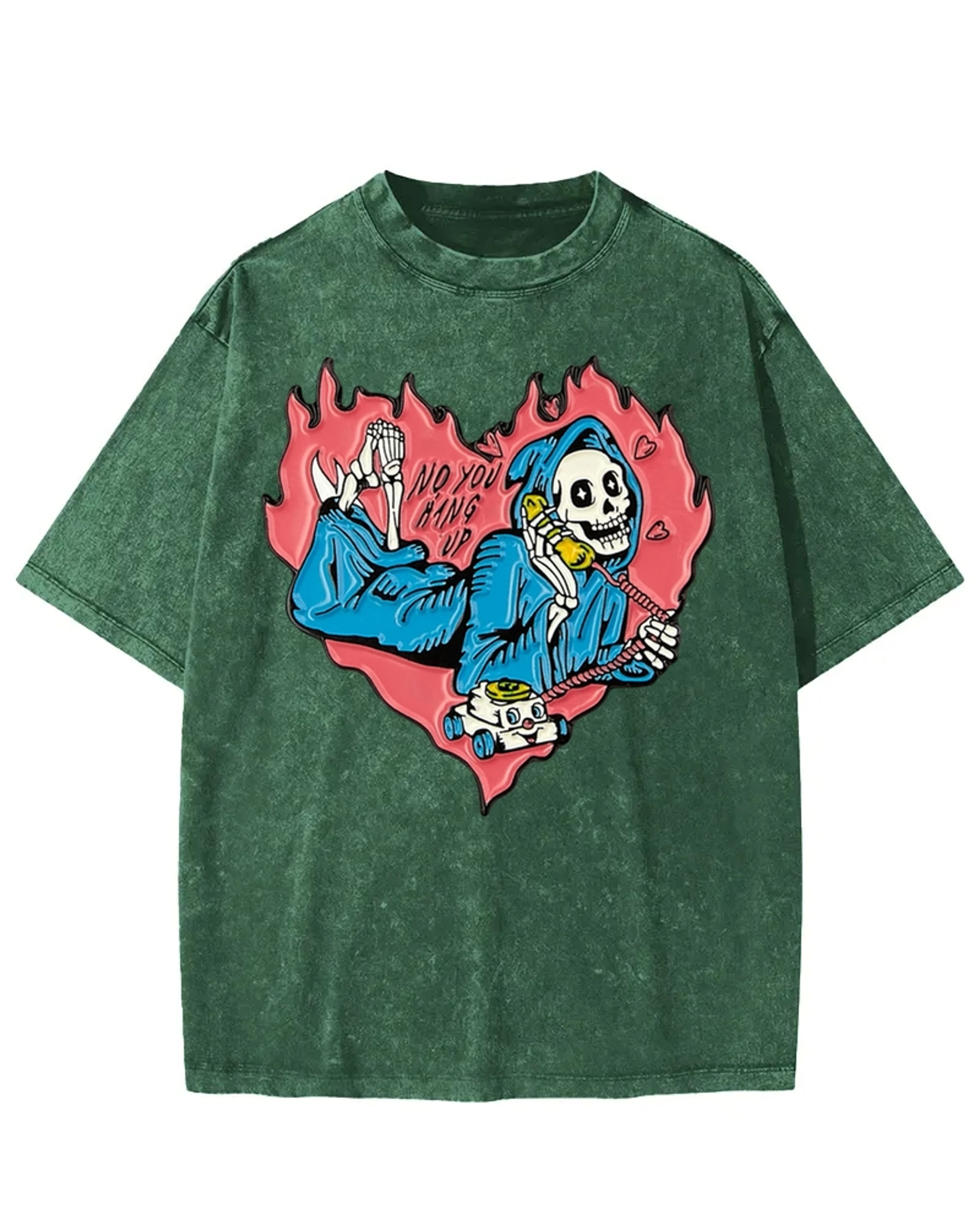No You Hang Up Skull In Flame Heart Washed T-Shirt