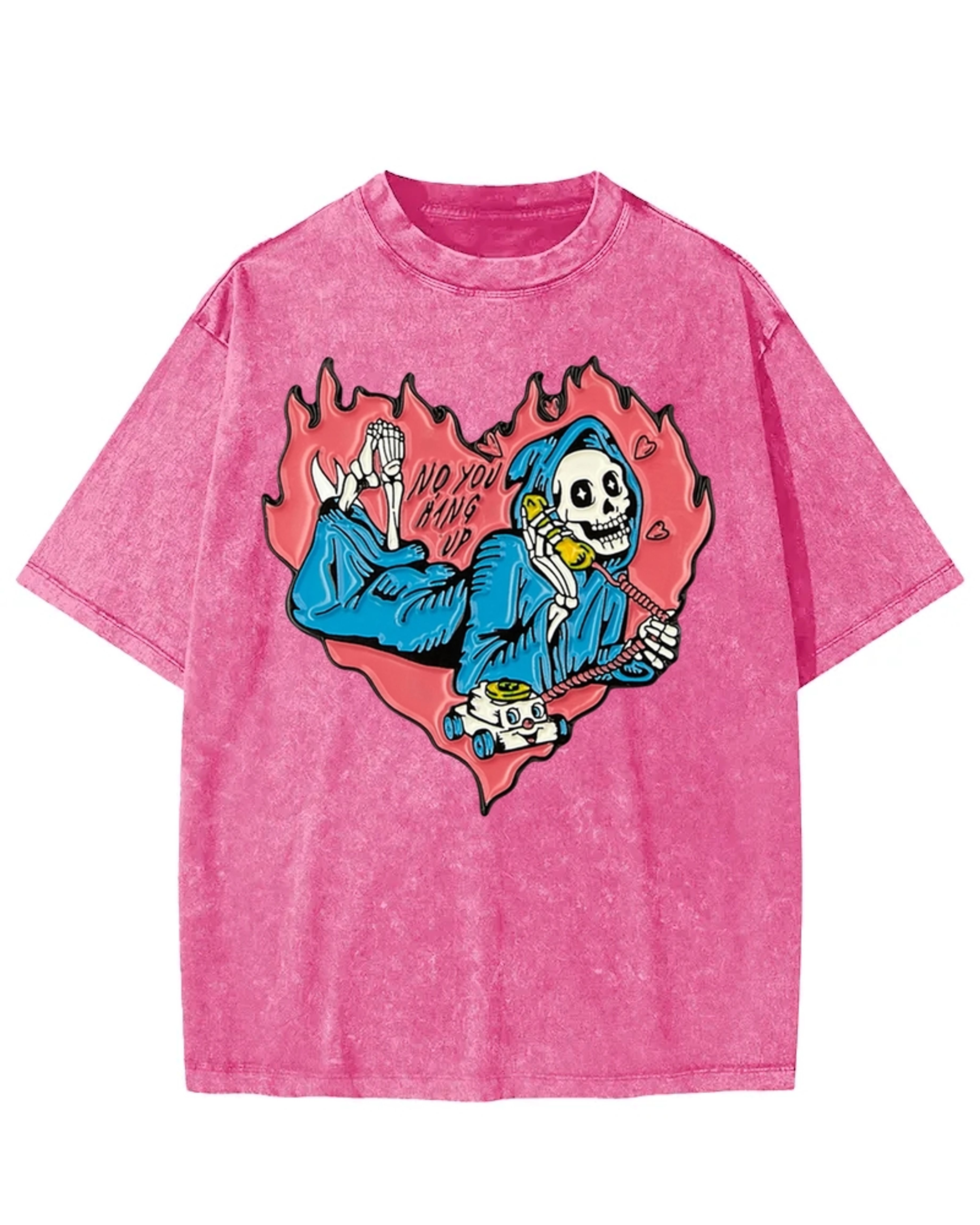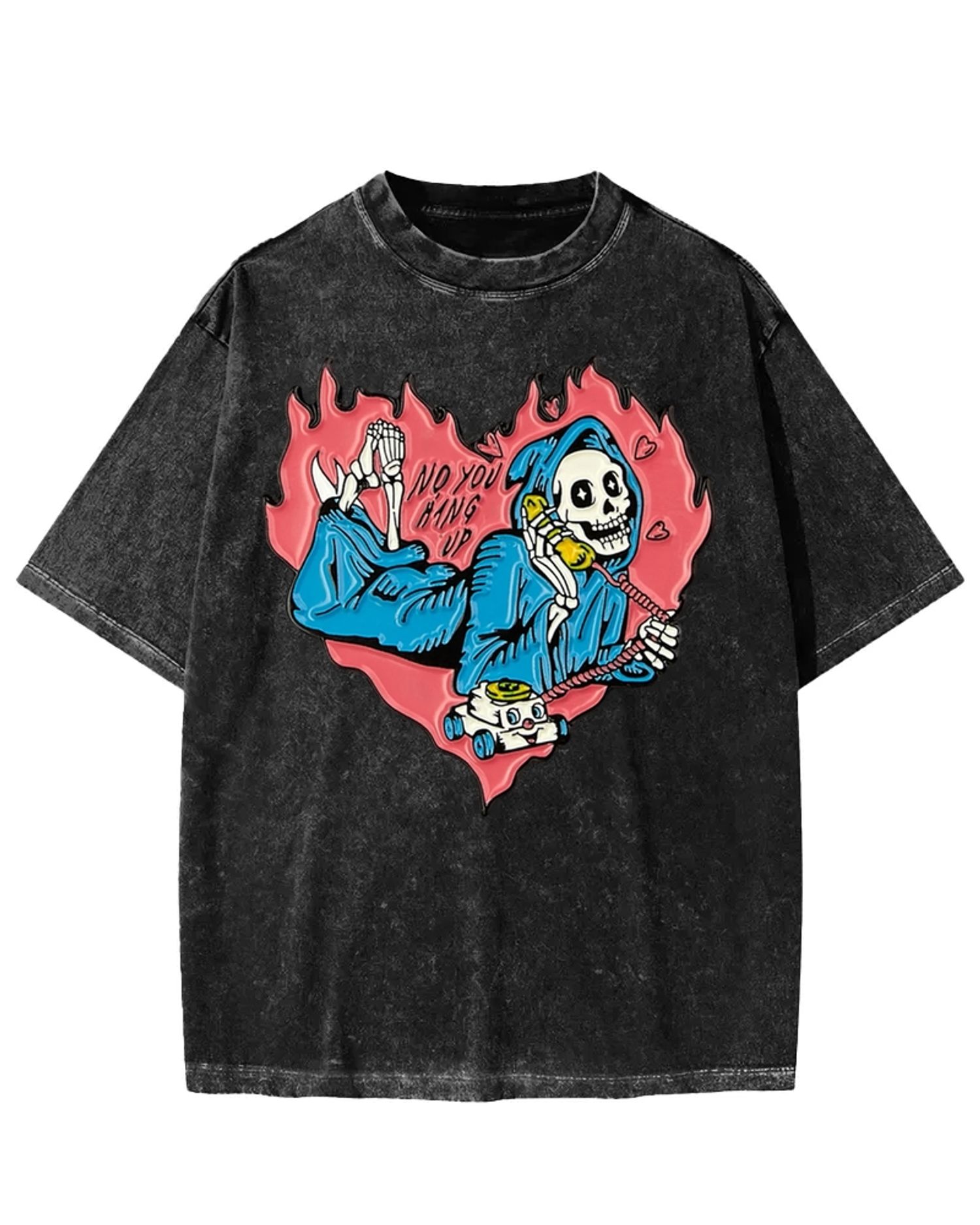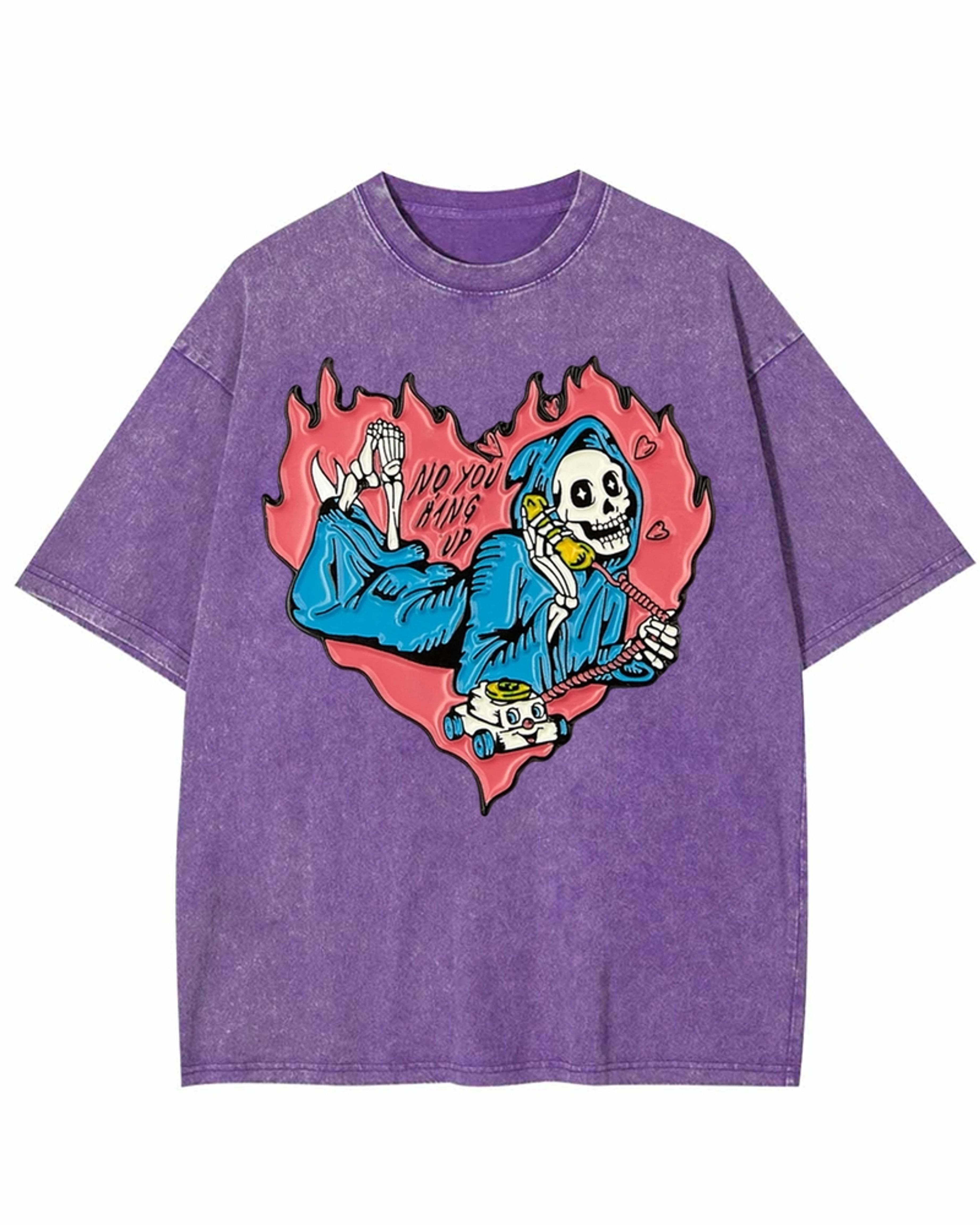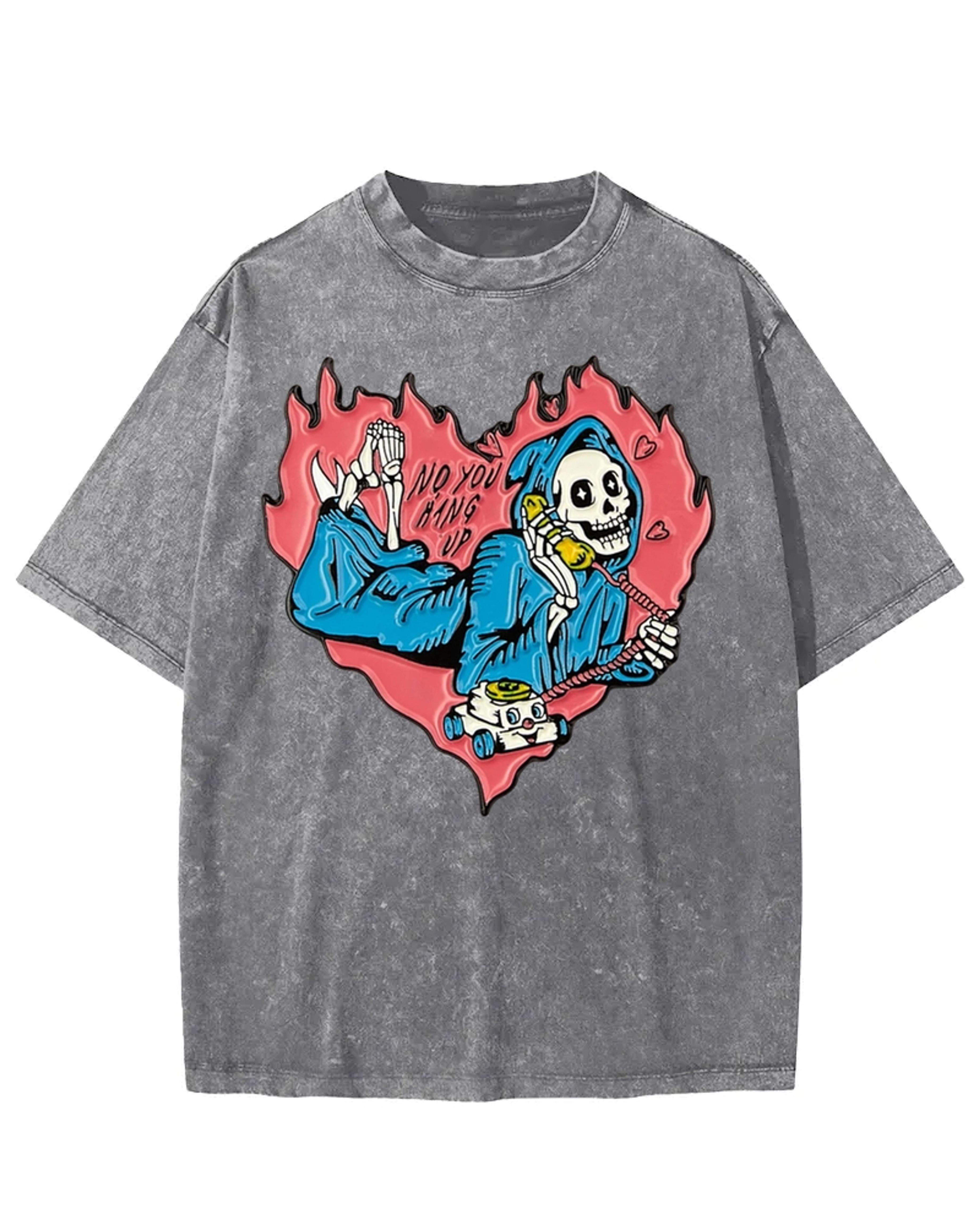 No You Hang Up Skull In Flame Heart Washed T-Shirt