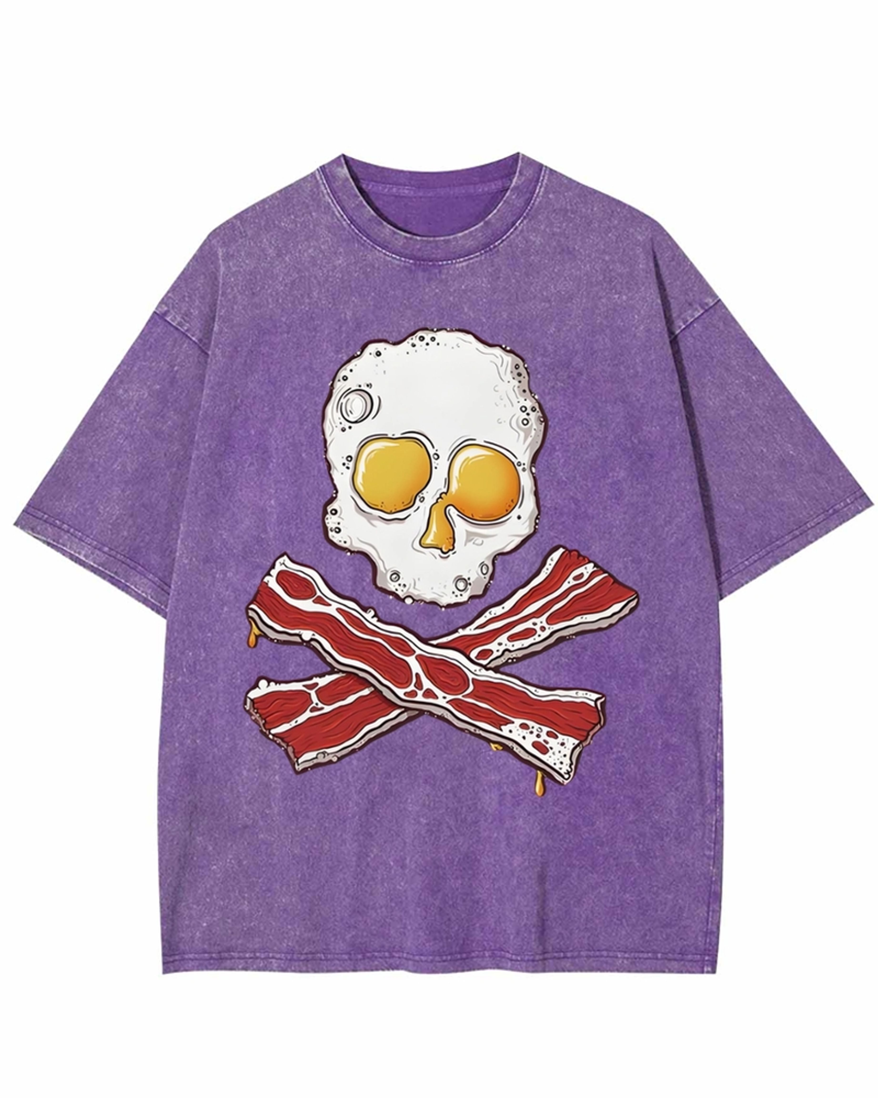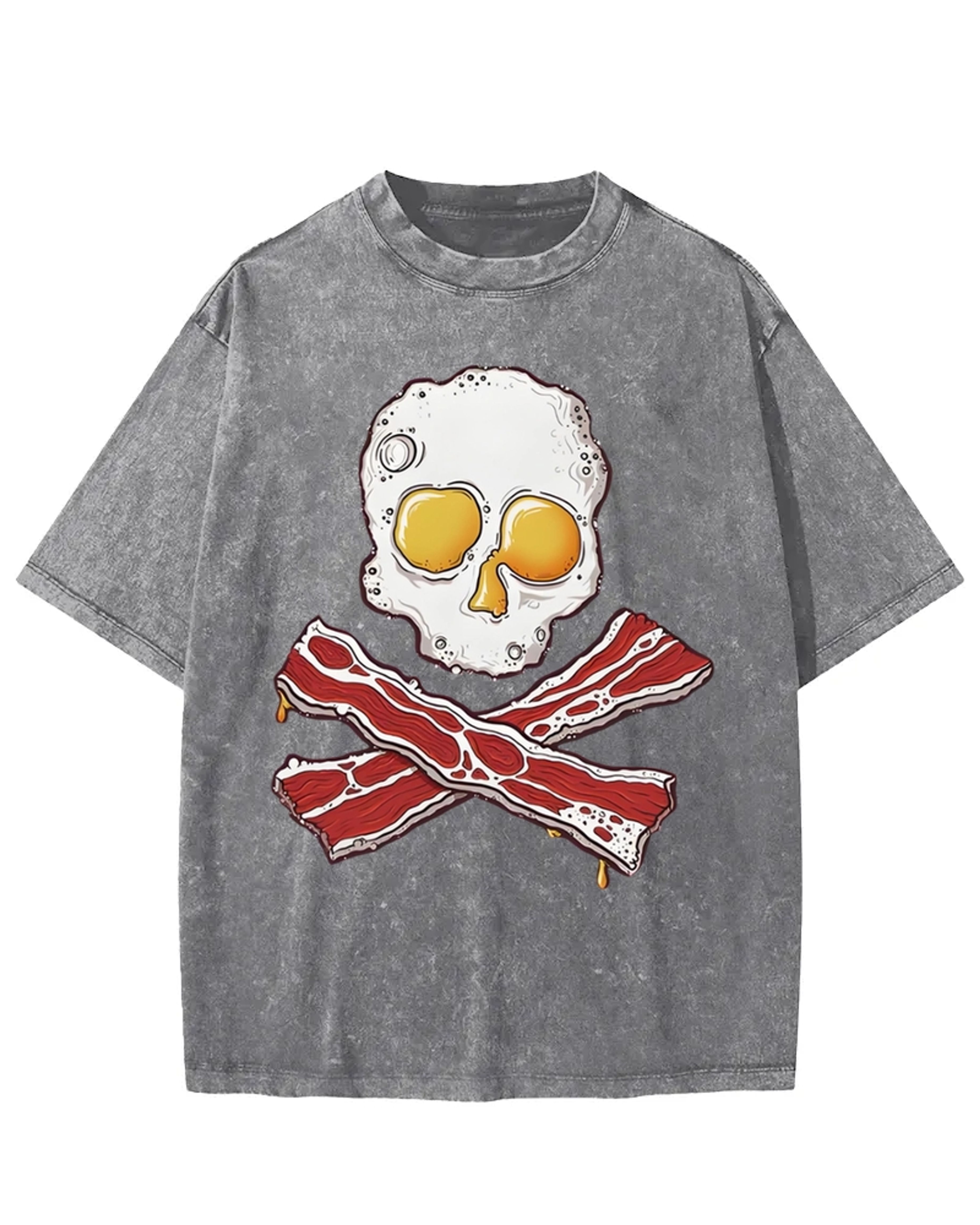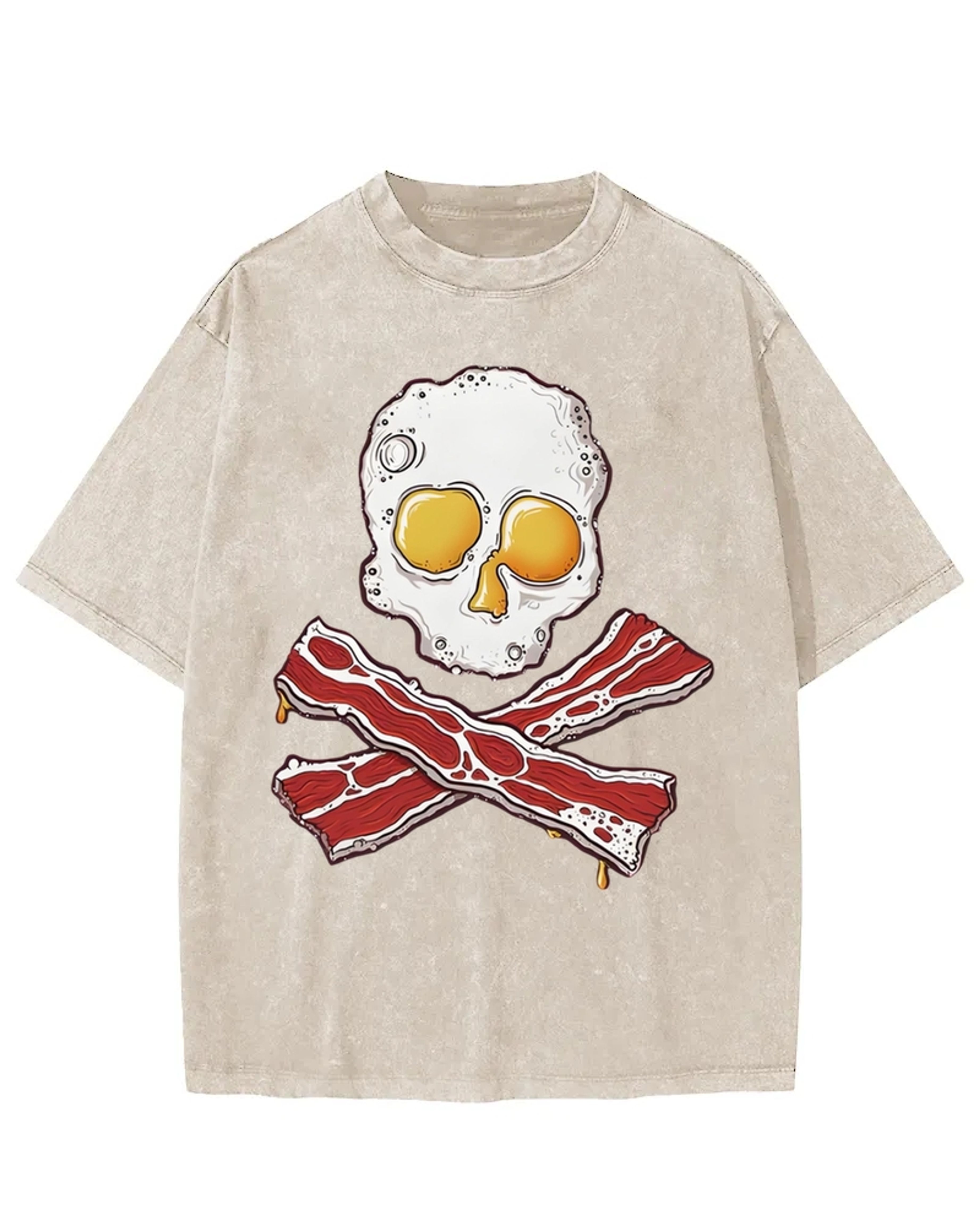 SkullStyle Food Humor Egg Skull & Bacon Crossbones Washed T-Shirt
