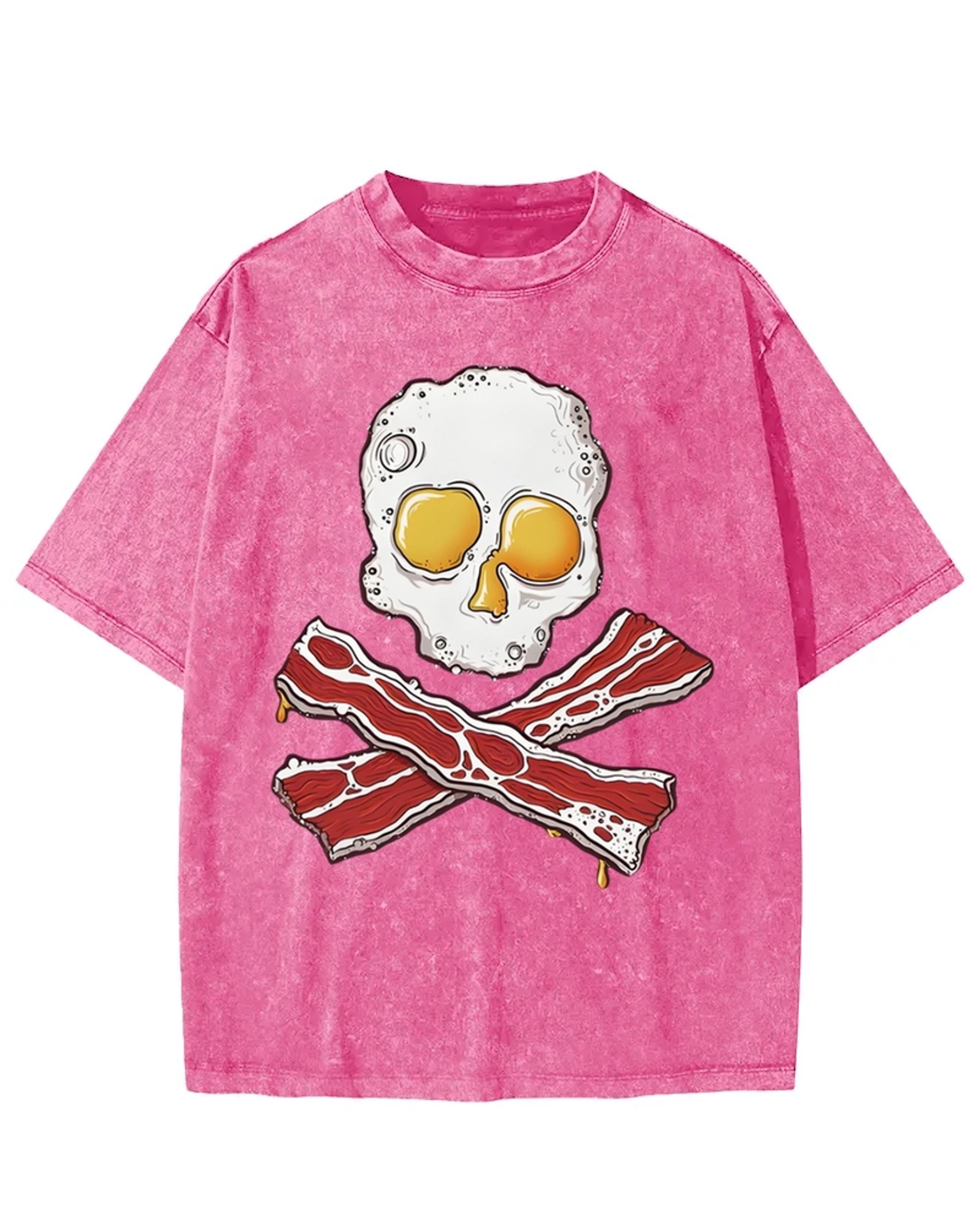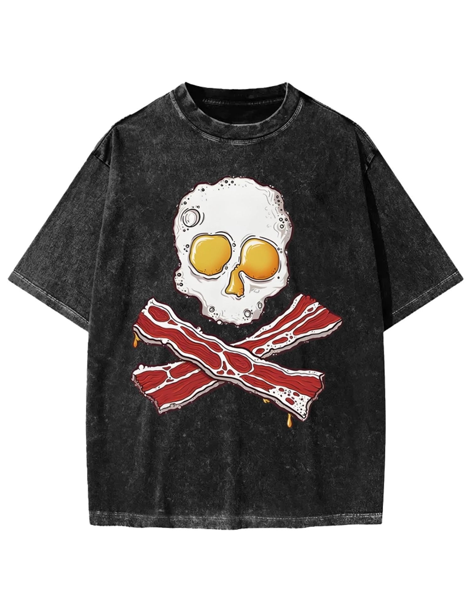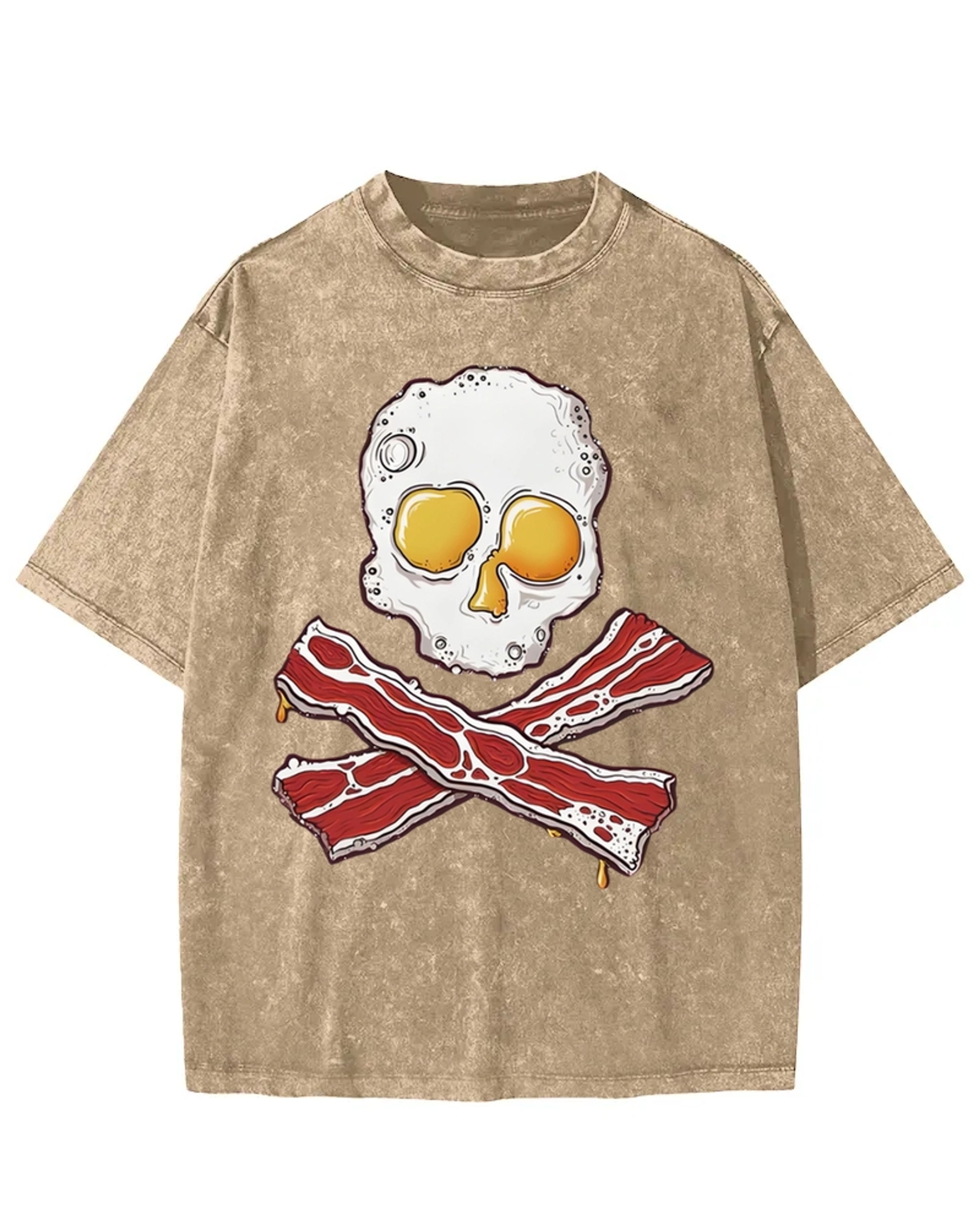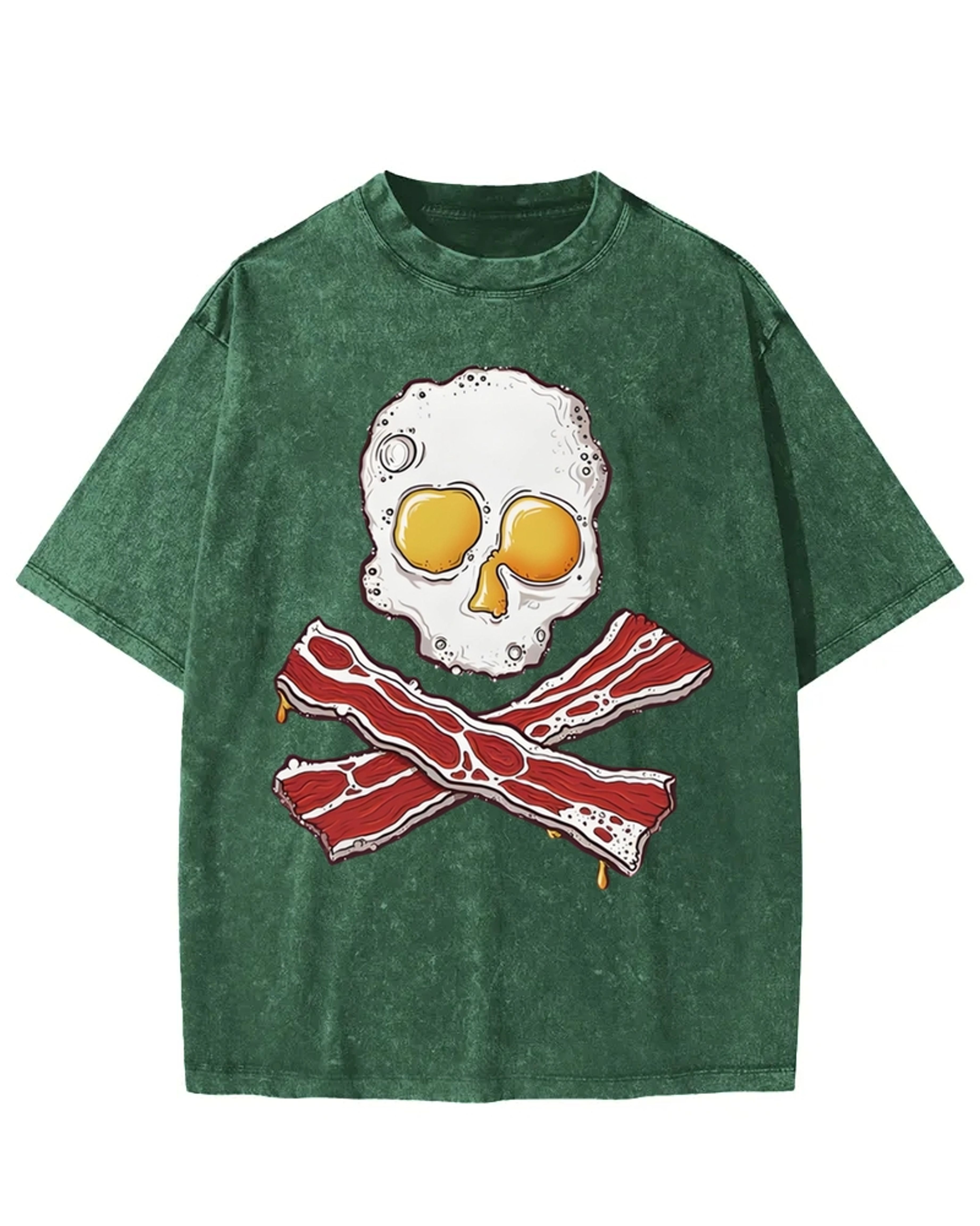 SkullStyle Food Humor Egg Skull & Bacon Crossbones Washed T-Shirt