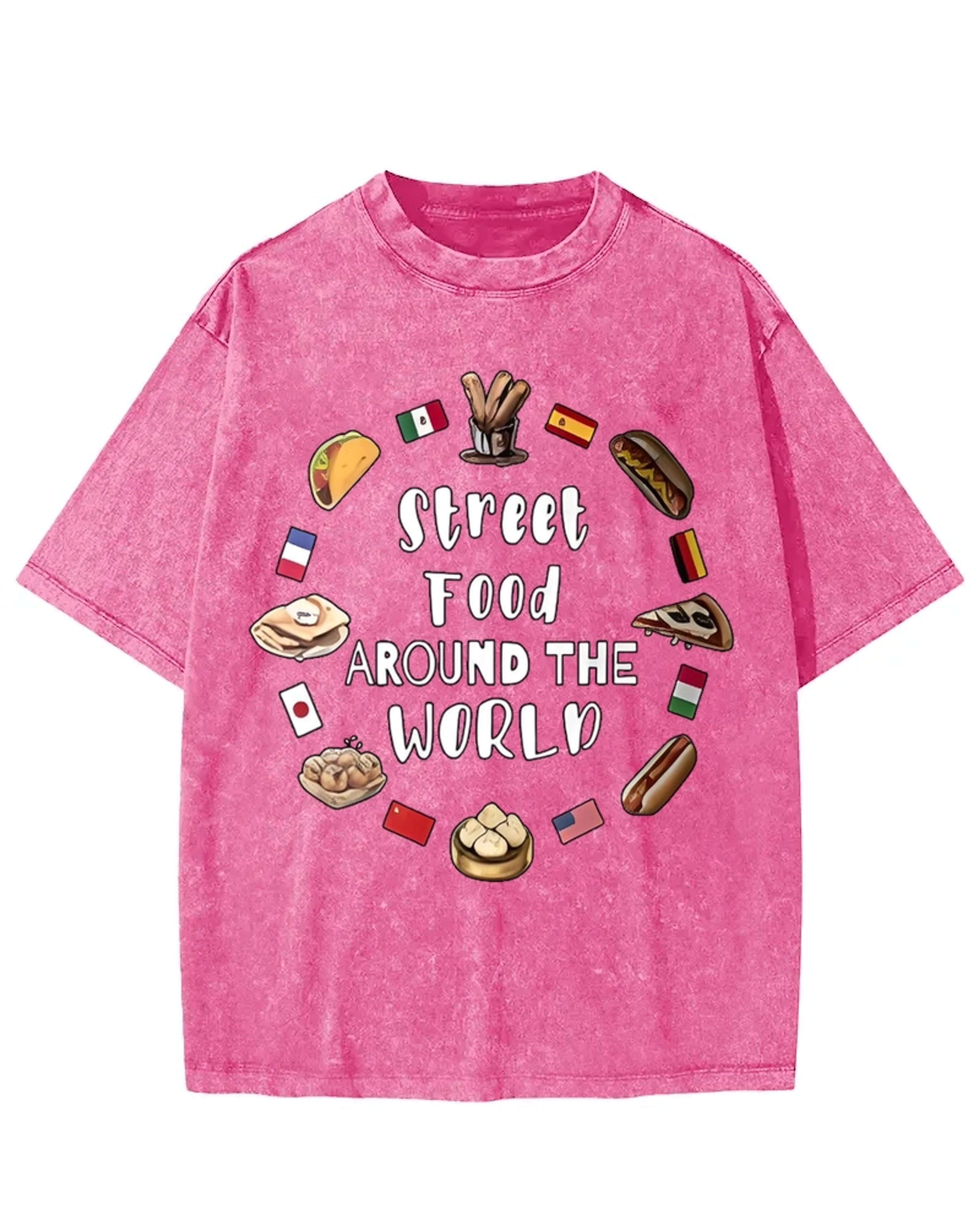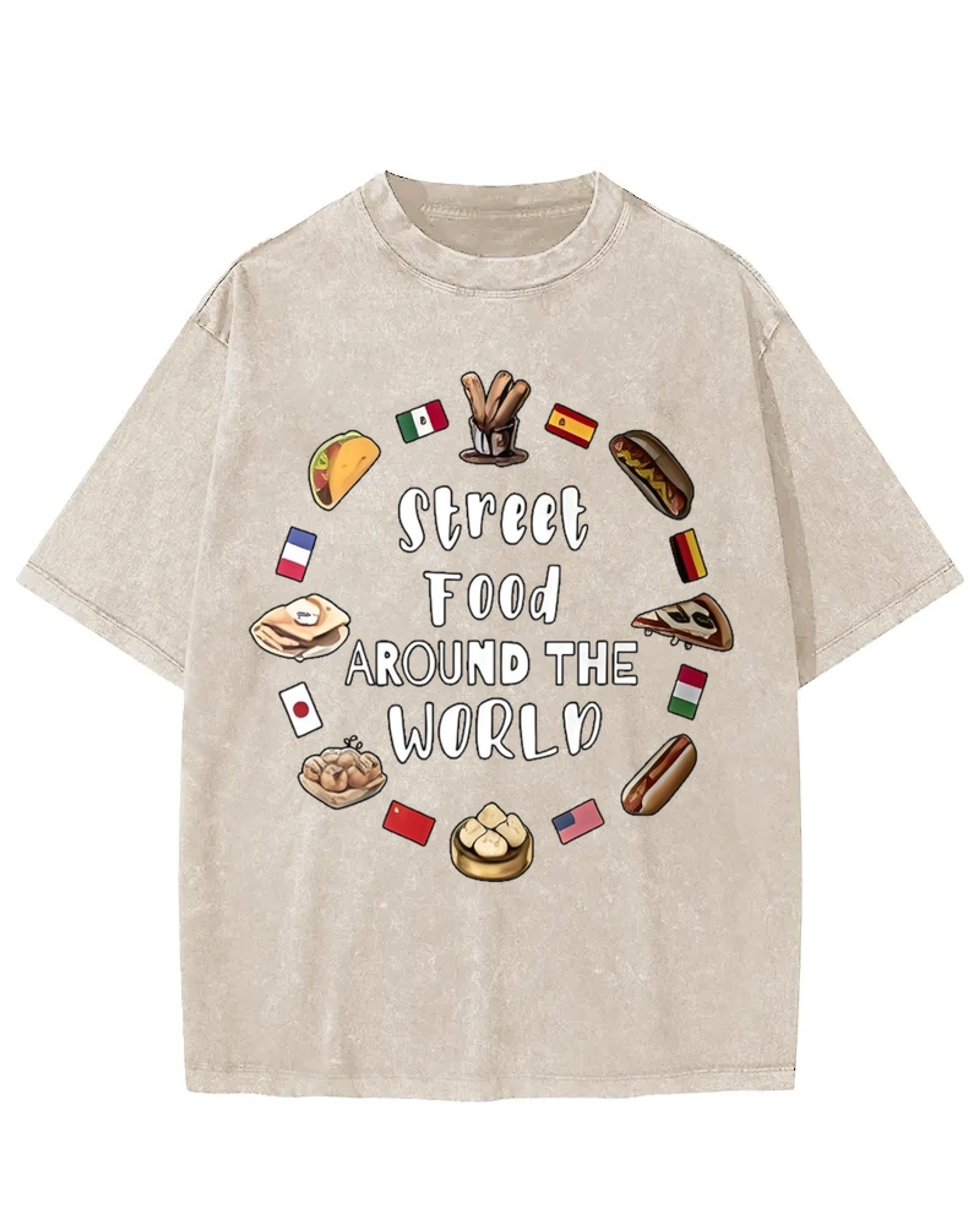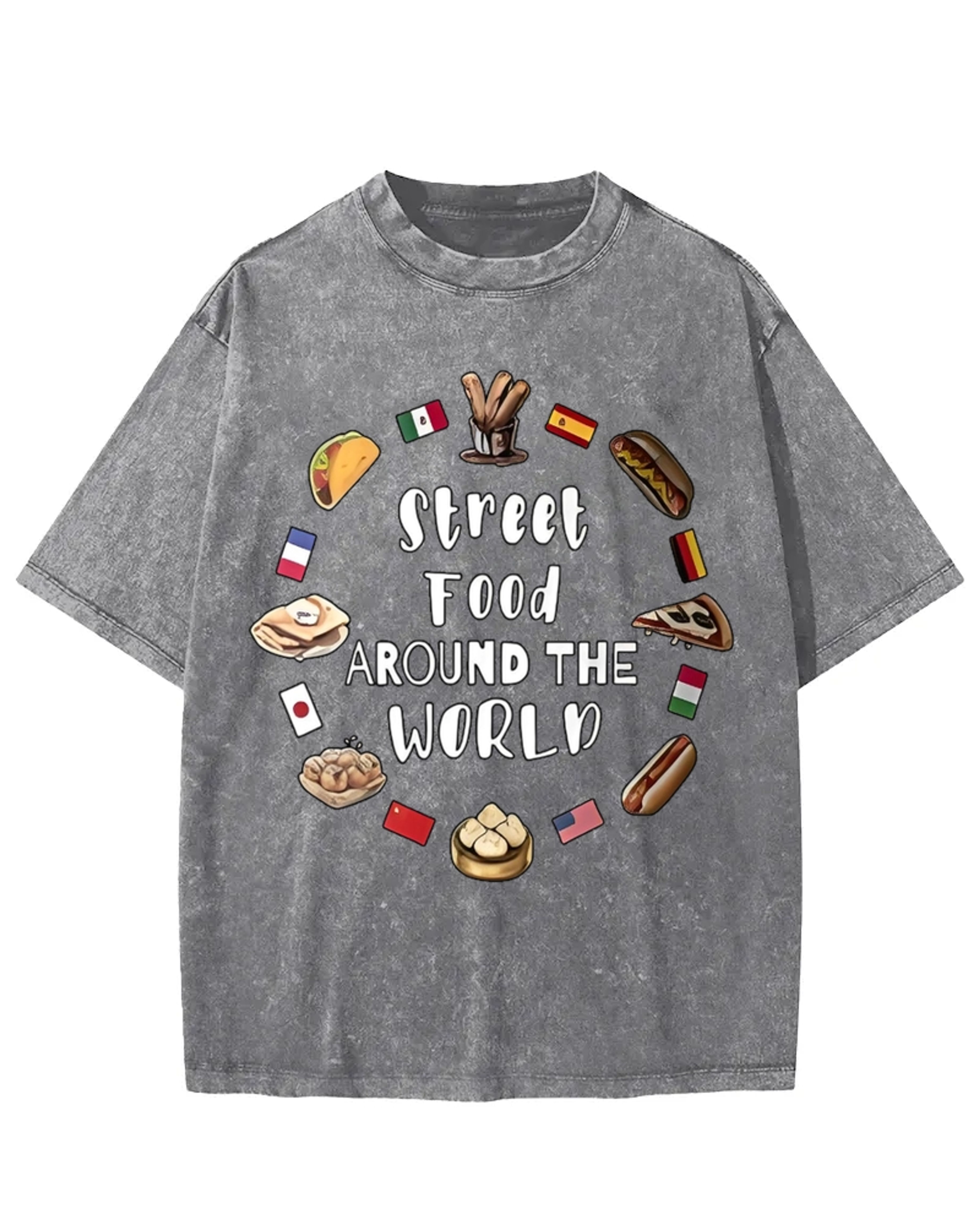 Street Food Around the World Global Cuisine Washed T-Shirt