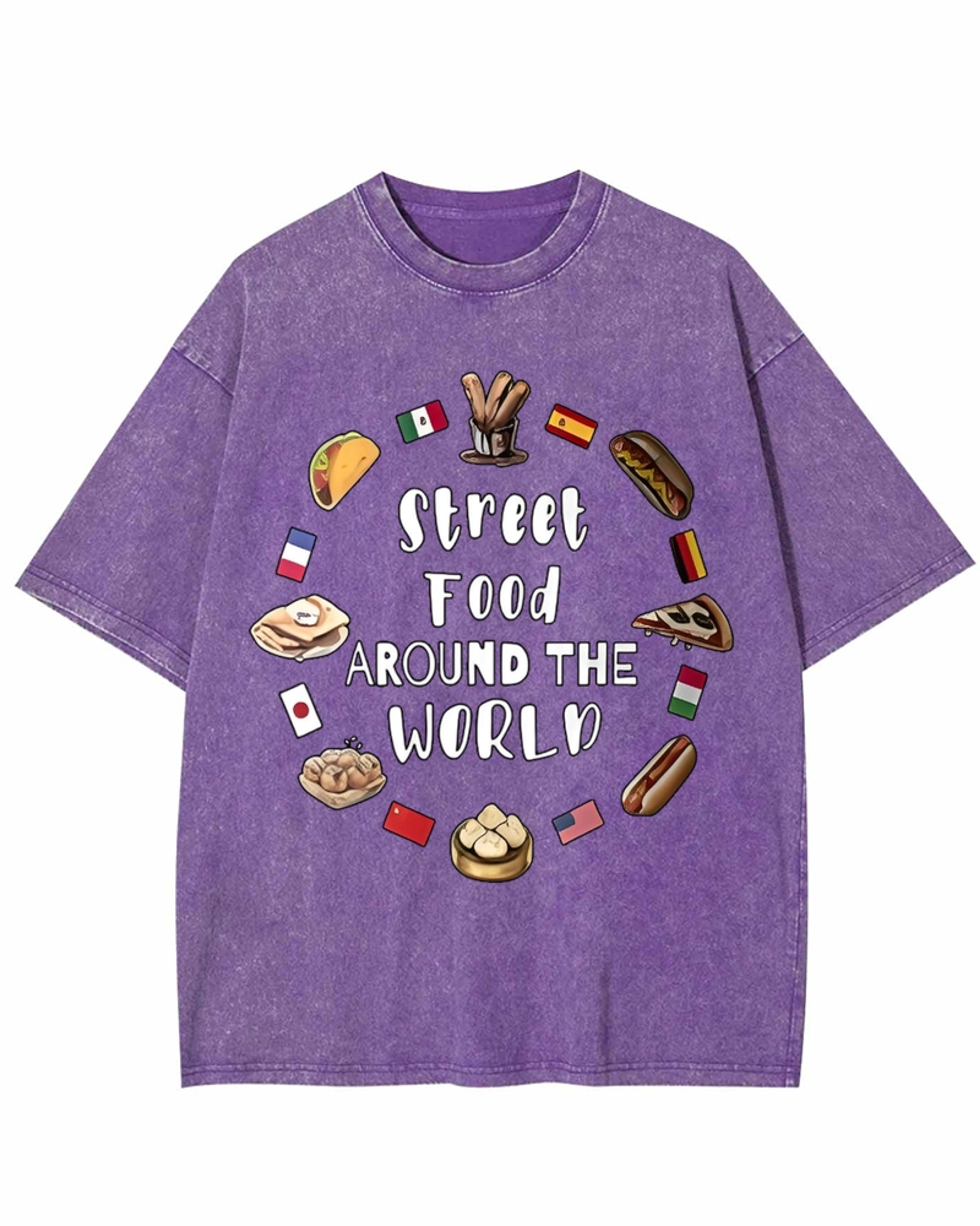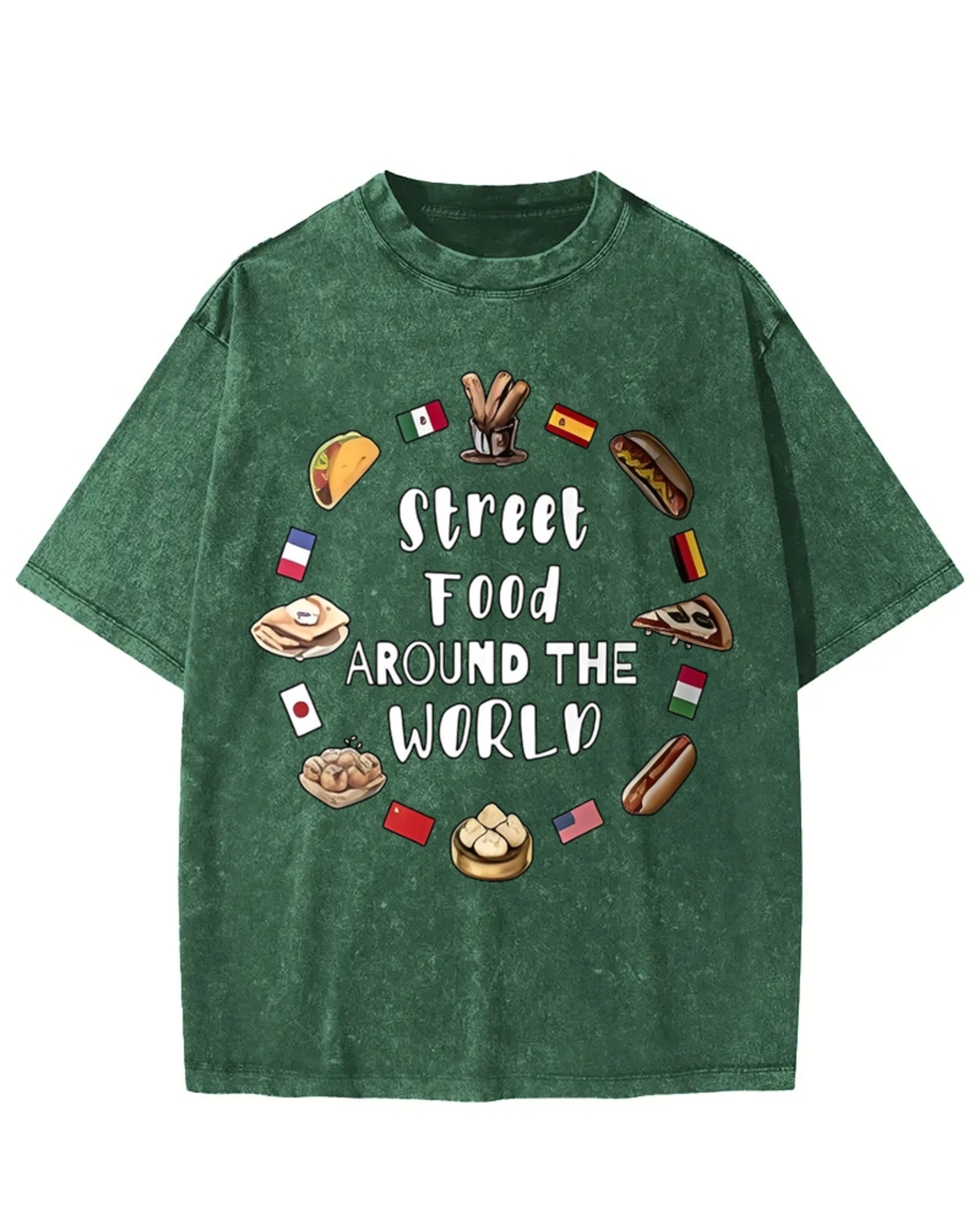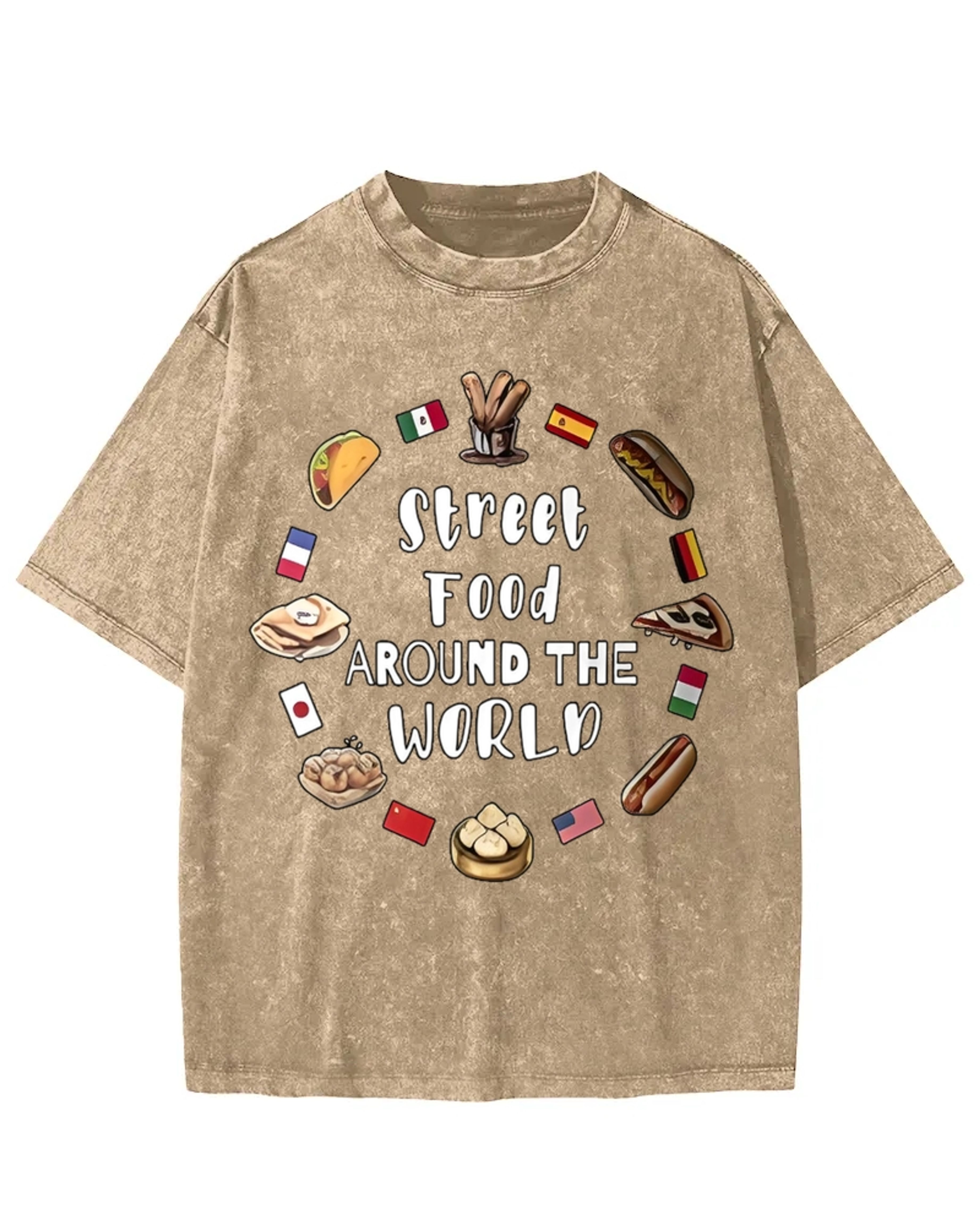 Street Food Around the World Global Cuisine Washed T-Shirt