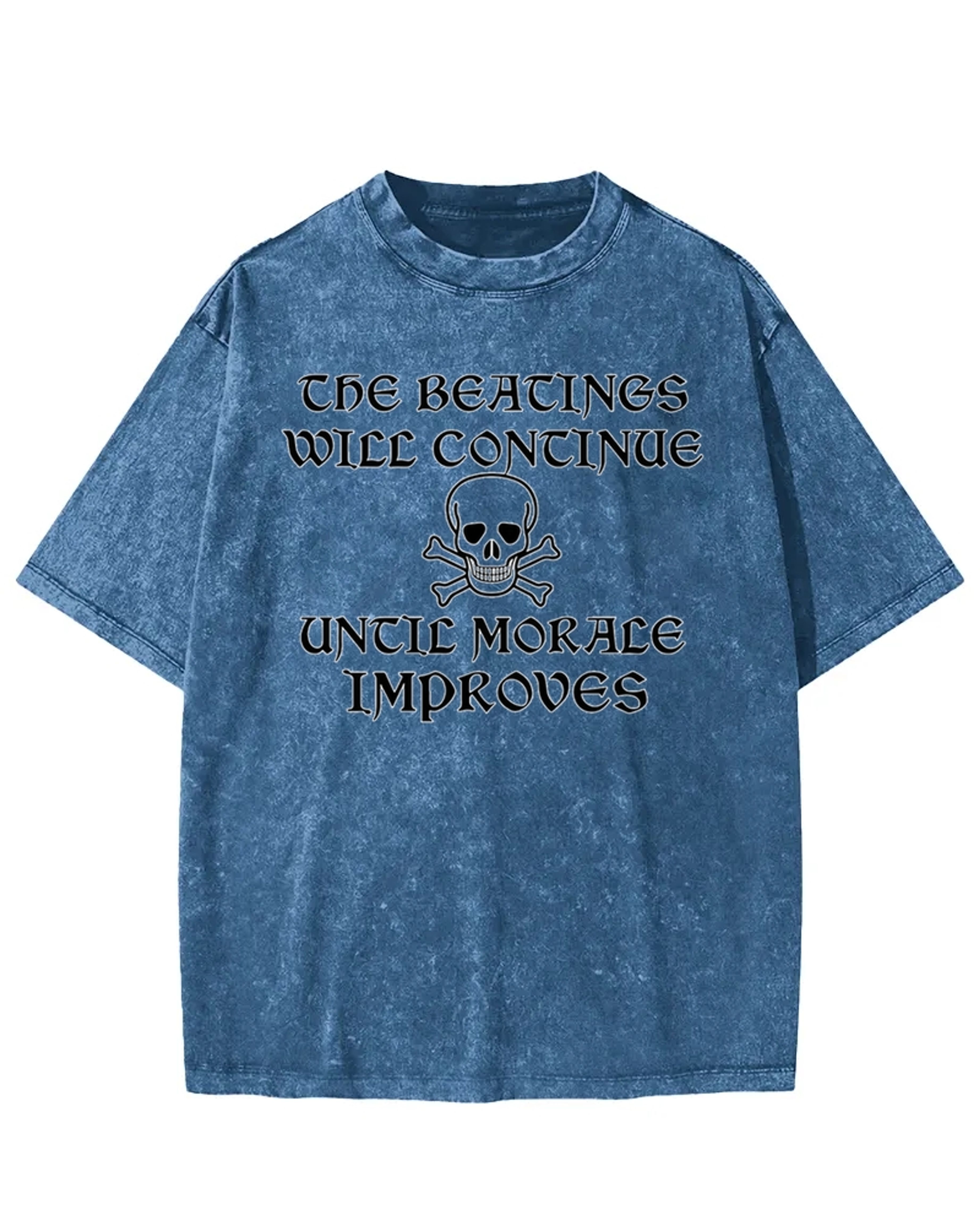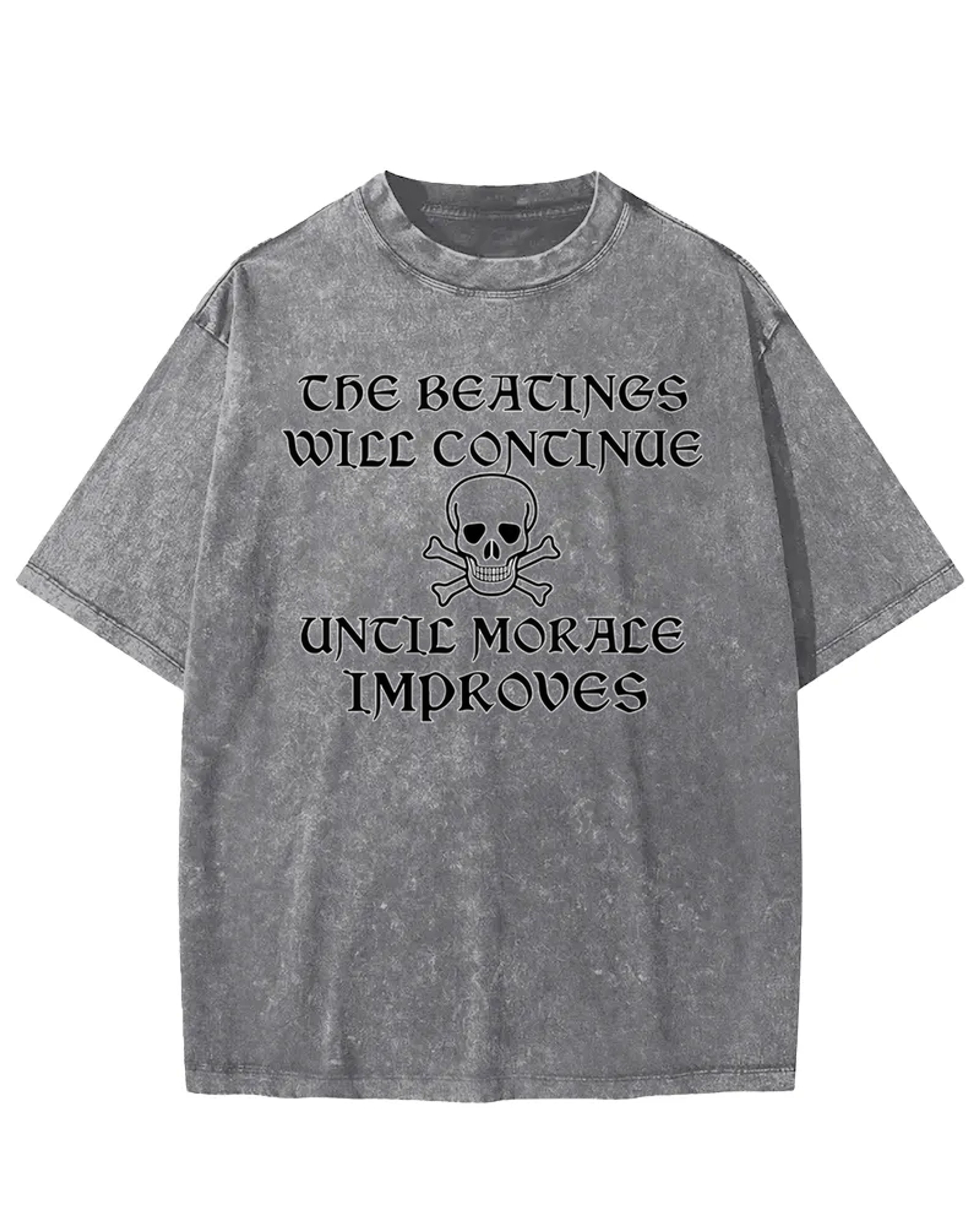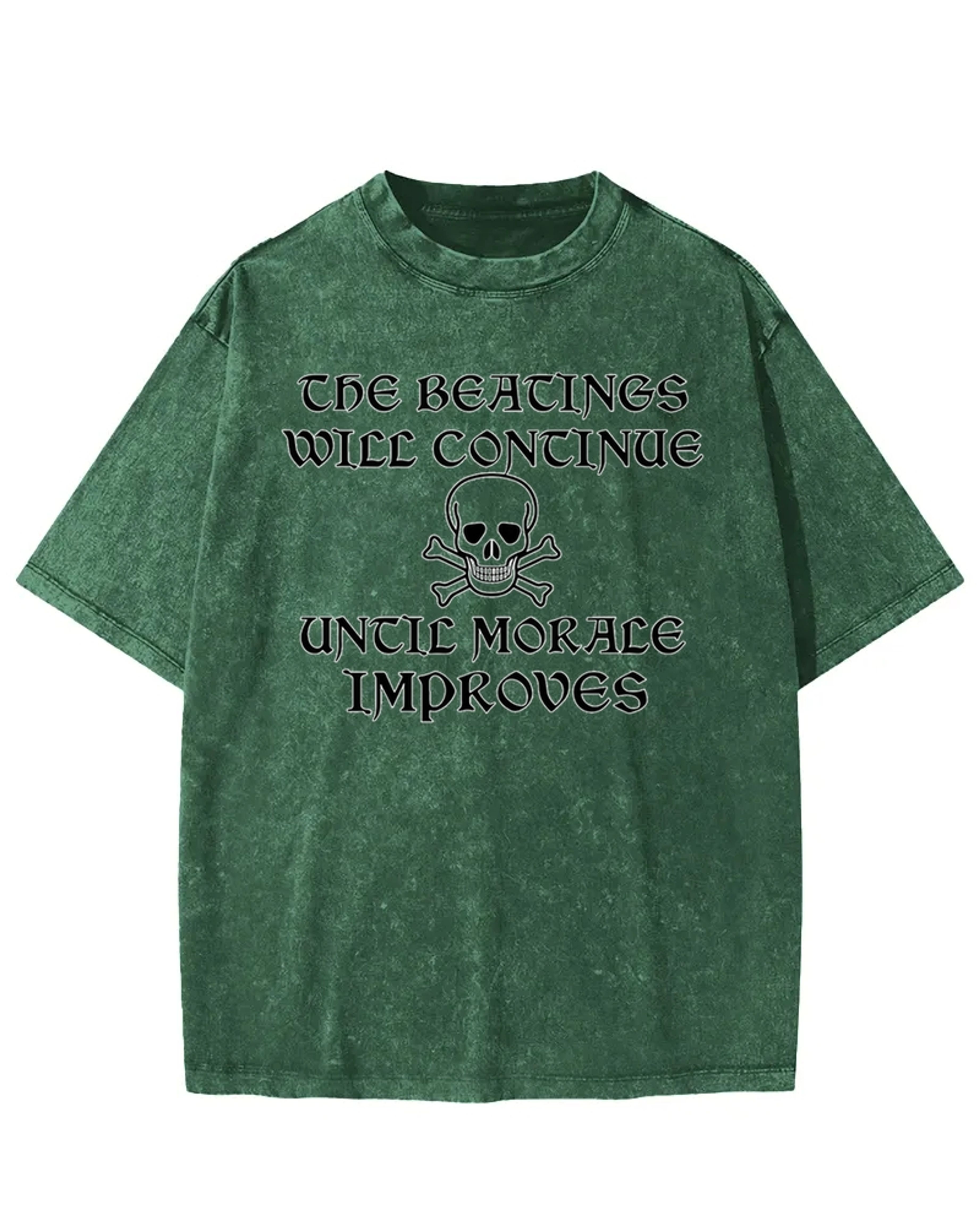 The Beatings Will Continue Until Morale Improves Skull Washed T-Shirt