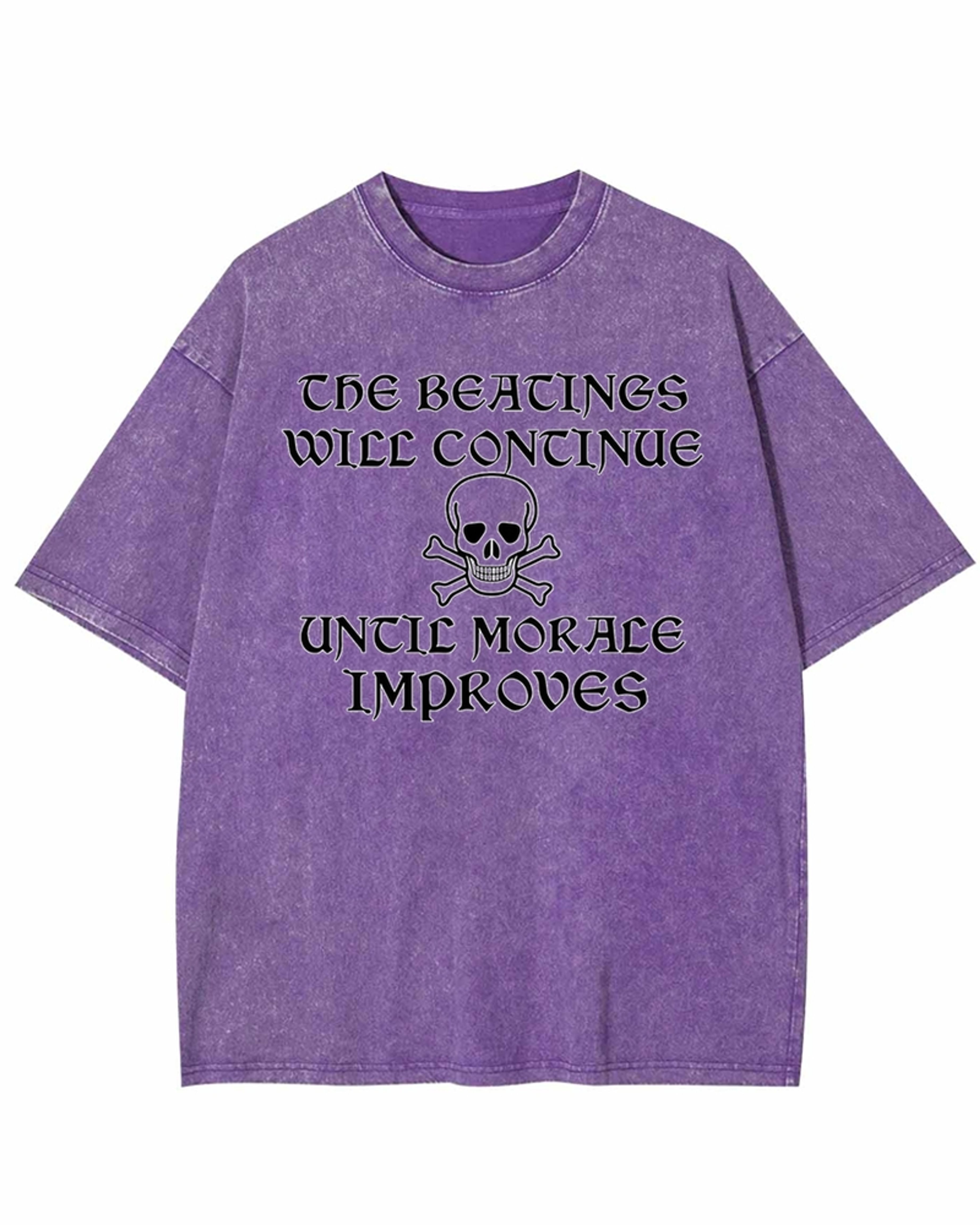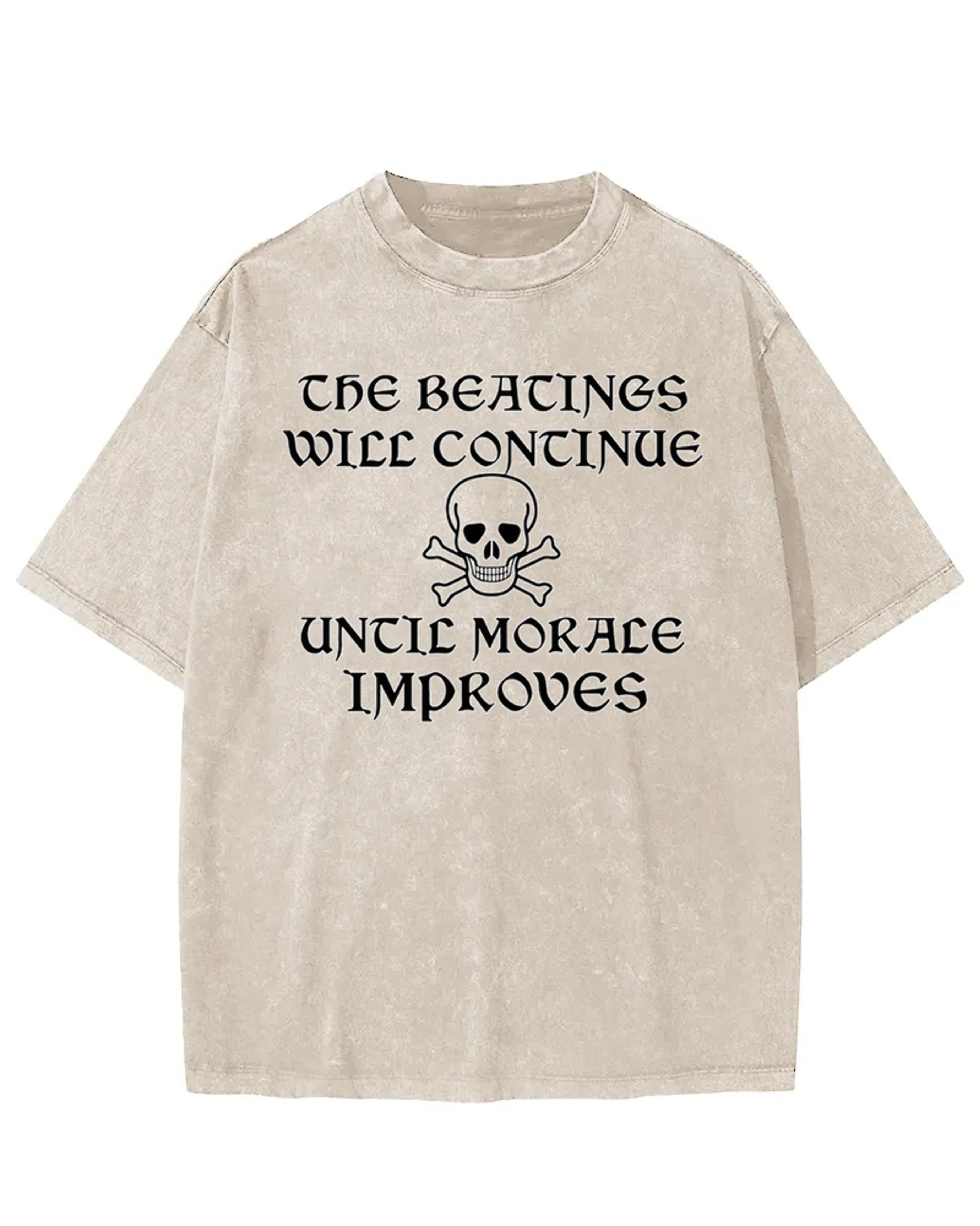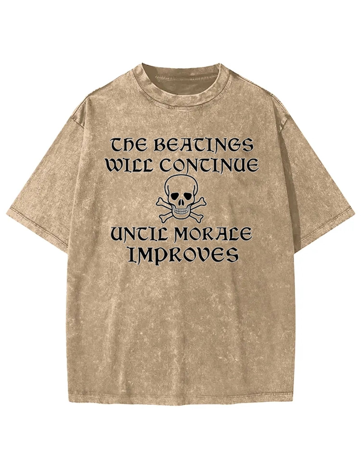 The Beatings Will Continue Until Morale Improves Skull Washed T-Shirt