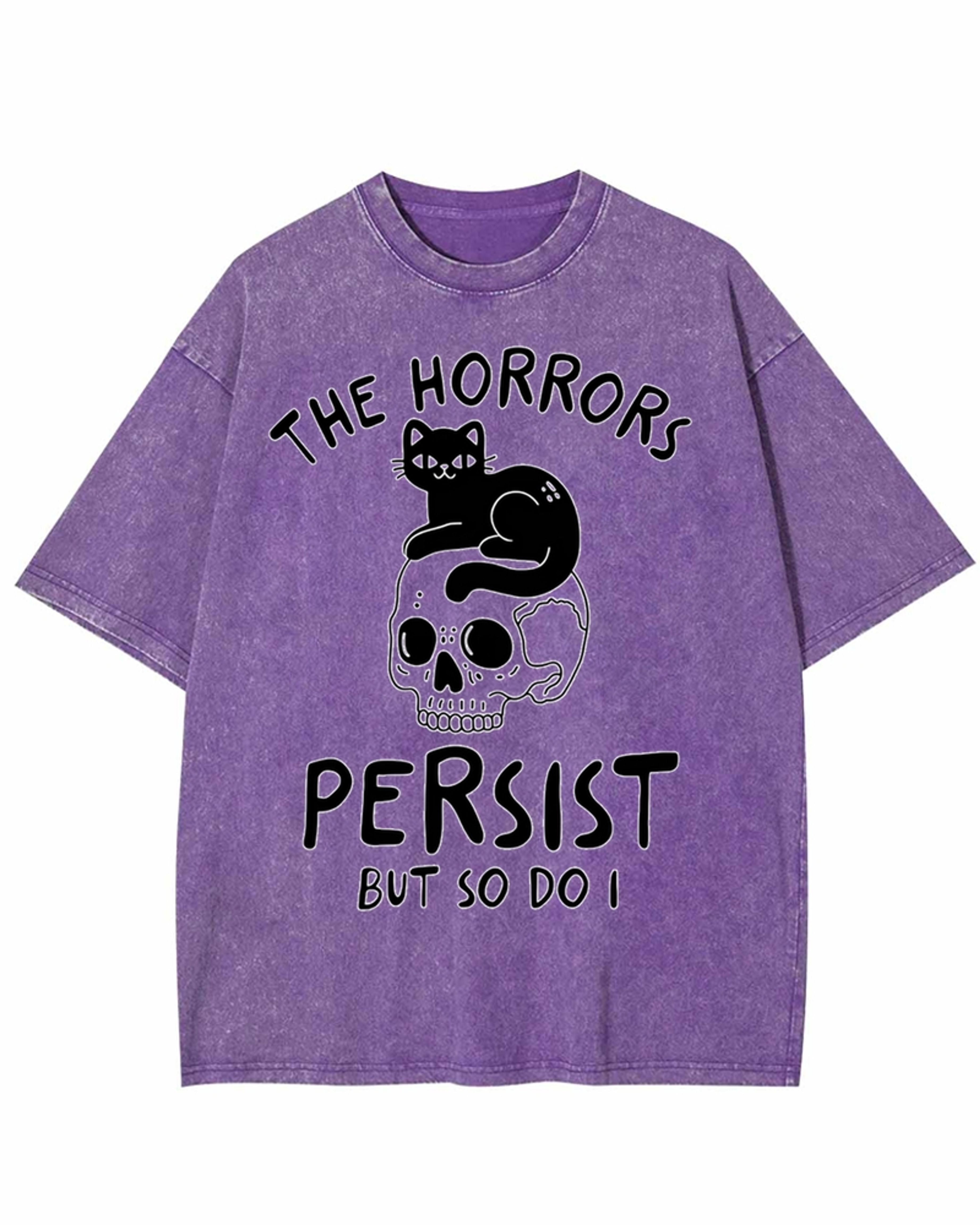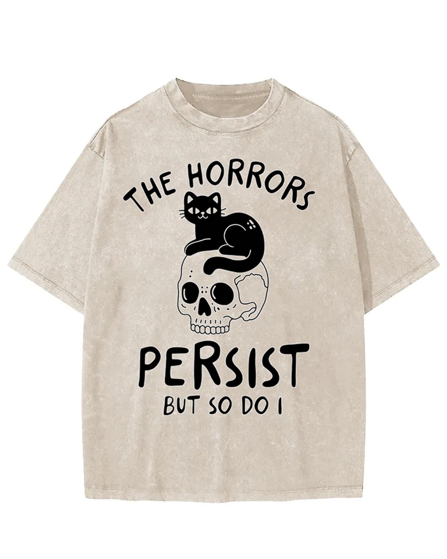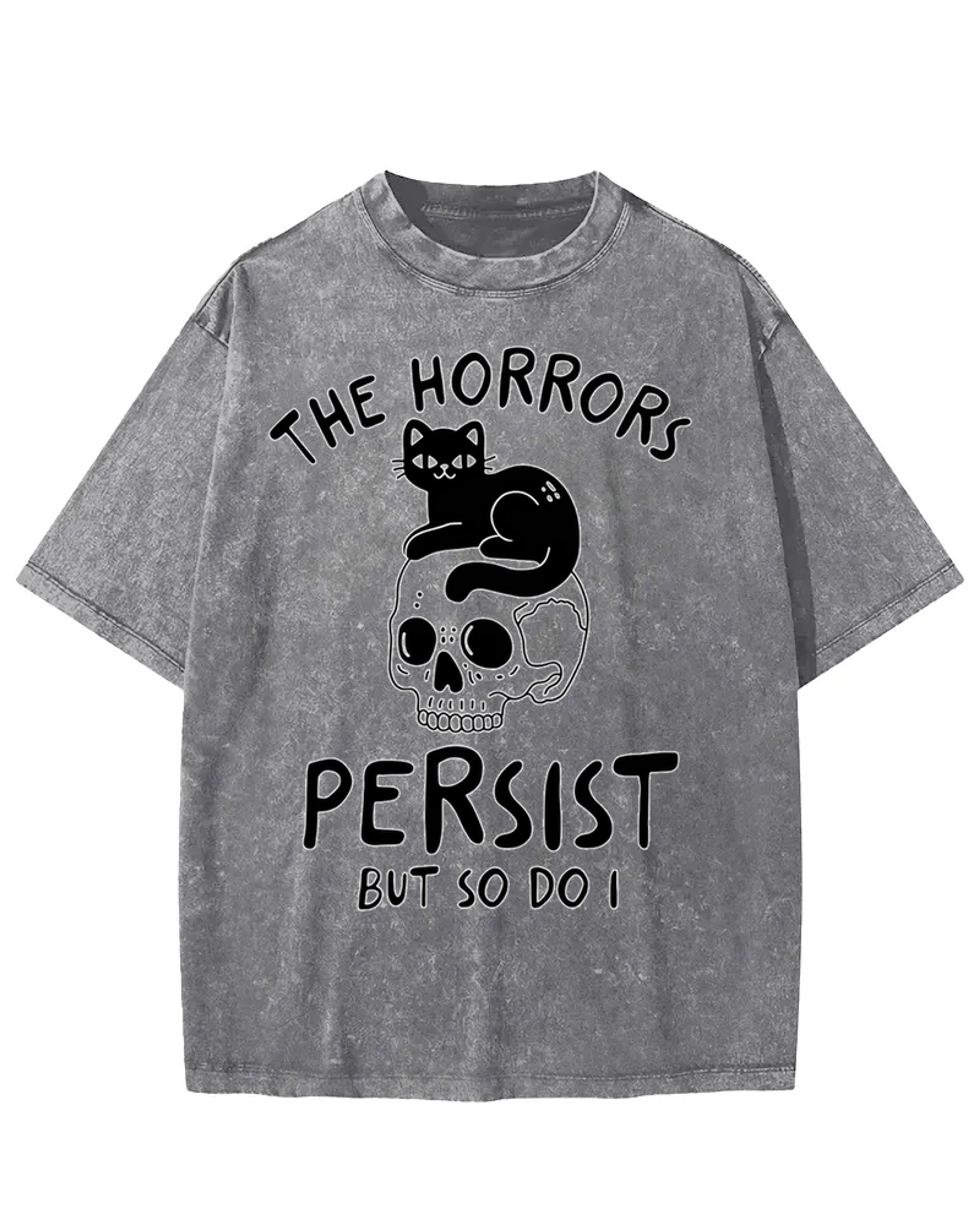 The Horrors Persist Black Cat Skull Washed T-Shirt