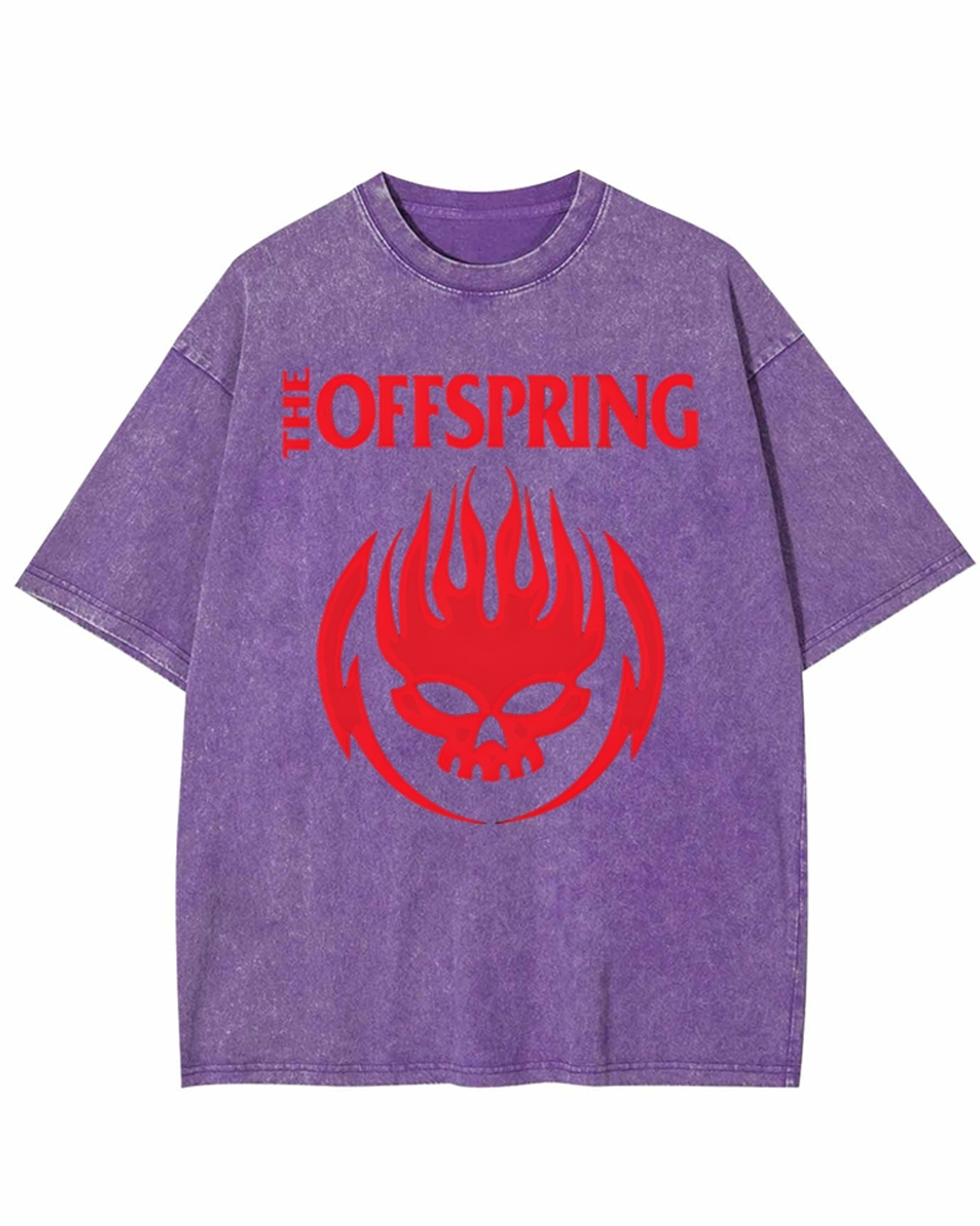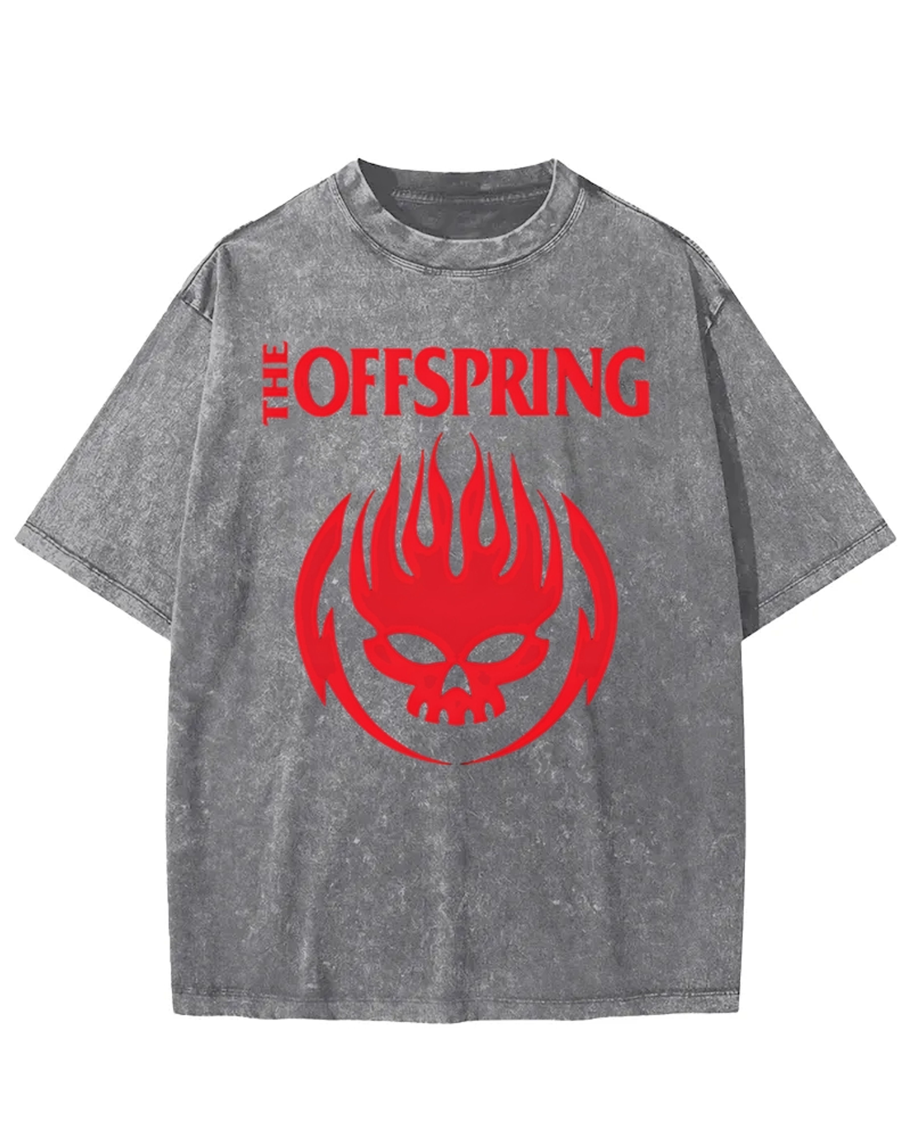 The Offspring Flaming Skull Band Logo Washed T-Shirt